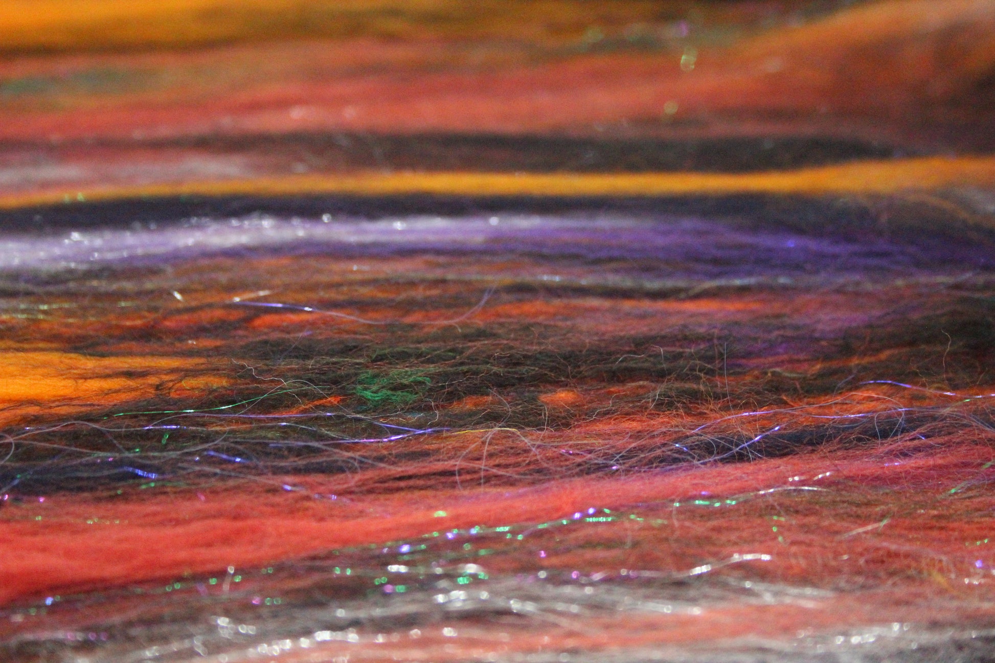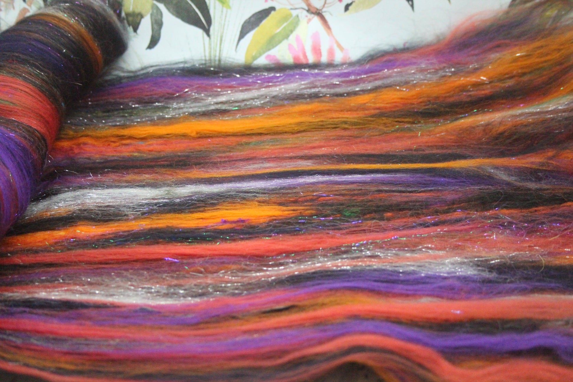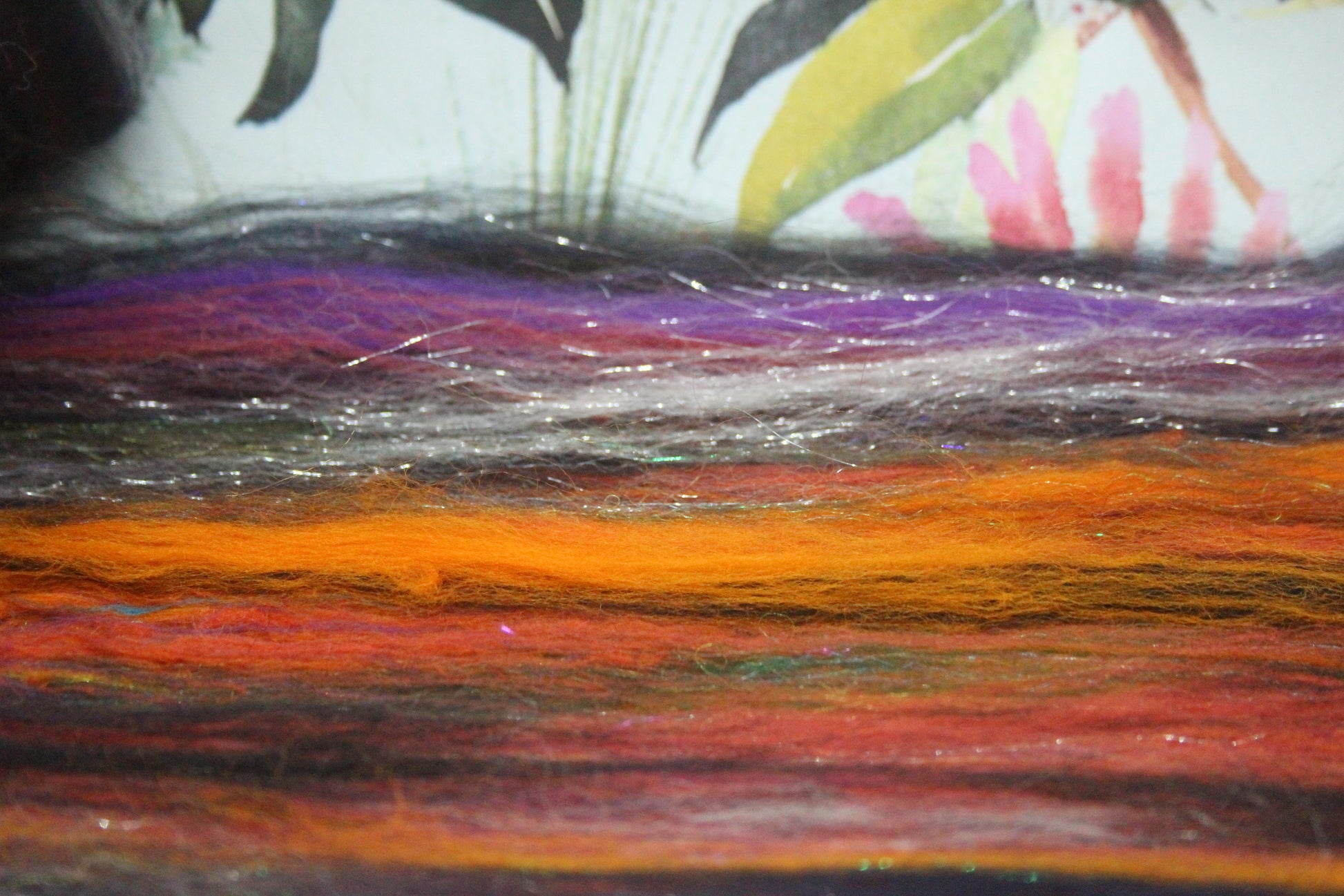 Merino Art Batt - Black Blue Purple Orange - 83 grams 2.9 oz - Wool for felting, spinning and weaving