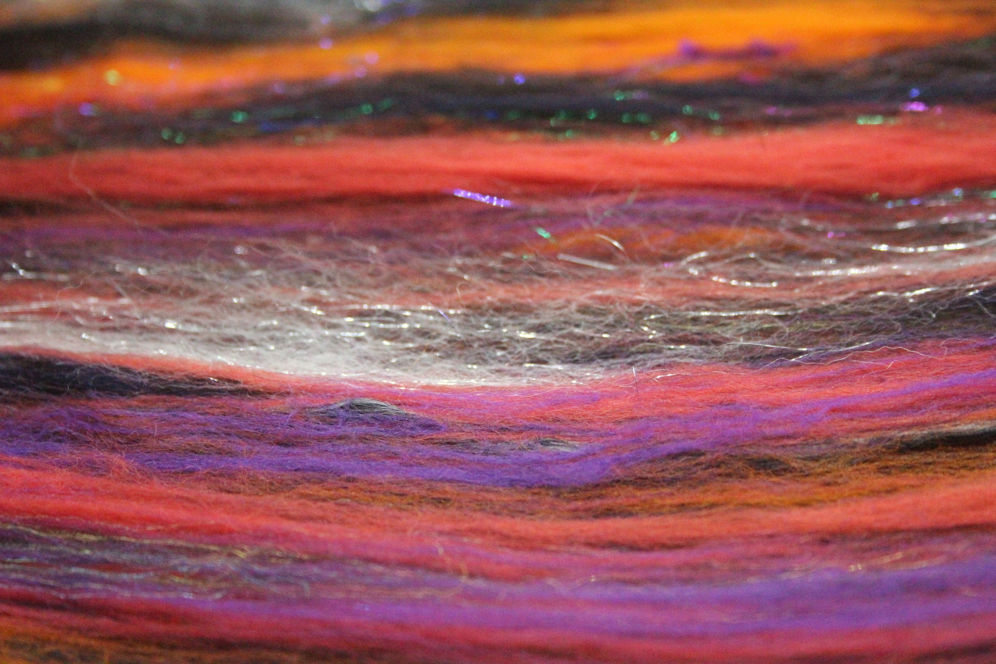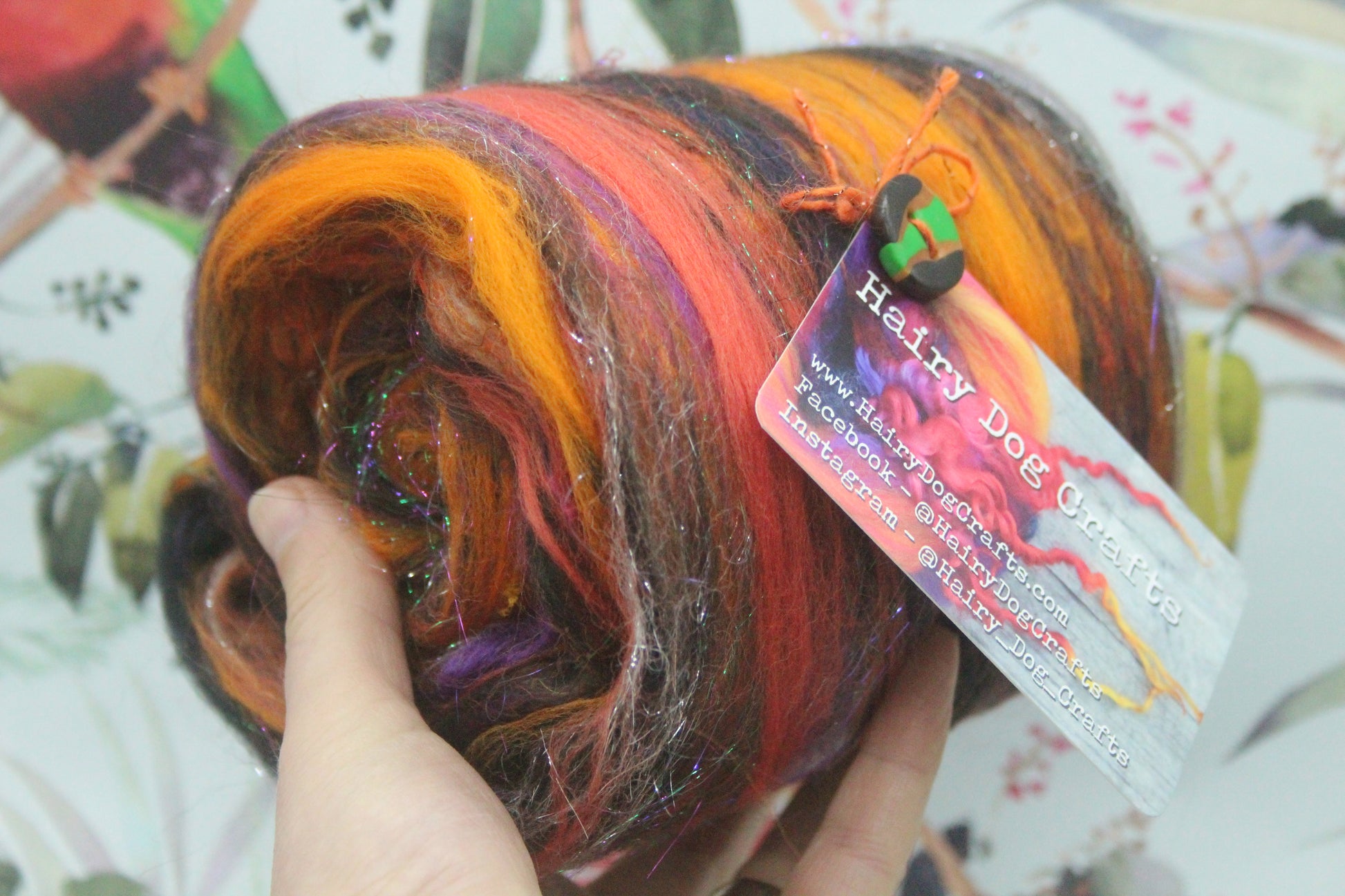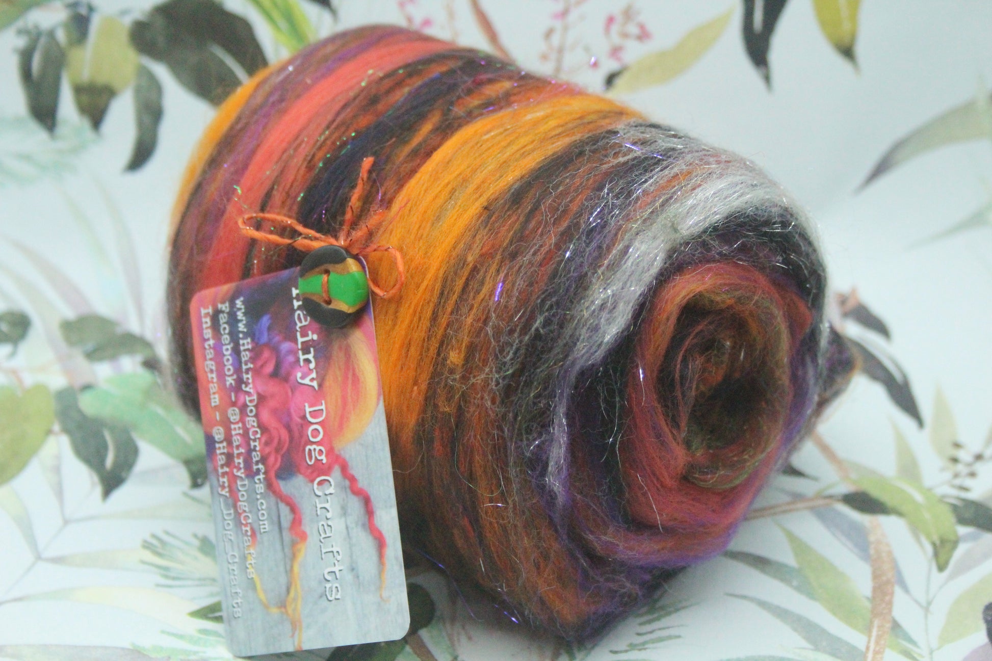 This is a batt that I have created by drum carding wool and speciality fibres. This would be perfect for so many projects - leave it whole and wet felt to create a beautiful background for embellishing, split and hand spin into a beautiful yarn, pull sections off and lay them down for wet felting into something fantastic like a bag, needle felt a fun 3D creature, weave into a wall hanging....