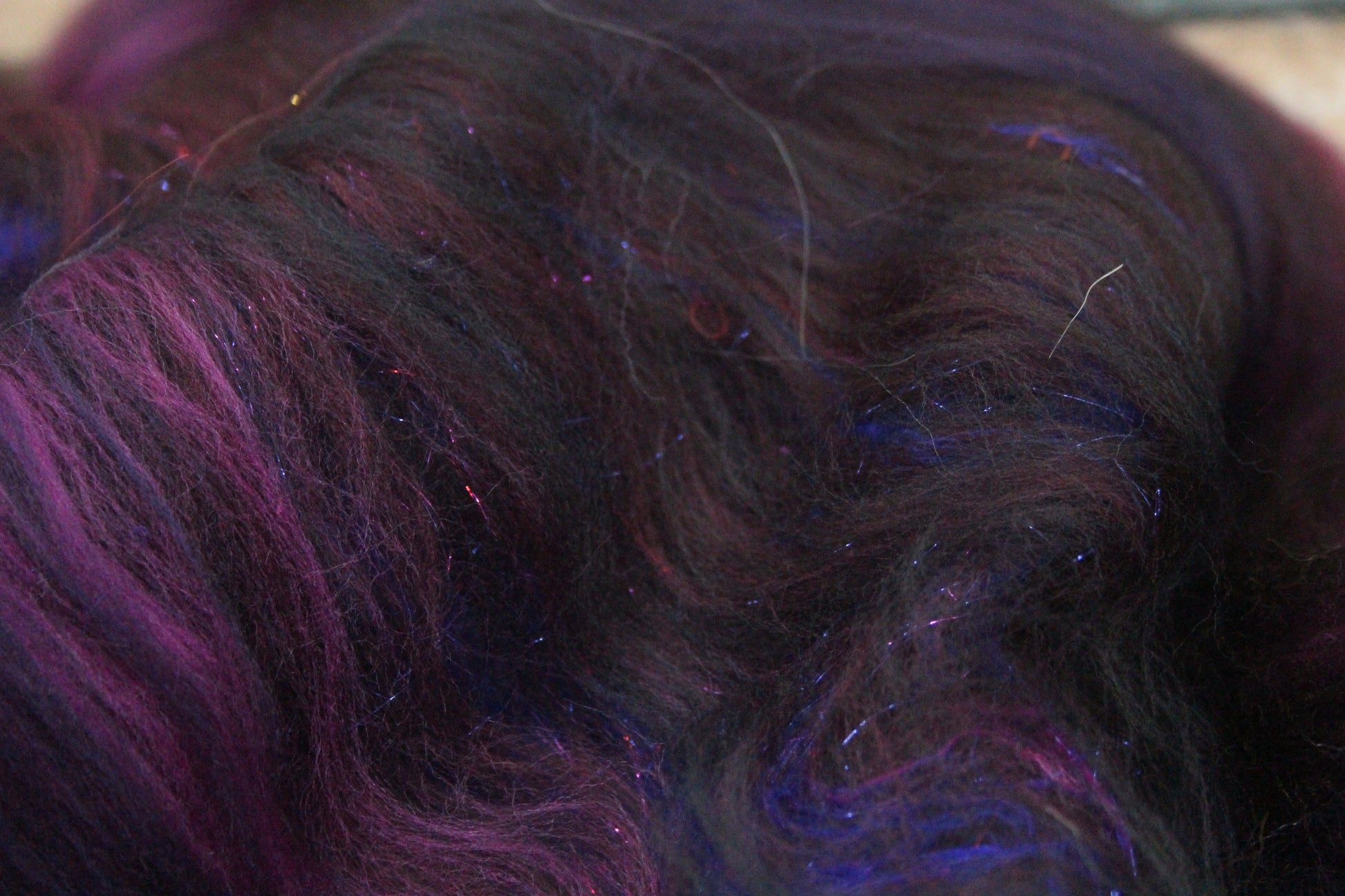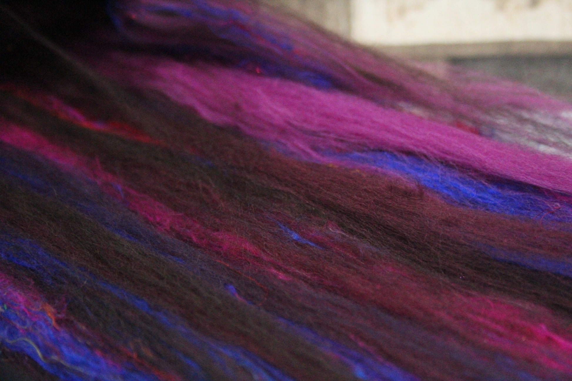Merino Art Batt - Black Brown Burgundy - 47 grams 1.6 oz - Wool for felting, spinning and weaving