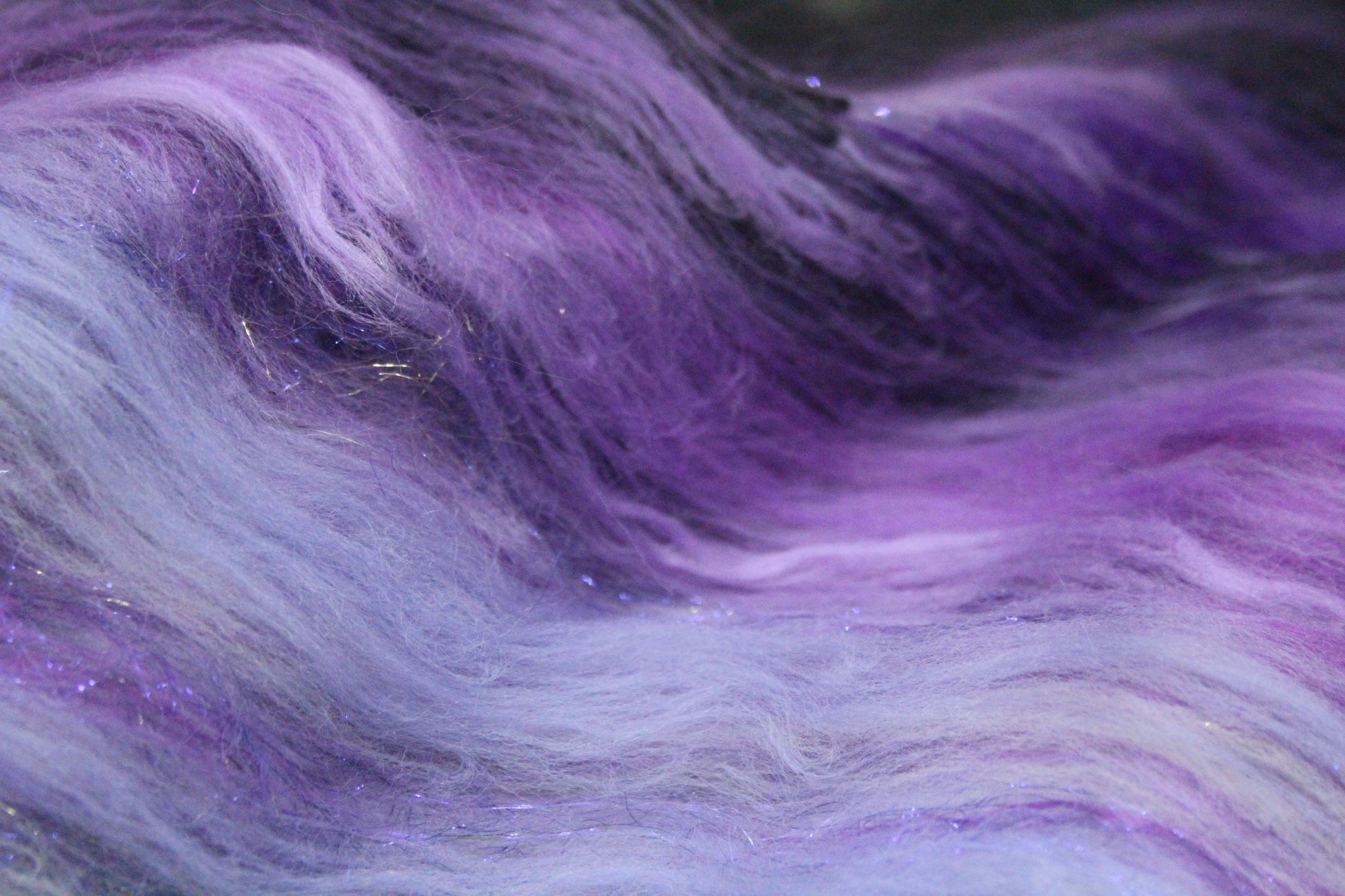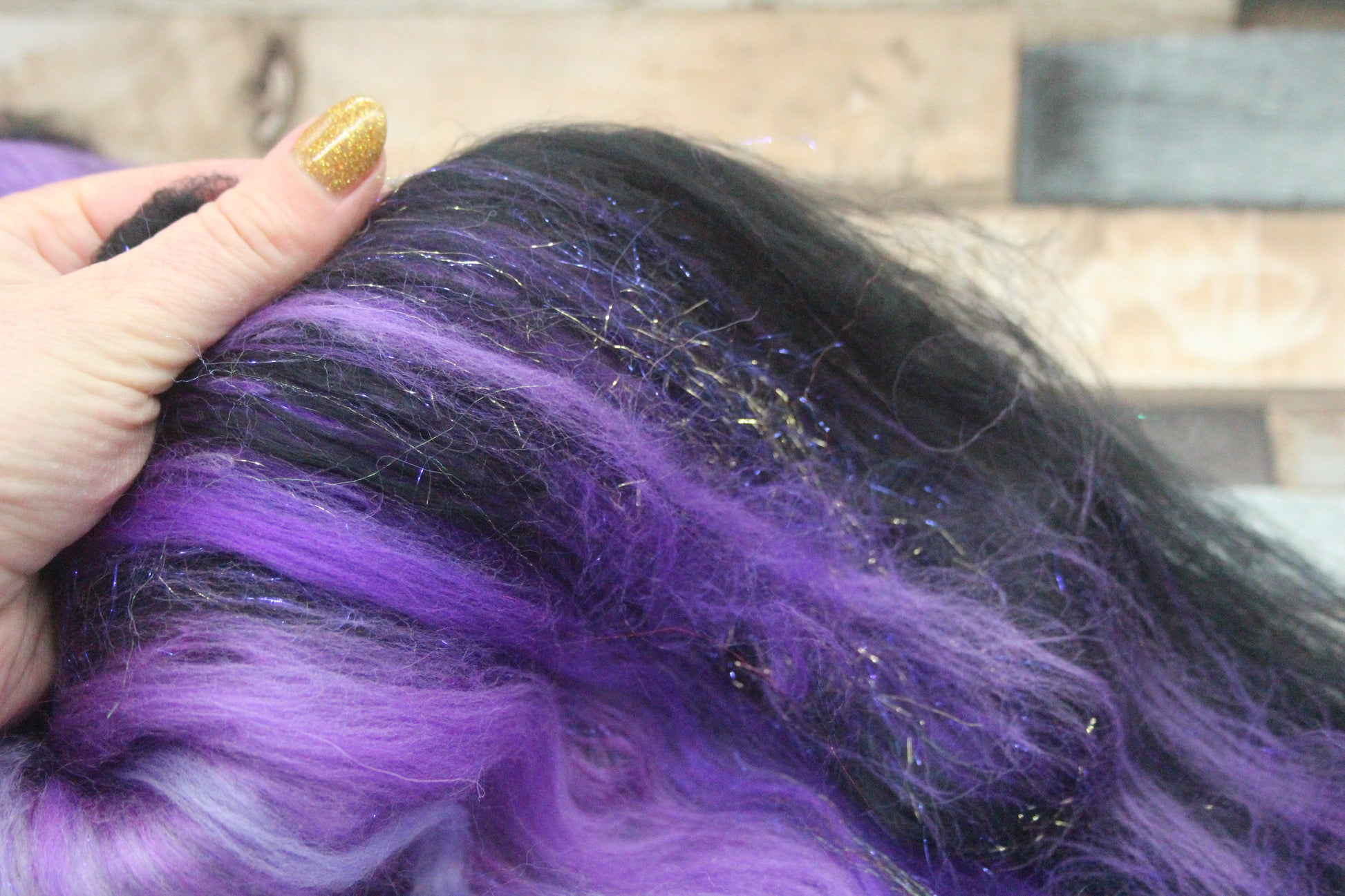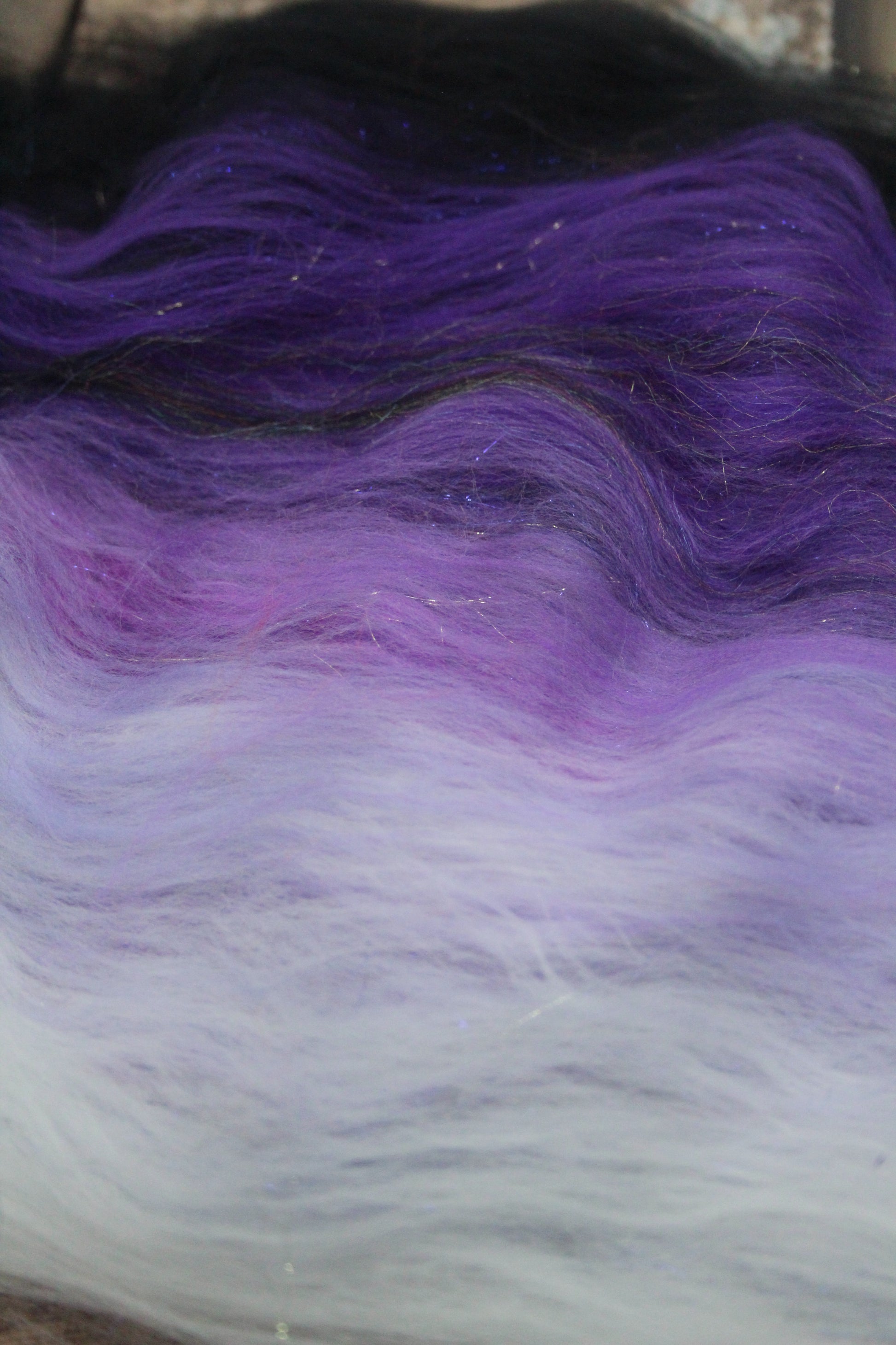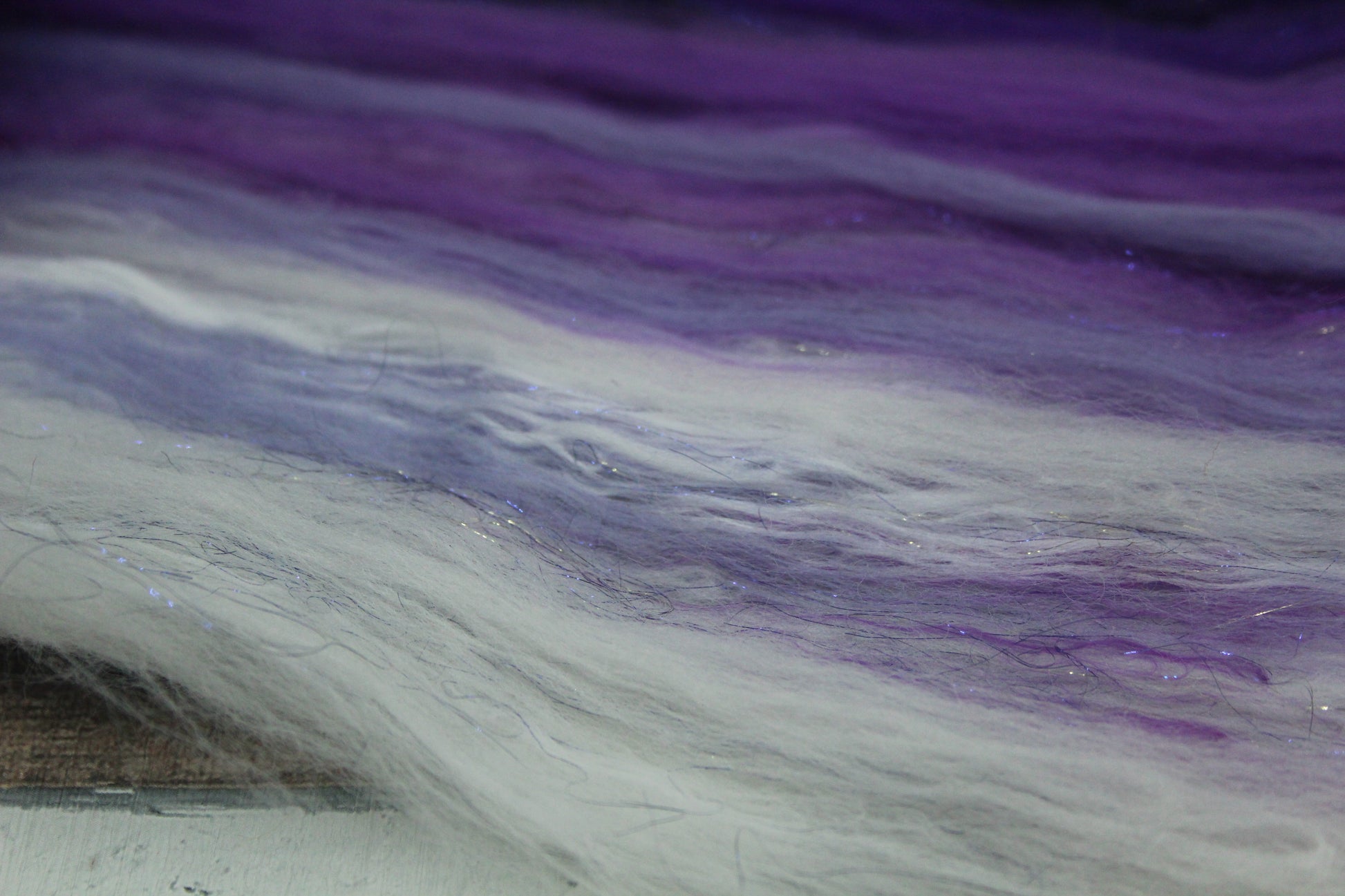 Merino Art Batt - Black Purple White - 41 grams 1.4 oz - Wool for felting, spinning and weaving
