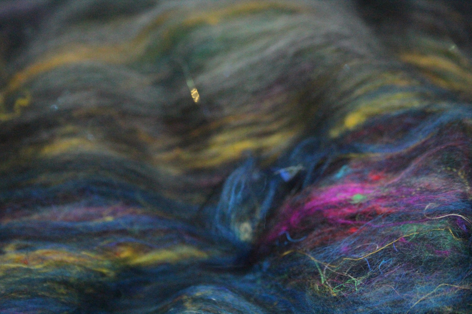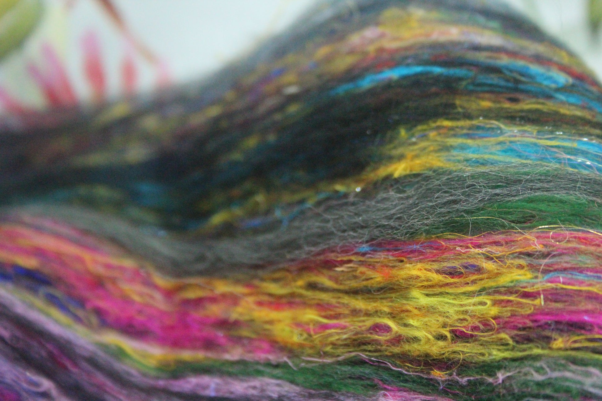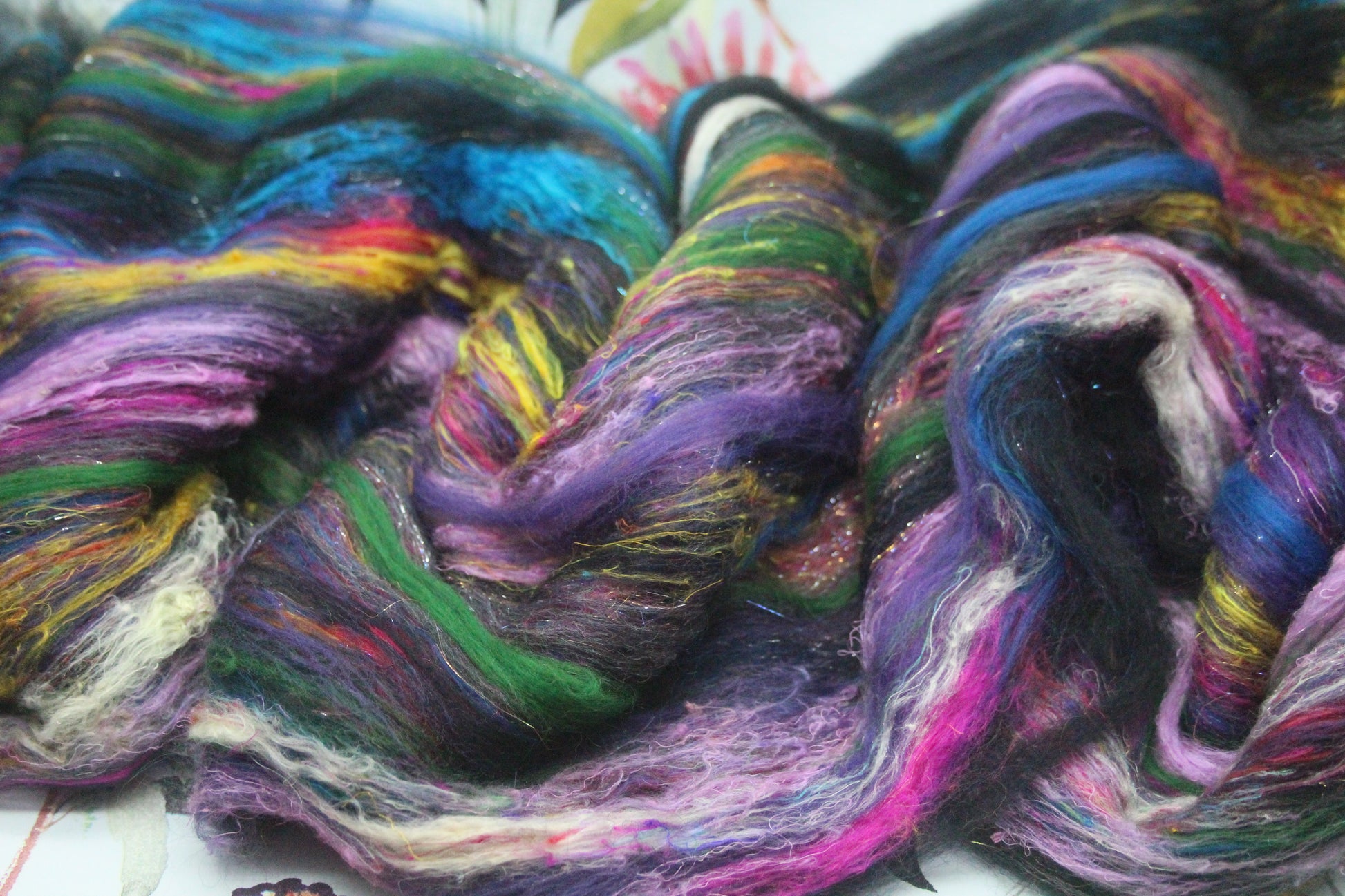 This is a batt that I have created by drum carding wool and speciality fibres. This would be perfect for so many projects - leave it whole and wet felt to create a beautiful background for embellishing, split and hand spin into a beautiful yarn, pull sections off and lay them down for wet felting into something fantastic like a bag, needle felt a fun 3D creature, weave into a wall hanging....