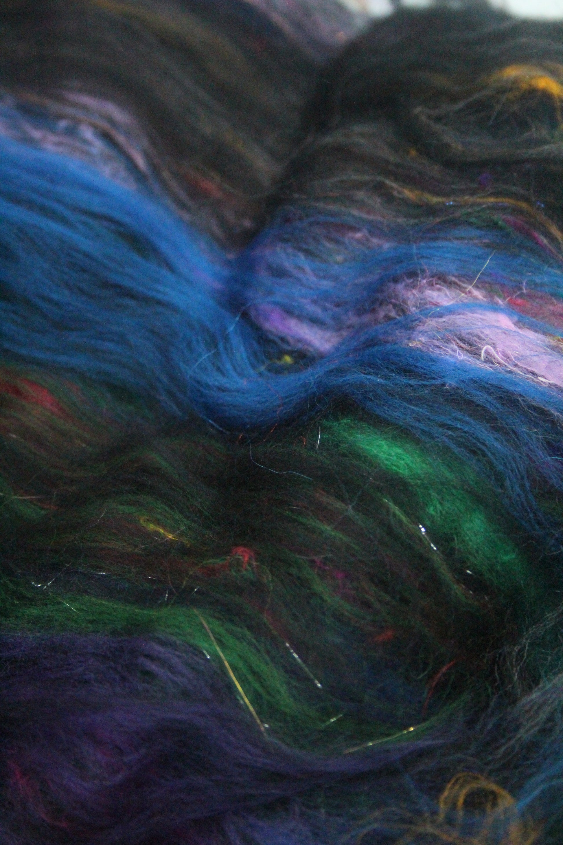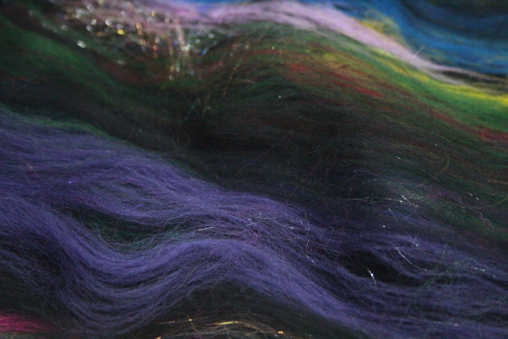 Merino Art Batt - Blue Black Green Purple - 60 grams 2.1 oz - Wool for felting, spinning and weaving