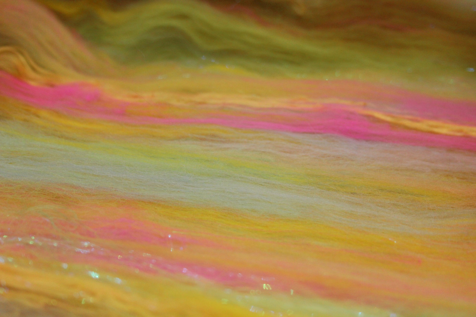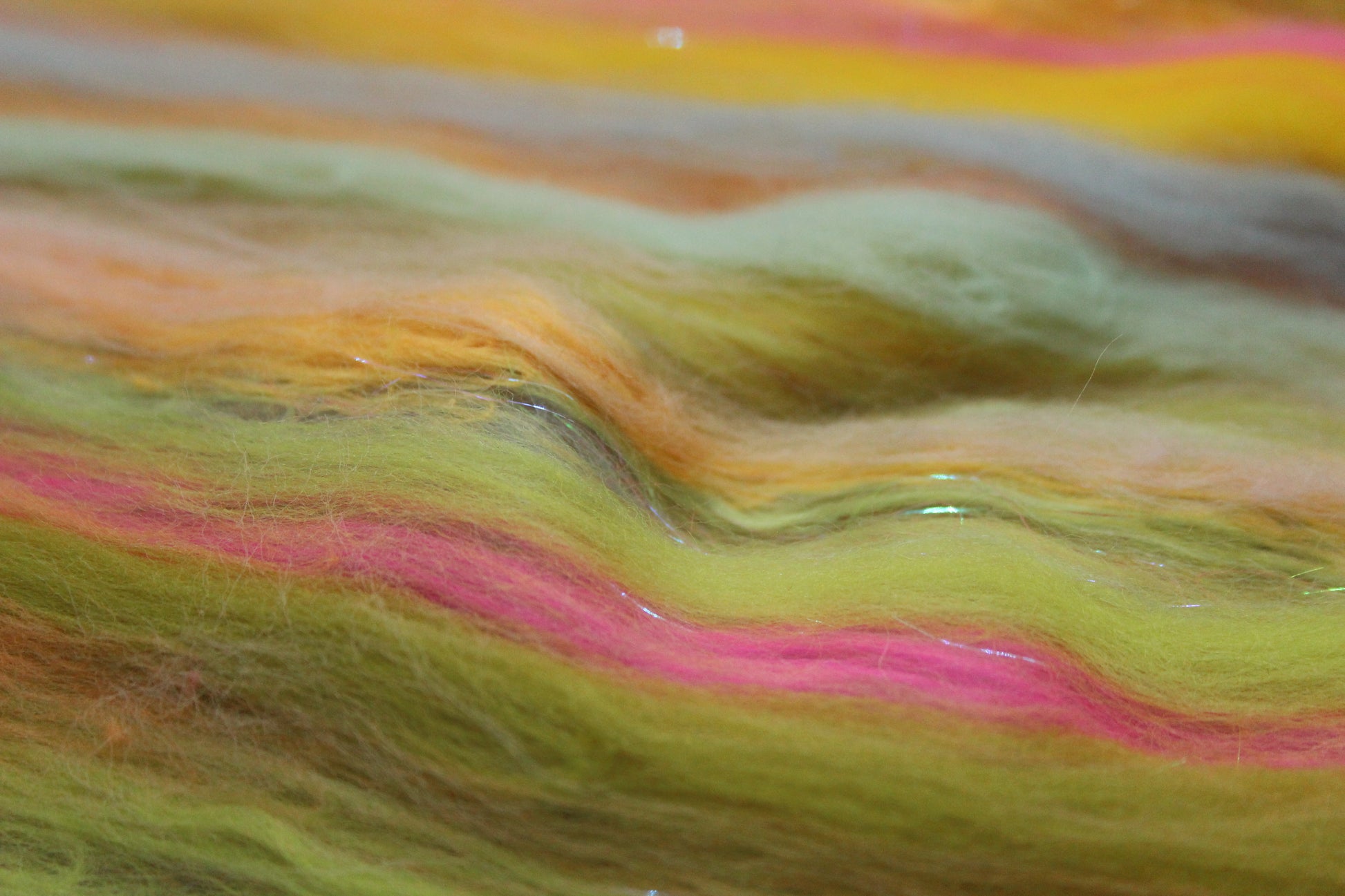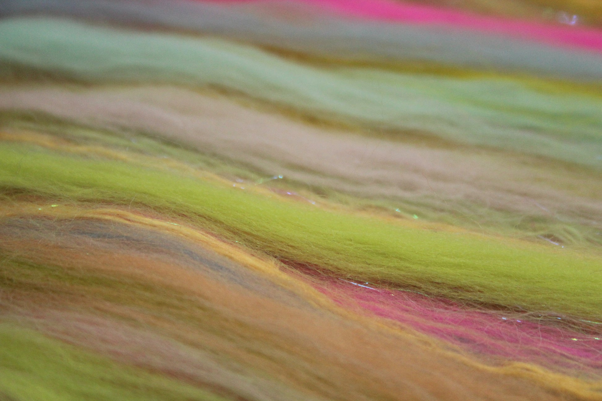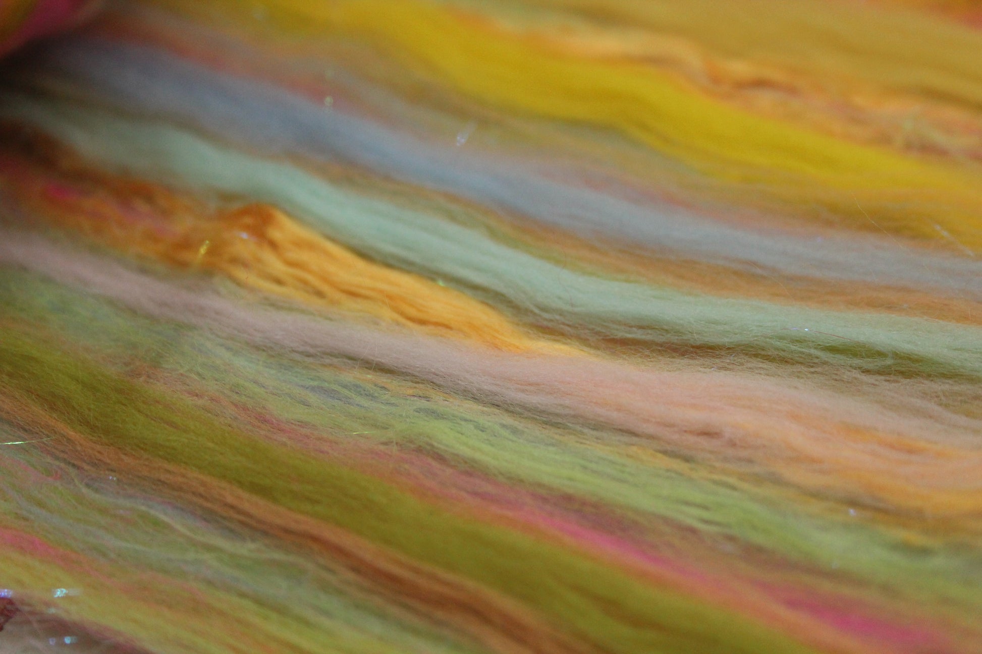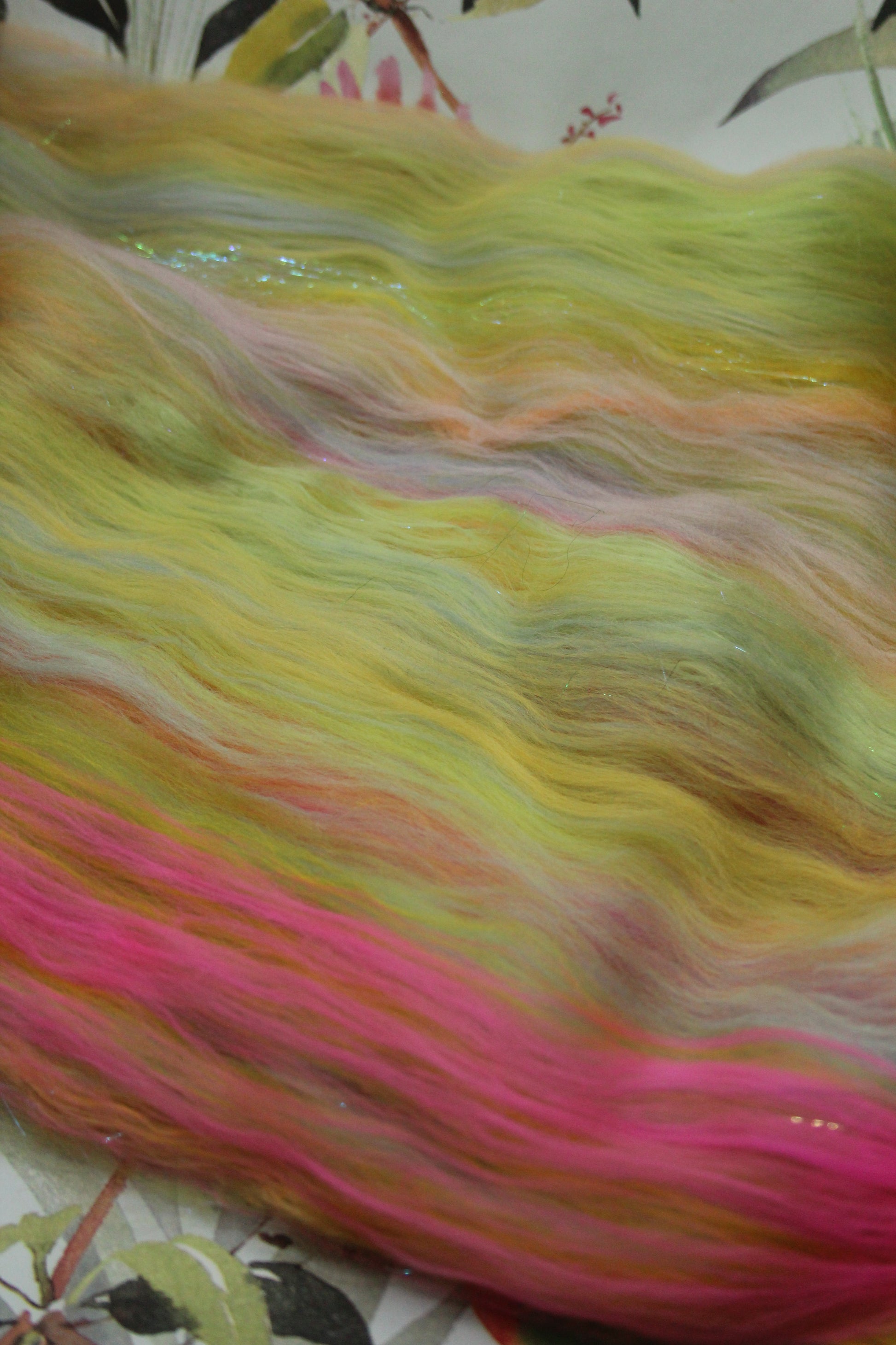 Merino Art Batt - Blue Pink Green Yellow - 90 grams 3.1 oz - Wool for felting, spinning and weaving
