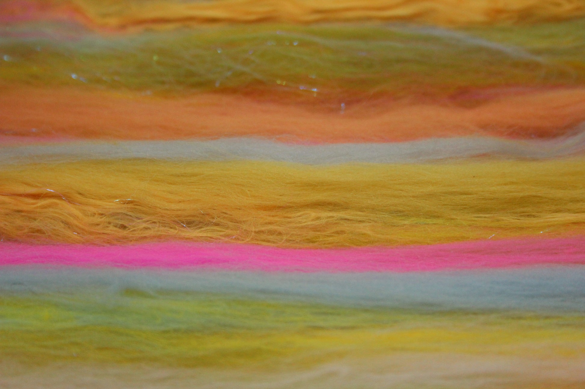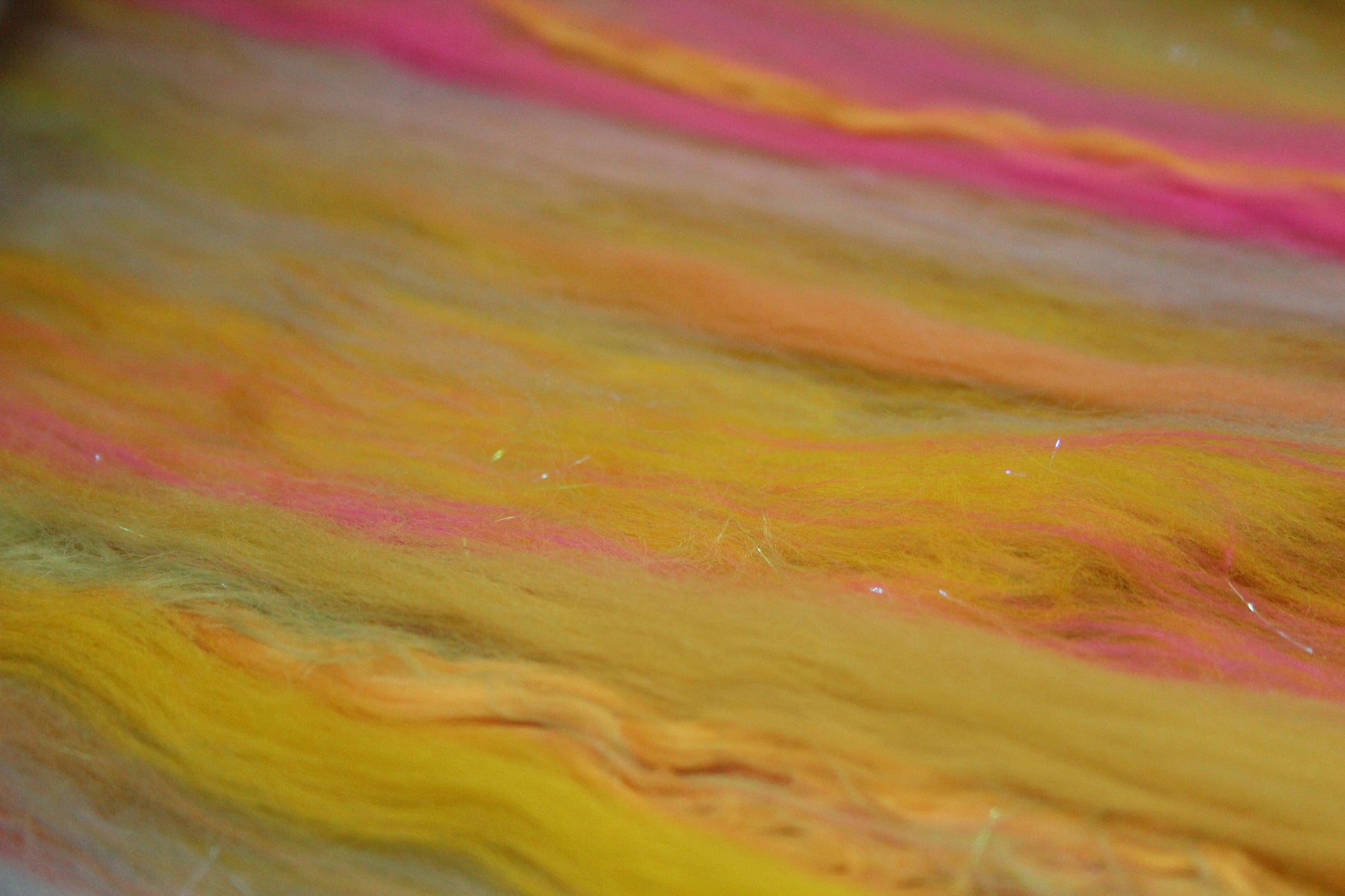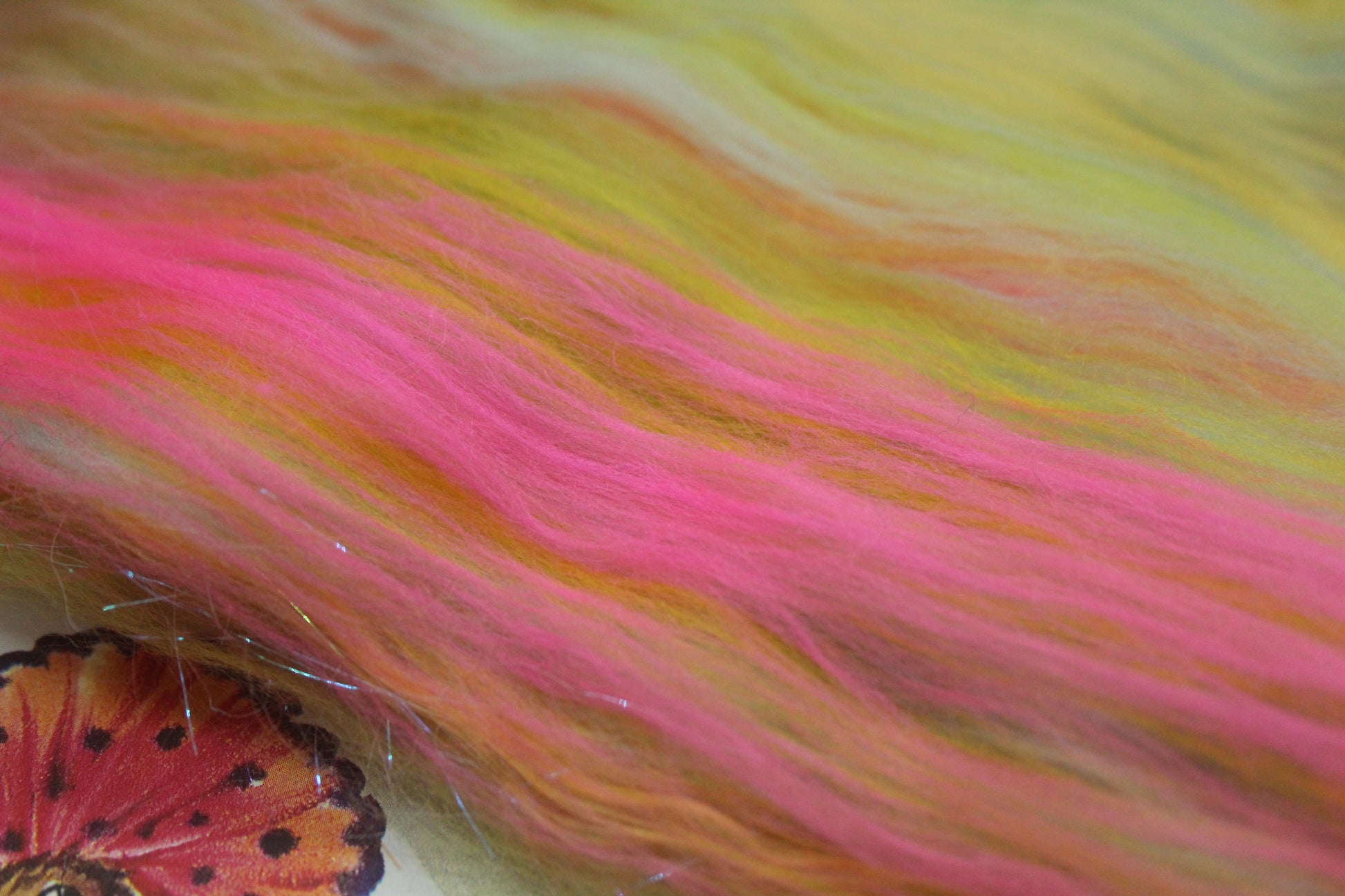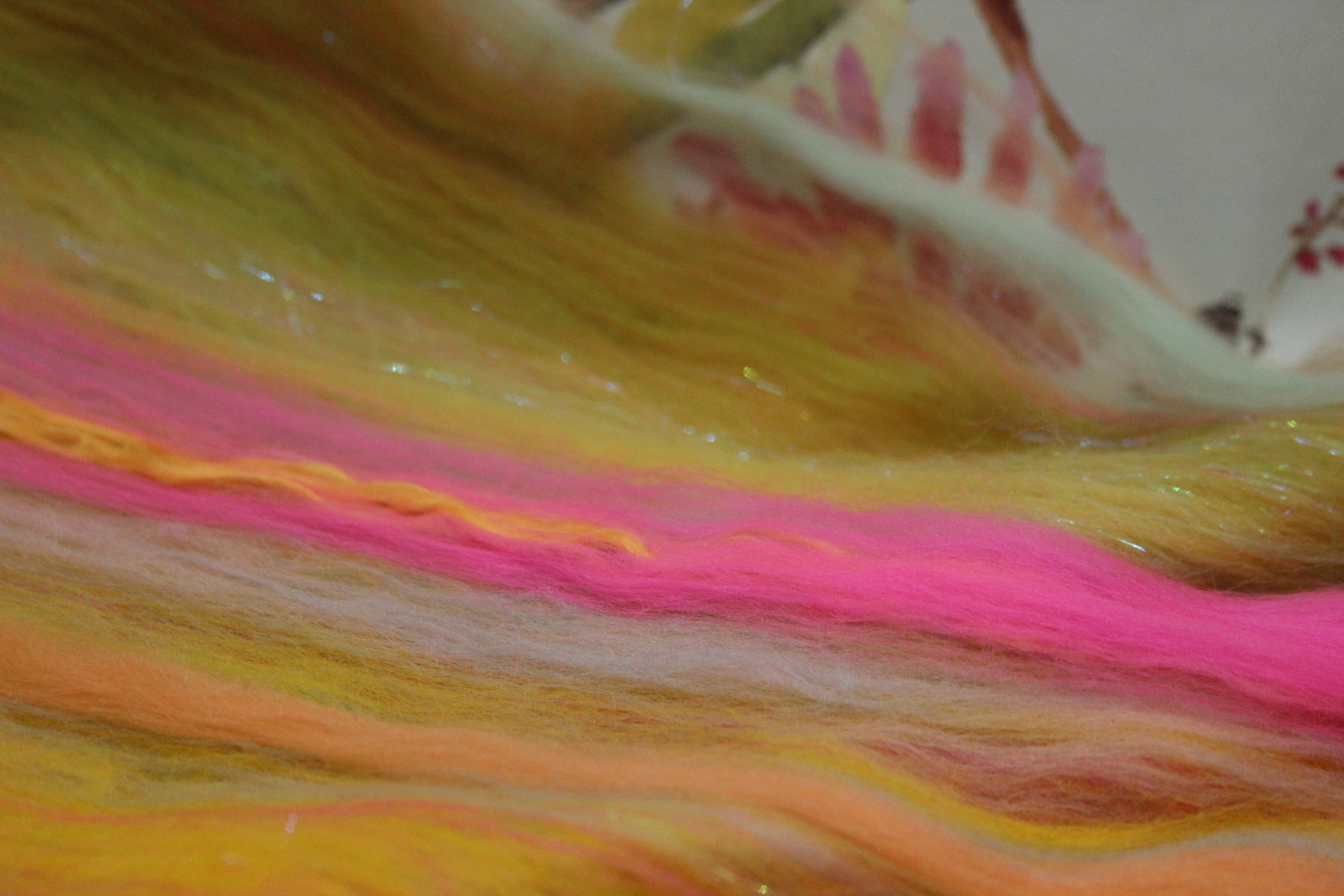 Merino Art Batt - Blue Pink Green Yellow - 90 grams 3.1 oz - Wool for felting, spinning and weaving