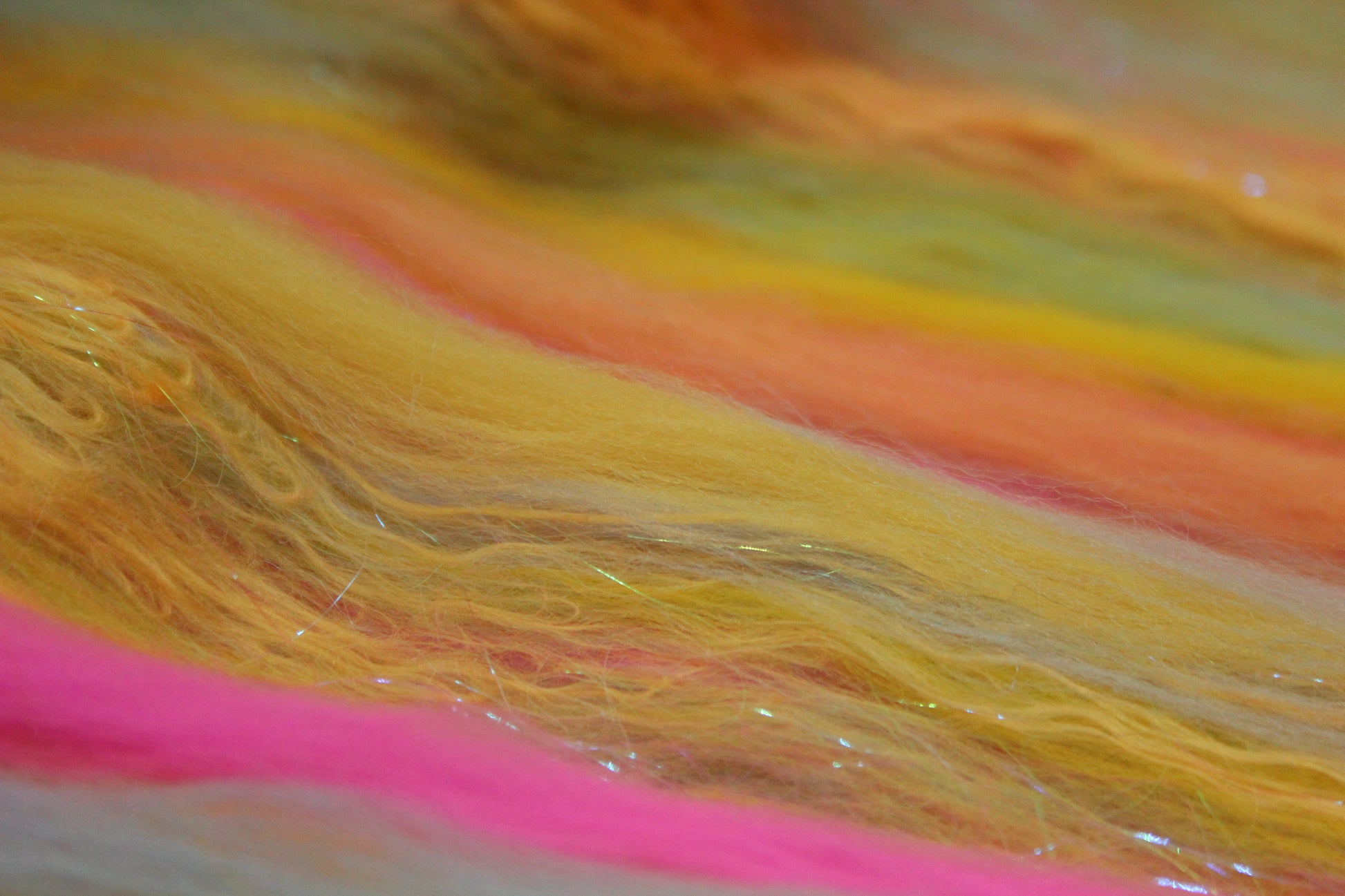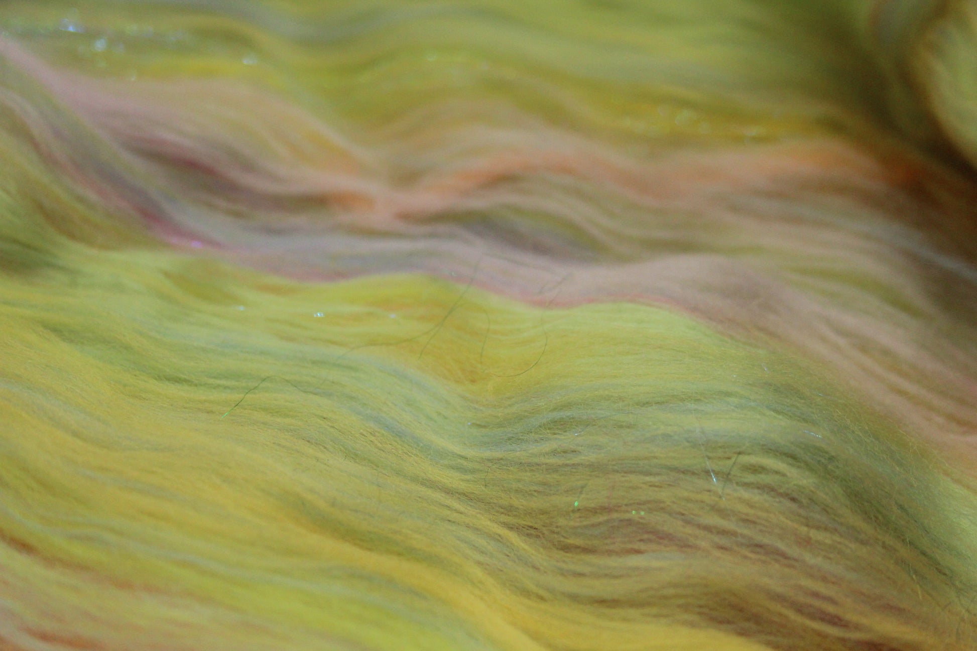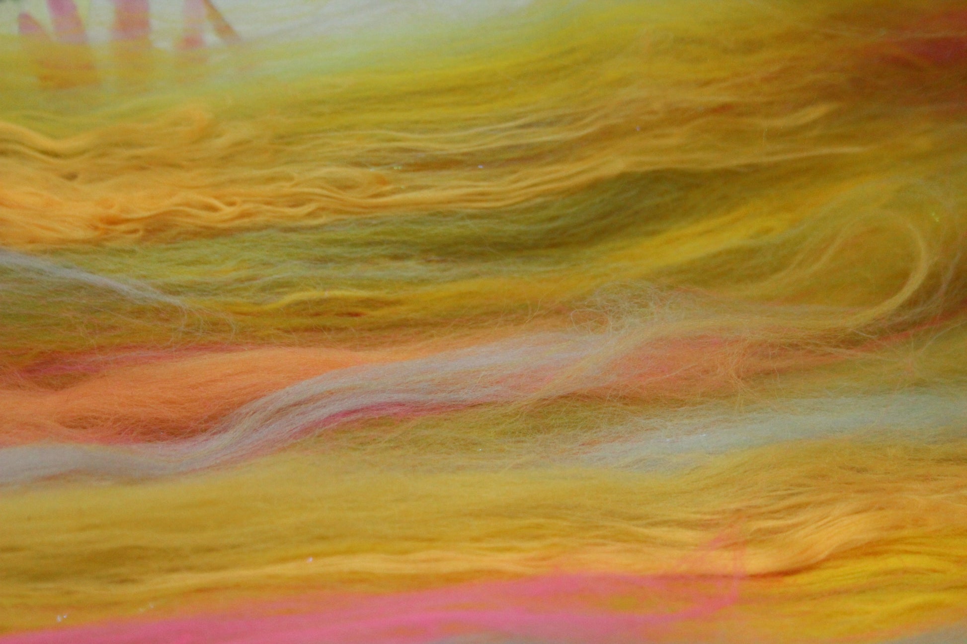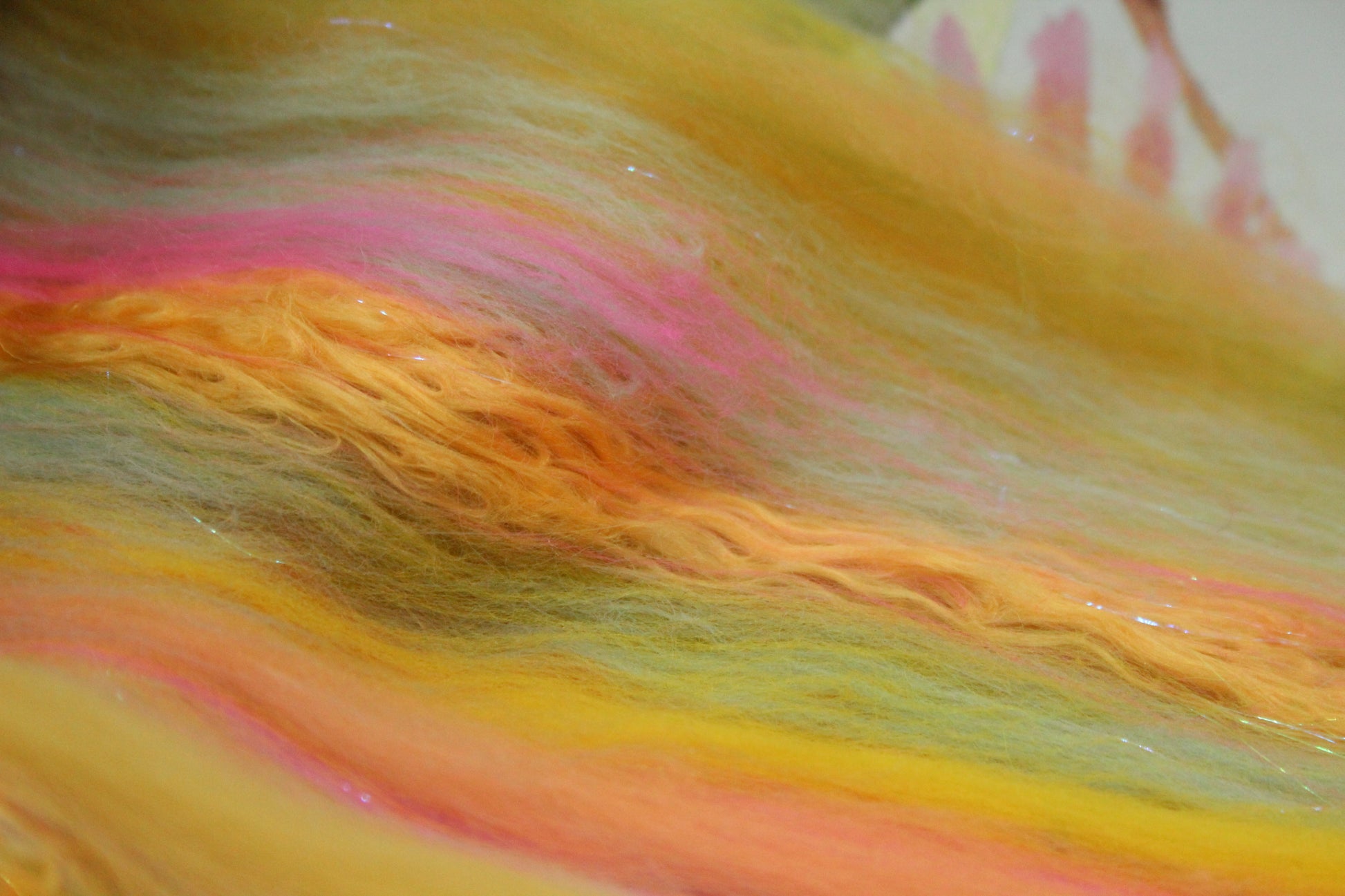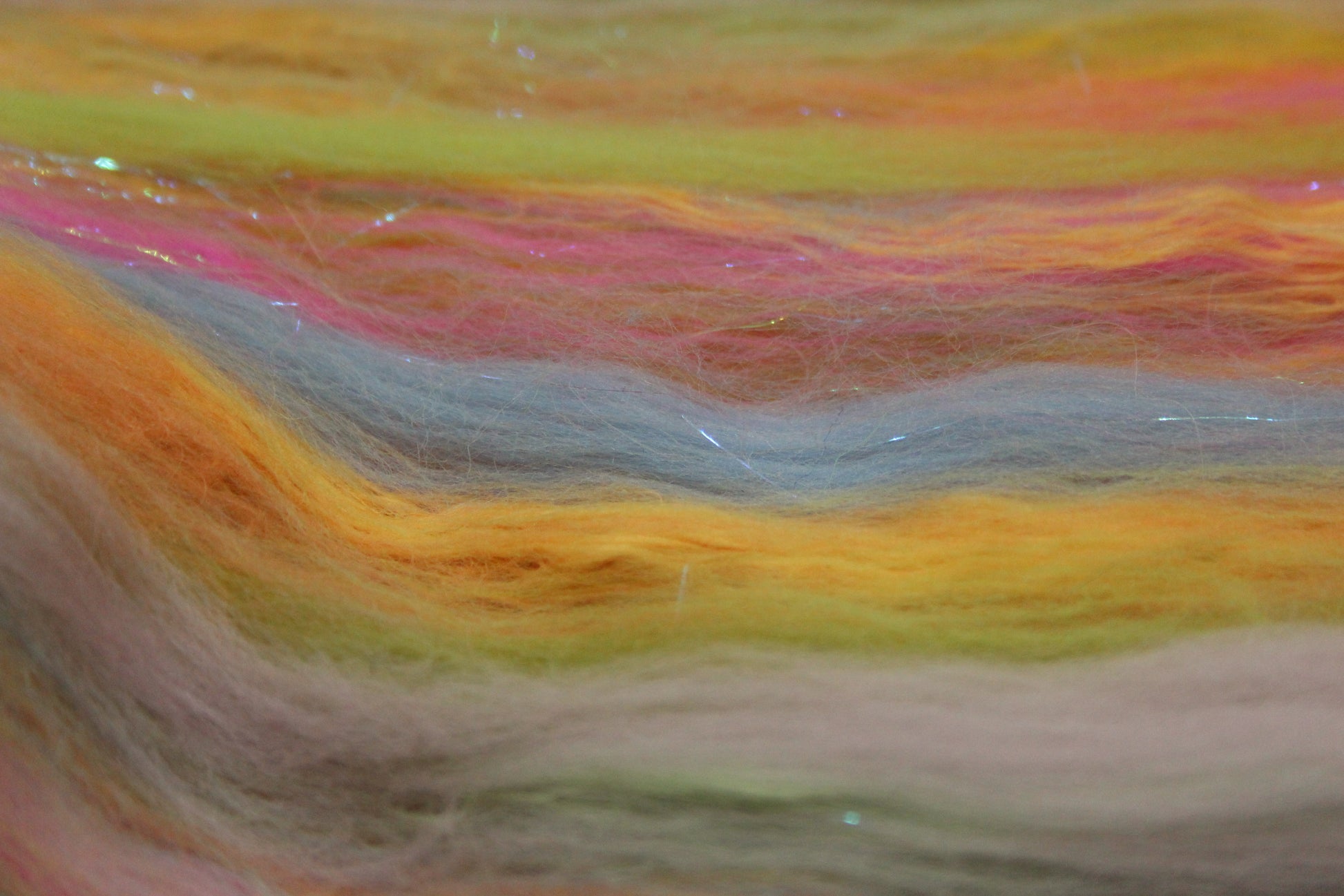 Merino Art Batt - Blue Pink Green Yellow - 90 grams 3.1 oz - Wool for felting, spinning and weaving
