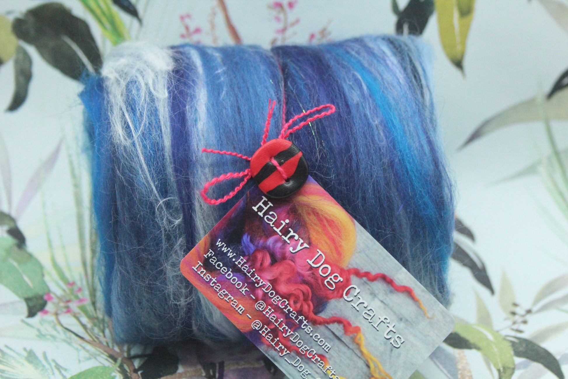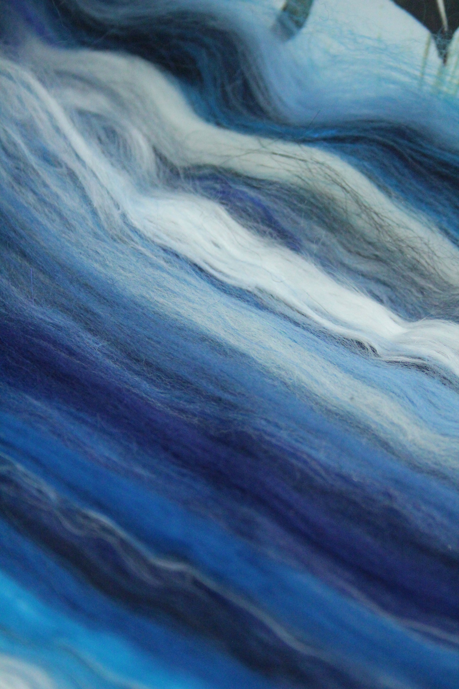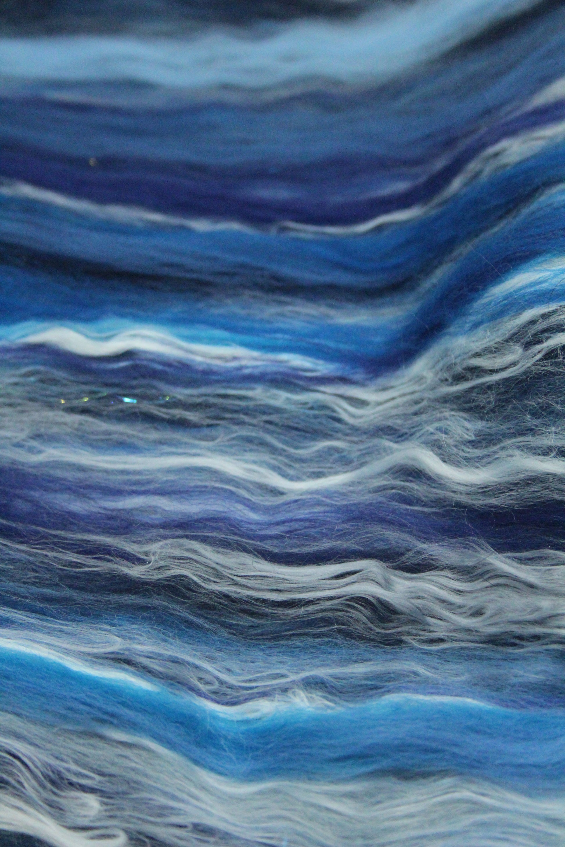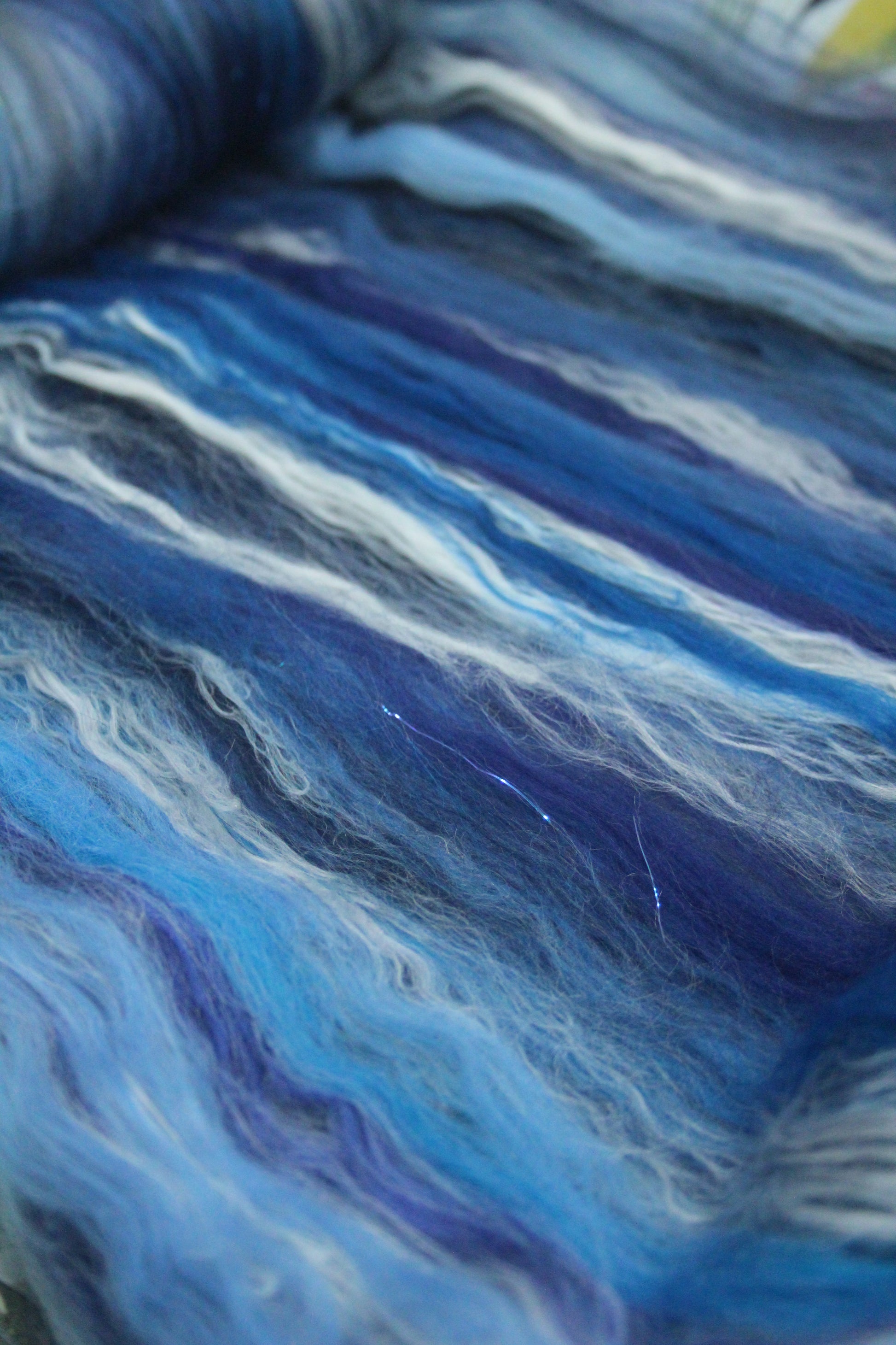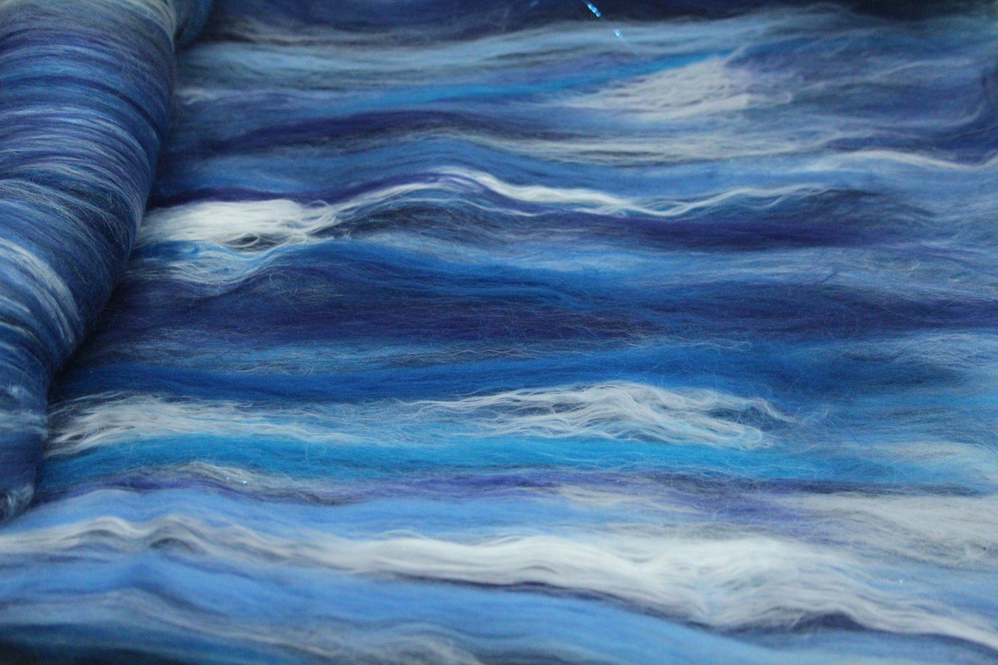 Merino Art Batt - Blue White - 87 grams 3 oz - Wool for felting, spinning and weaving