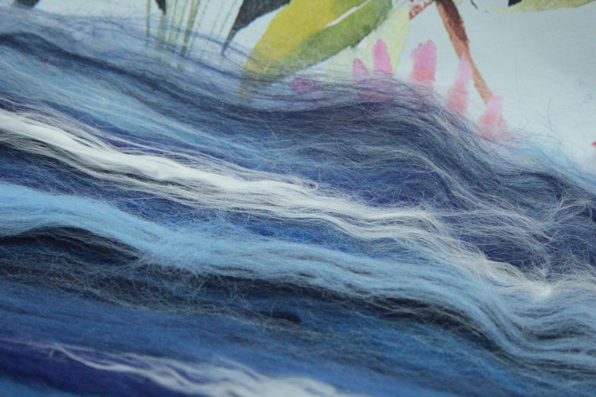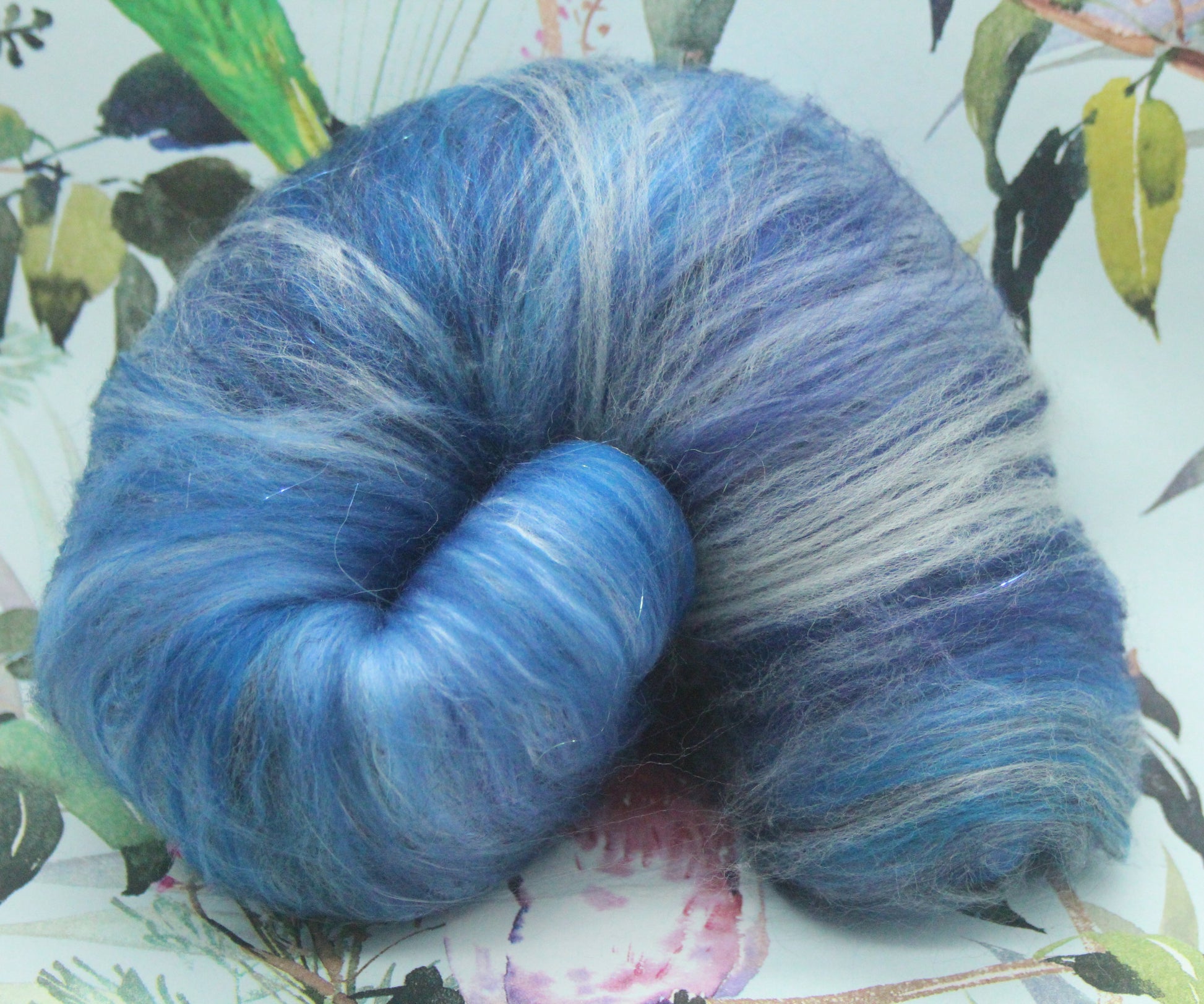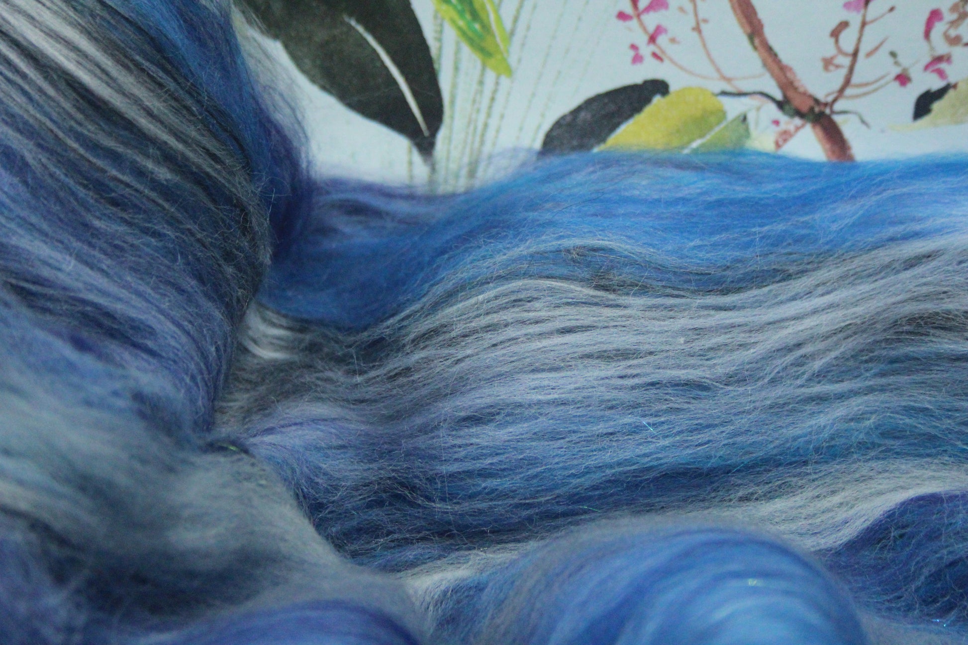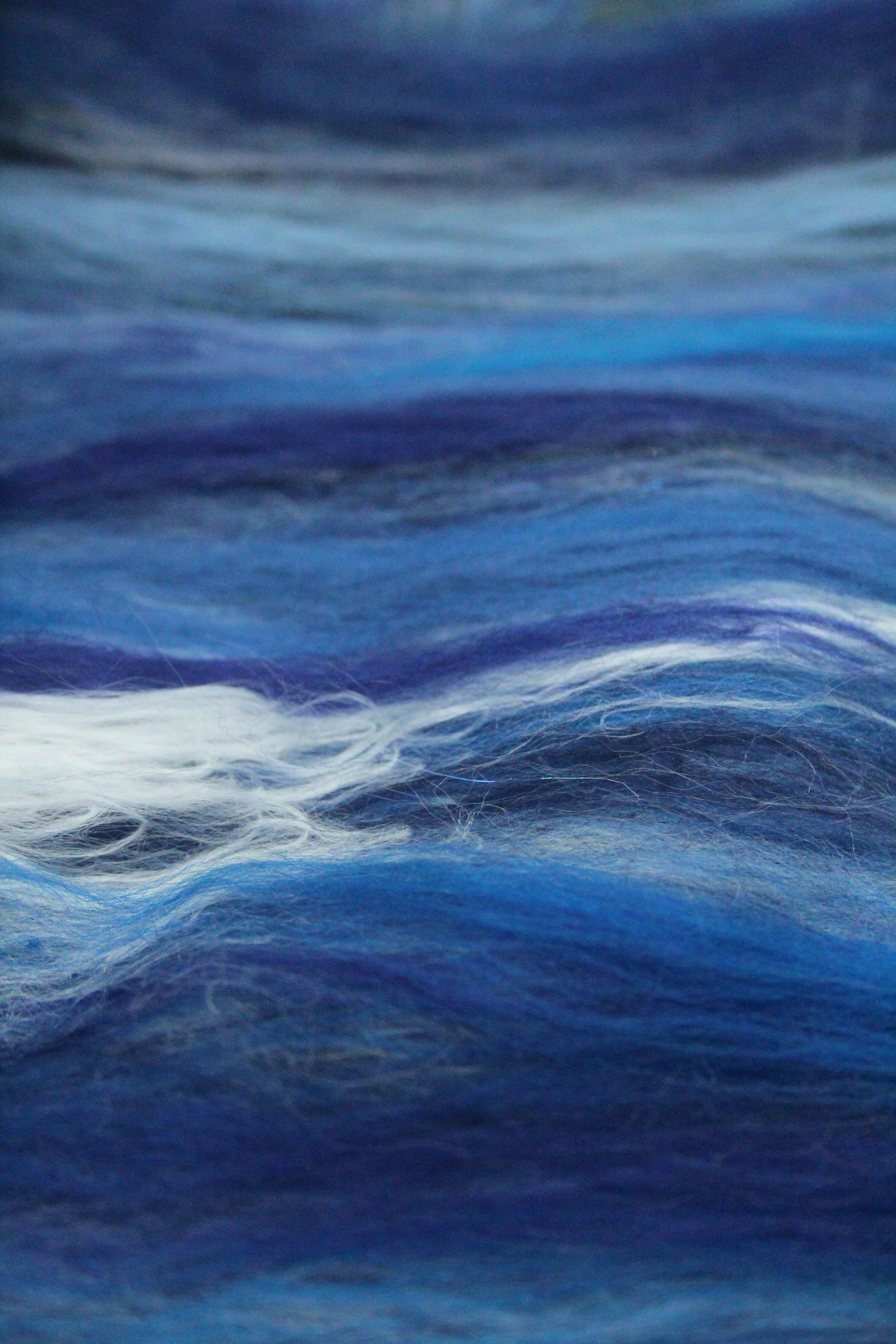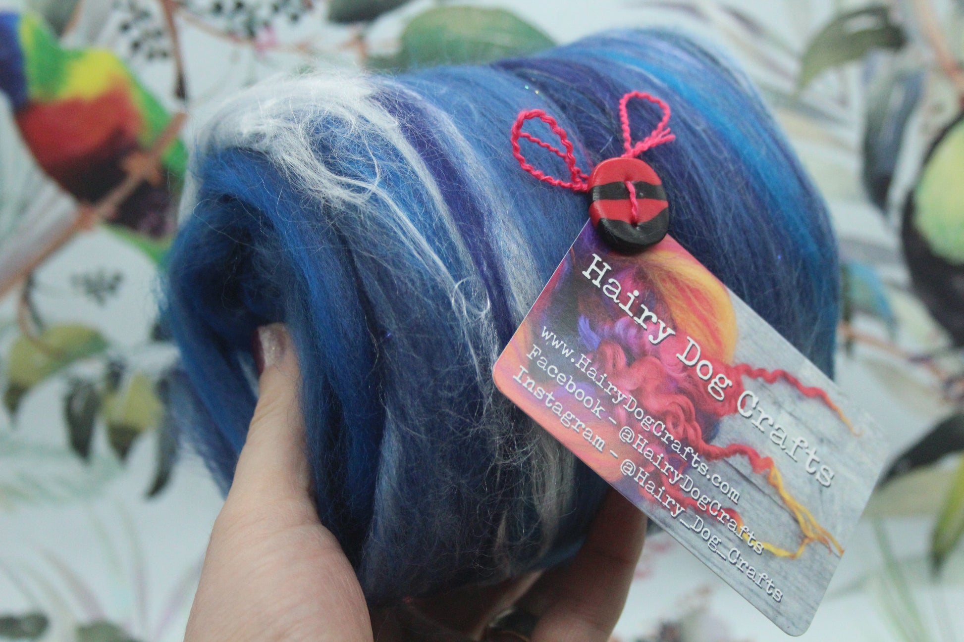 Merino Art Batt - Blue White - 87 grams 3 oz - Wool for felting, spinning and weaving