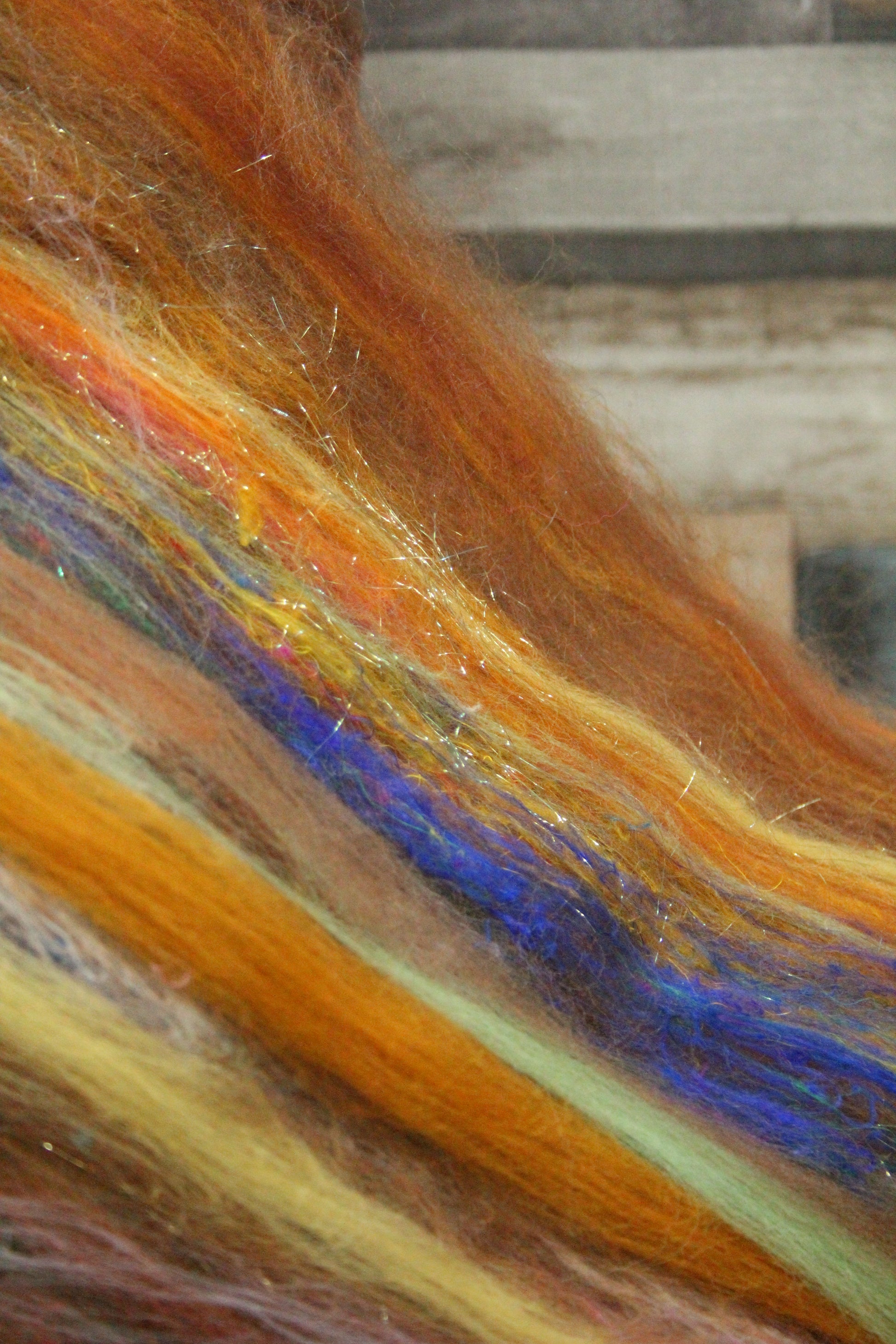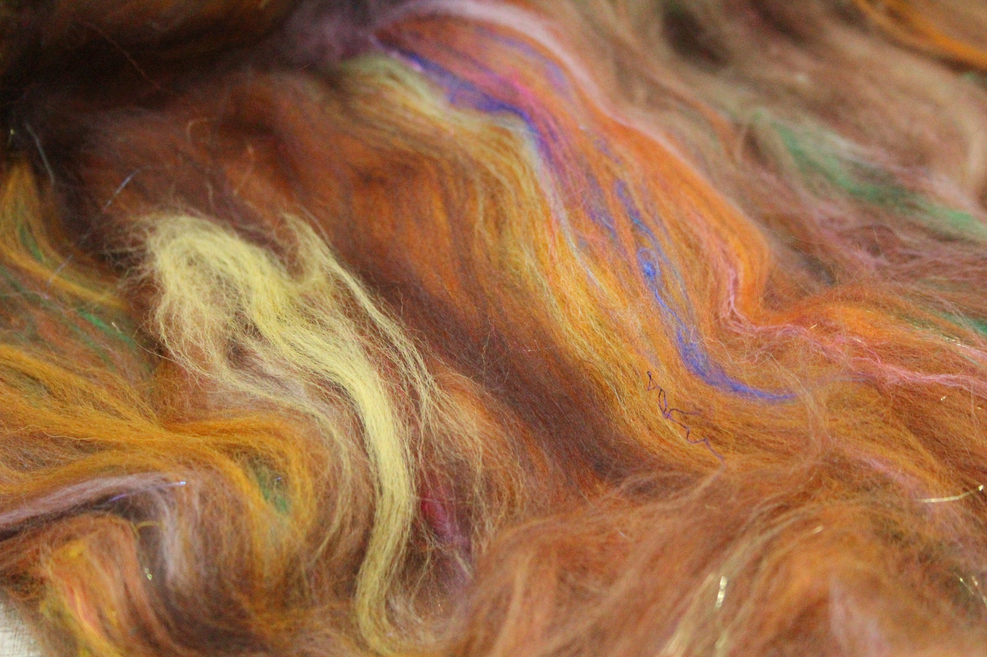 This is a batt that I have created by drum carding wool and speciality fibres. This would be perfect for so many projects - leave it whole and wet felt to create a beautiful background for embellishing, split and hand spin into a beautiful yarn, pull sections off and lay them down for wet felting into something fantastic like a bag, needle felt a fun 3D creature, weave into a wall hanging....