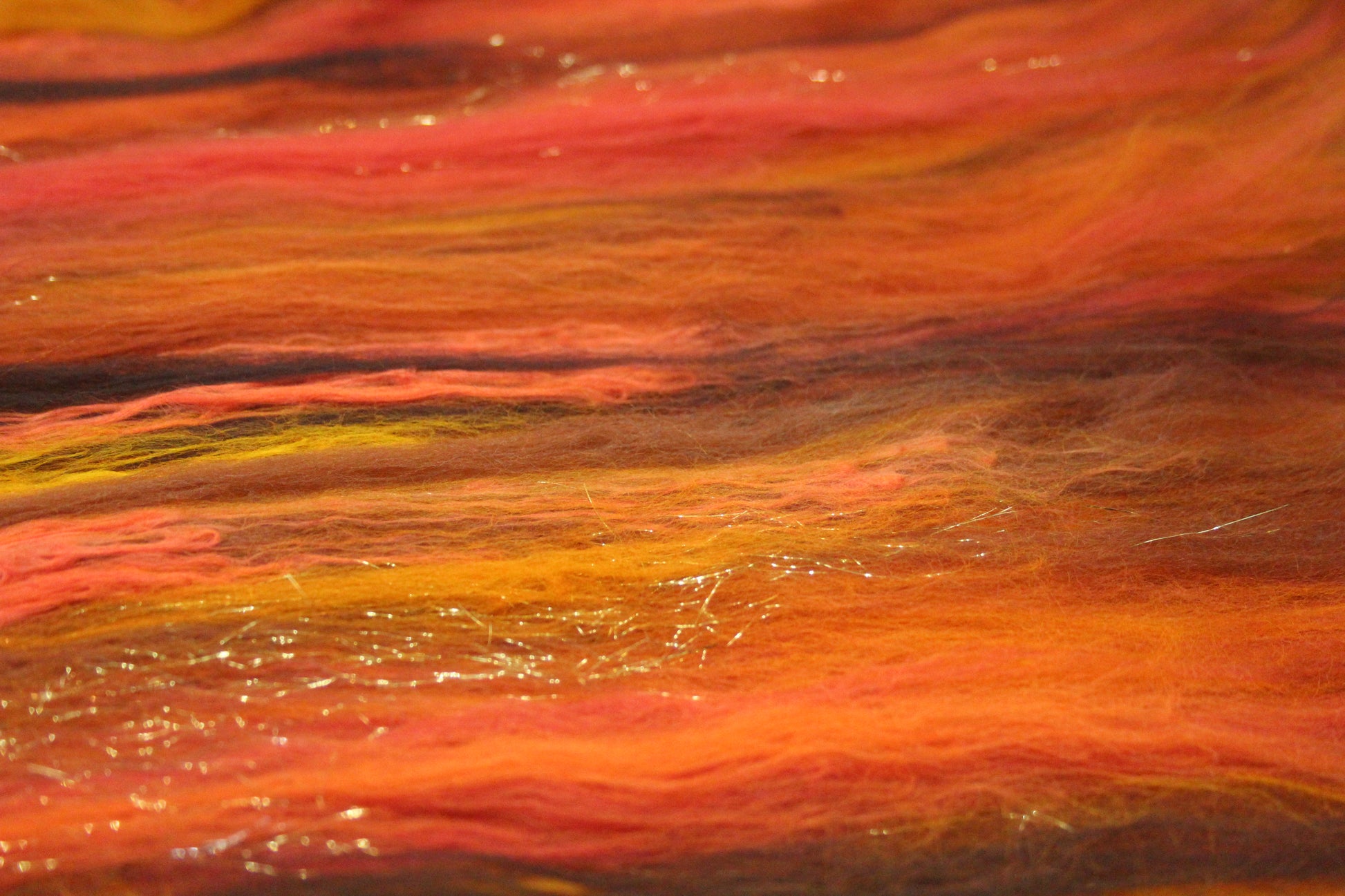 This is a batt that I have created by drum carding wool and speciality fibres. This would be perfect for so many projects - leave it whole and wet felt to create a beautiful background for embellishing, split and hand spin into a beautiful yarn, pull sections off and lay them down for wet felting into something fantastic like a bag, needle felt a fun 3D creature, weave into a wall hanging....