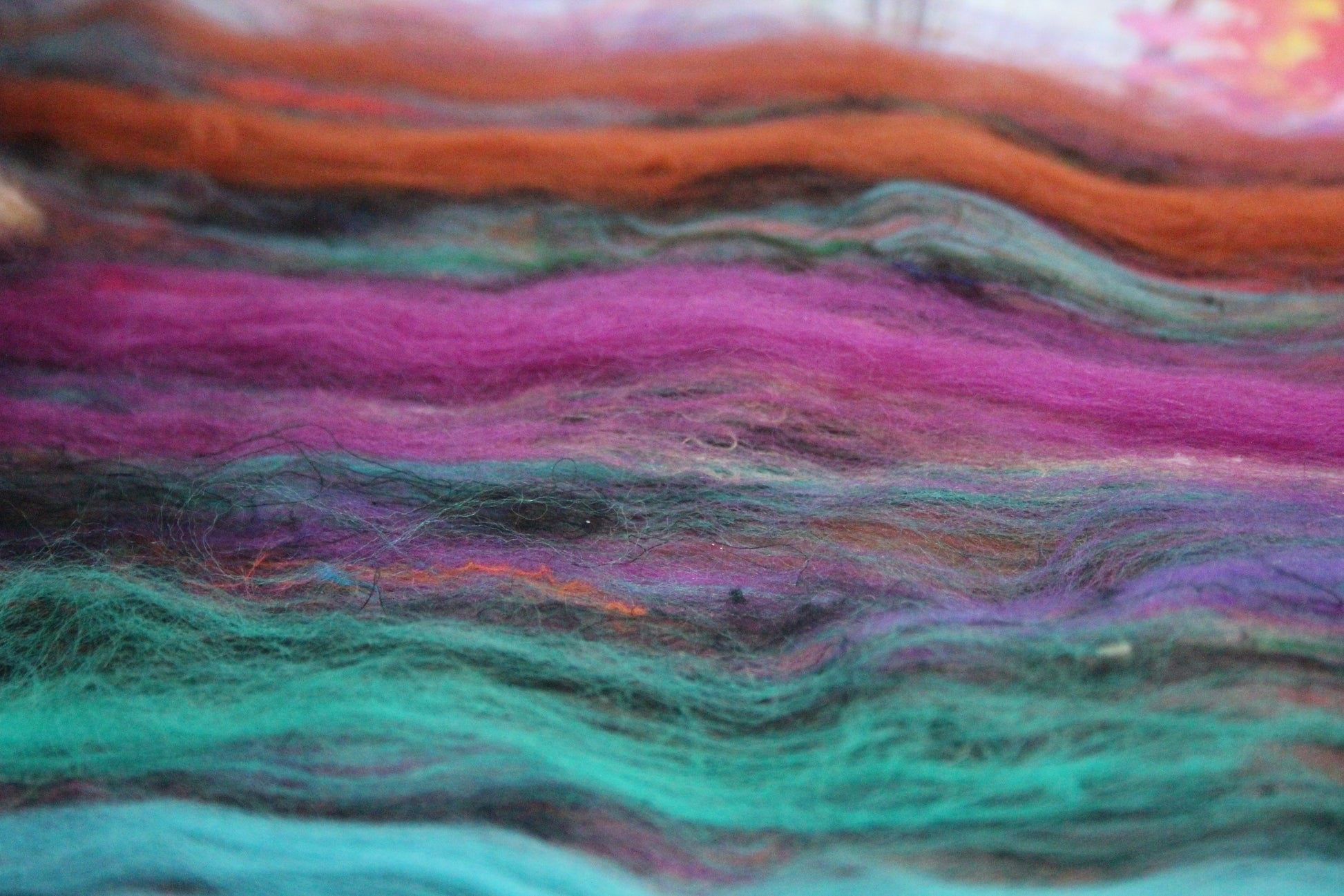 Merino Art Batt - Green Pink Brown Blue Purple - 48 grams 1.6 oz - Wool for felting, spinning and weaving