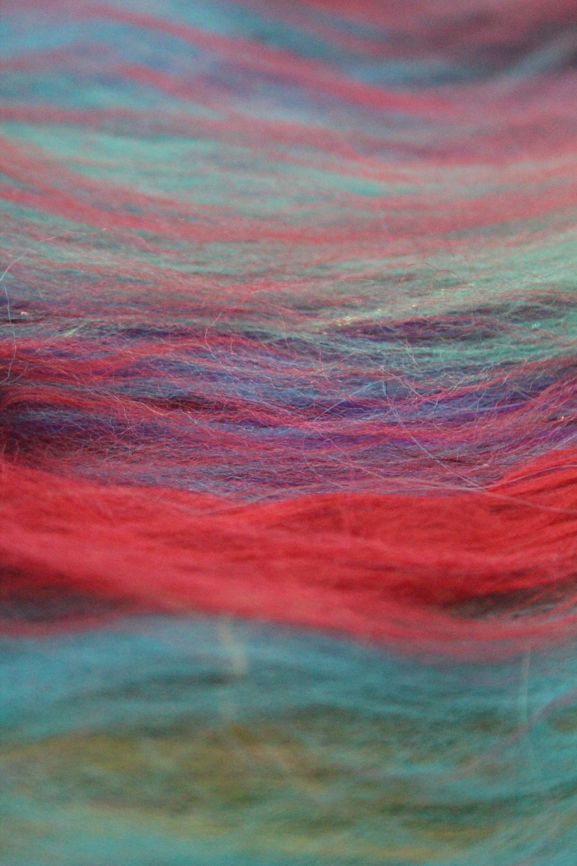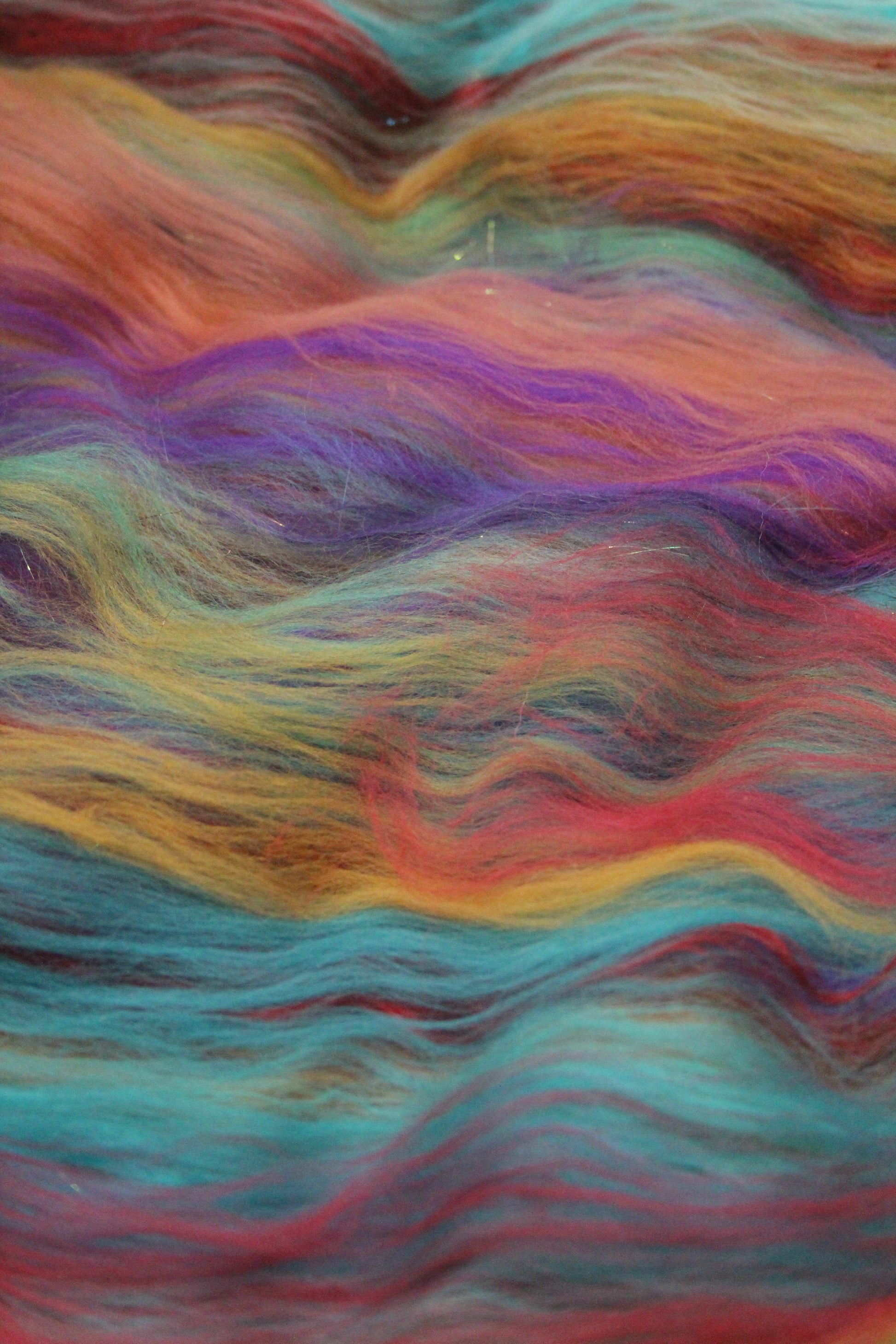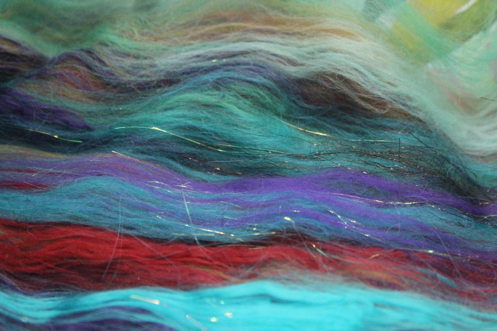 Merino Art Batt - Green Red Purple Blue - 87 grams 3 oz - Wool for felting, spinning and weaving