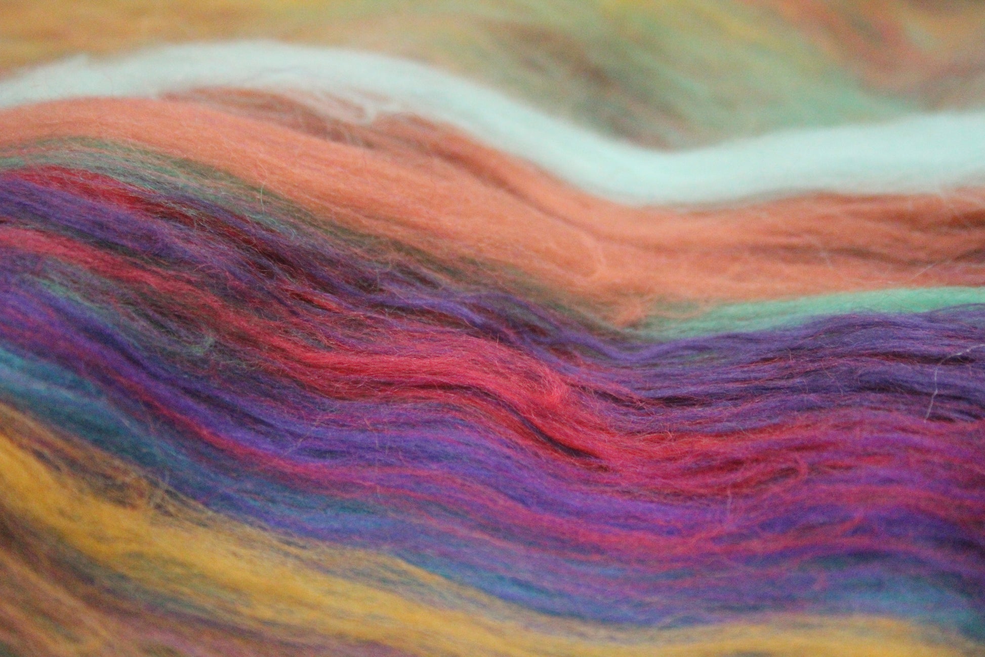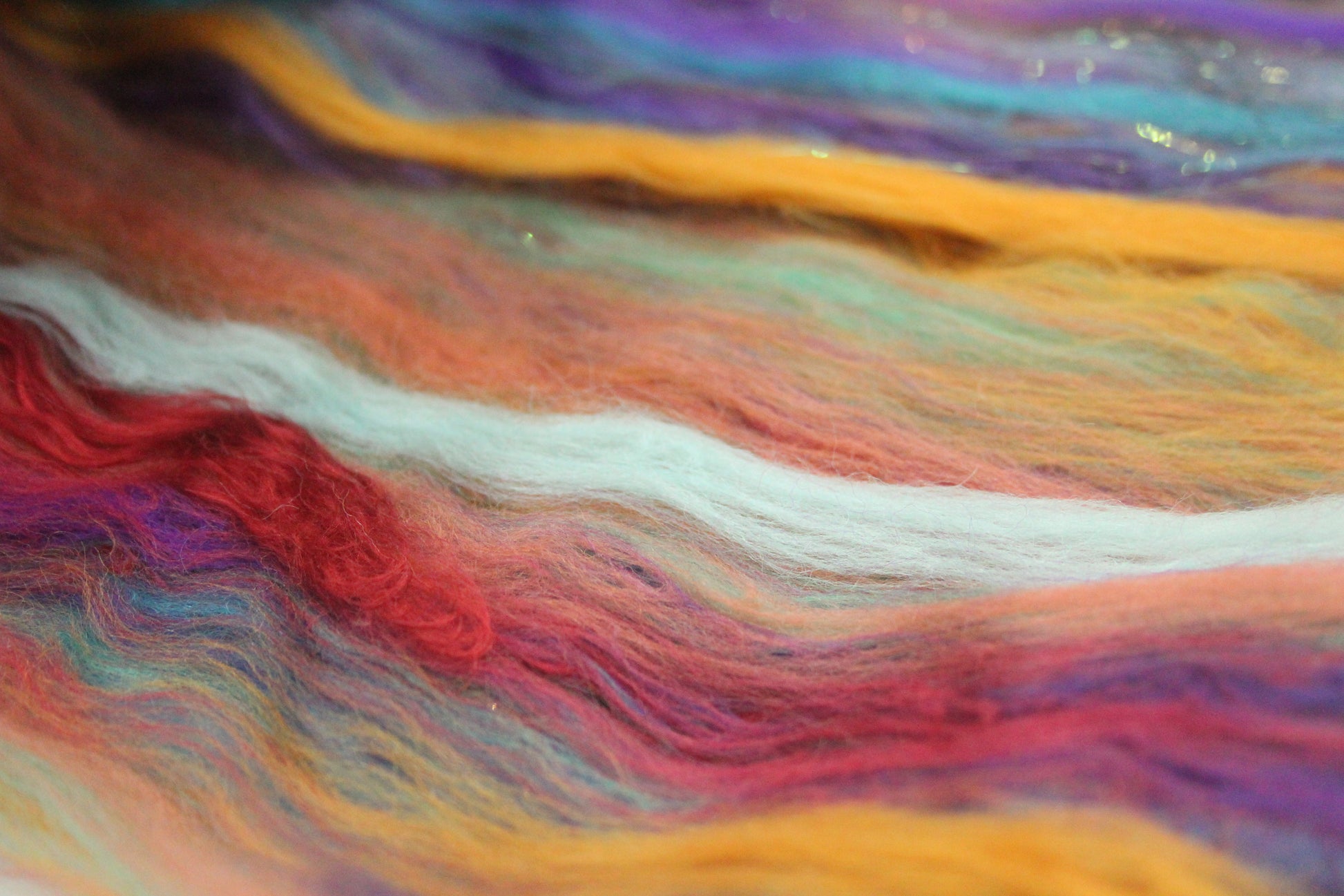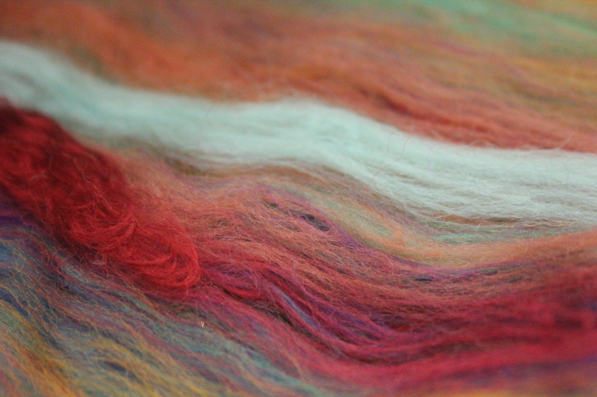Merino Art Batt - Green Red Purple Blue - 87 grams 3 oz - Wool for felting, spinning and weaving