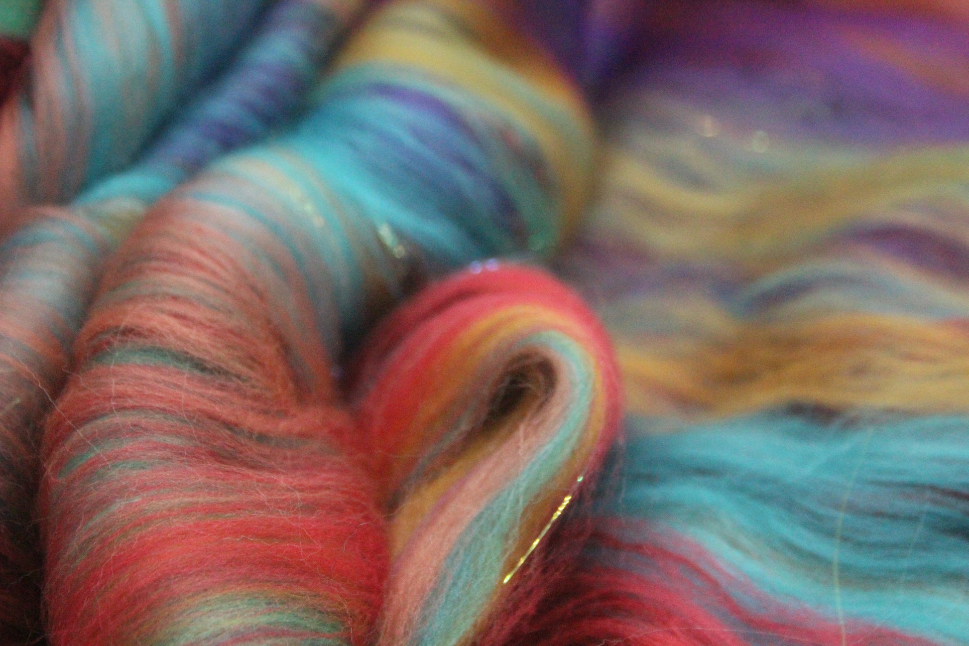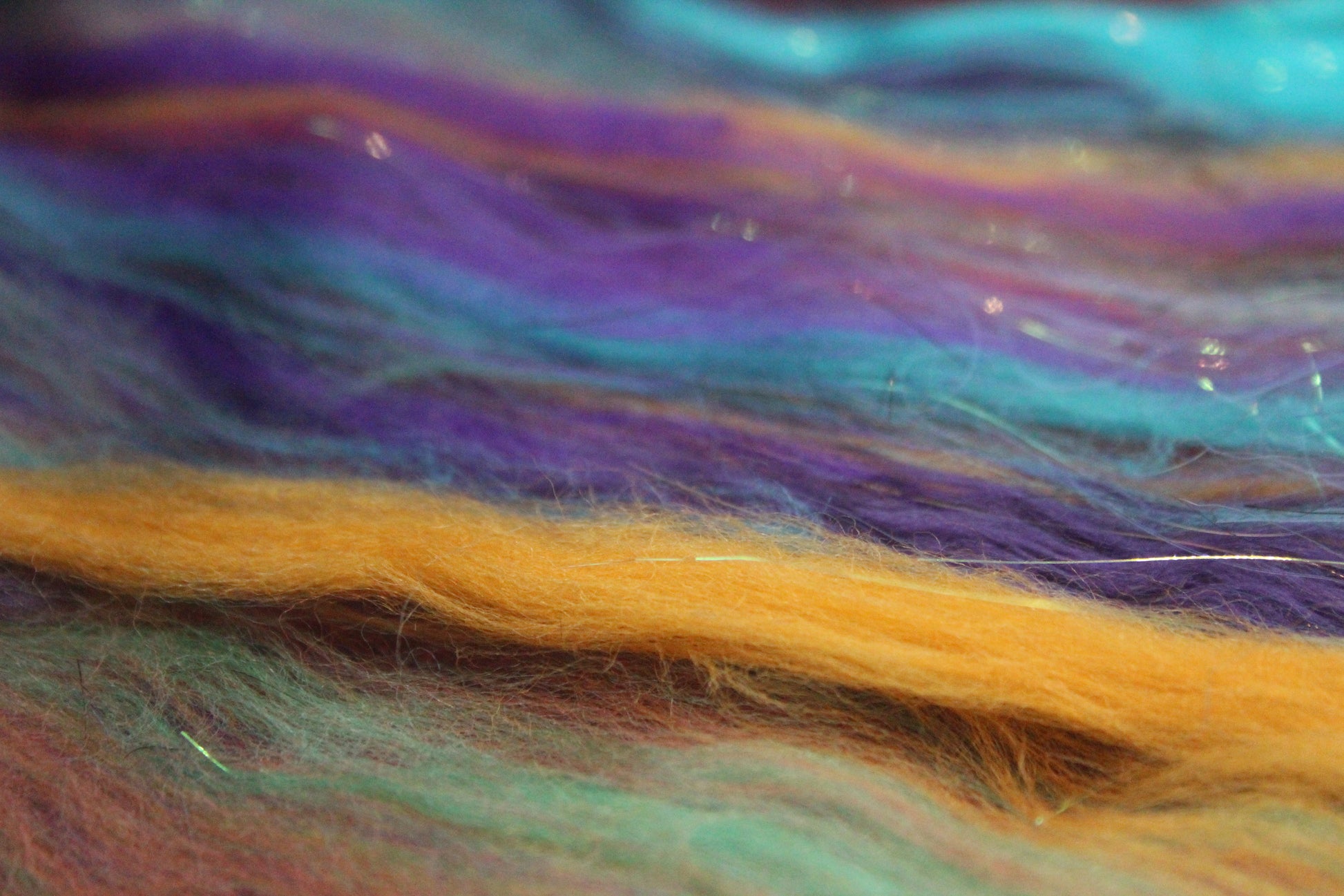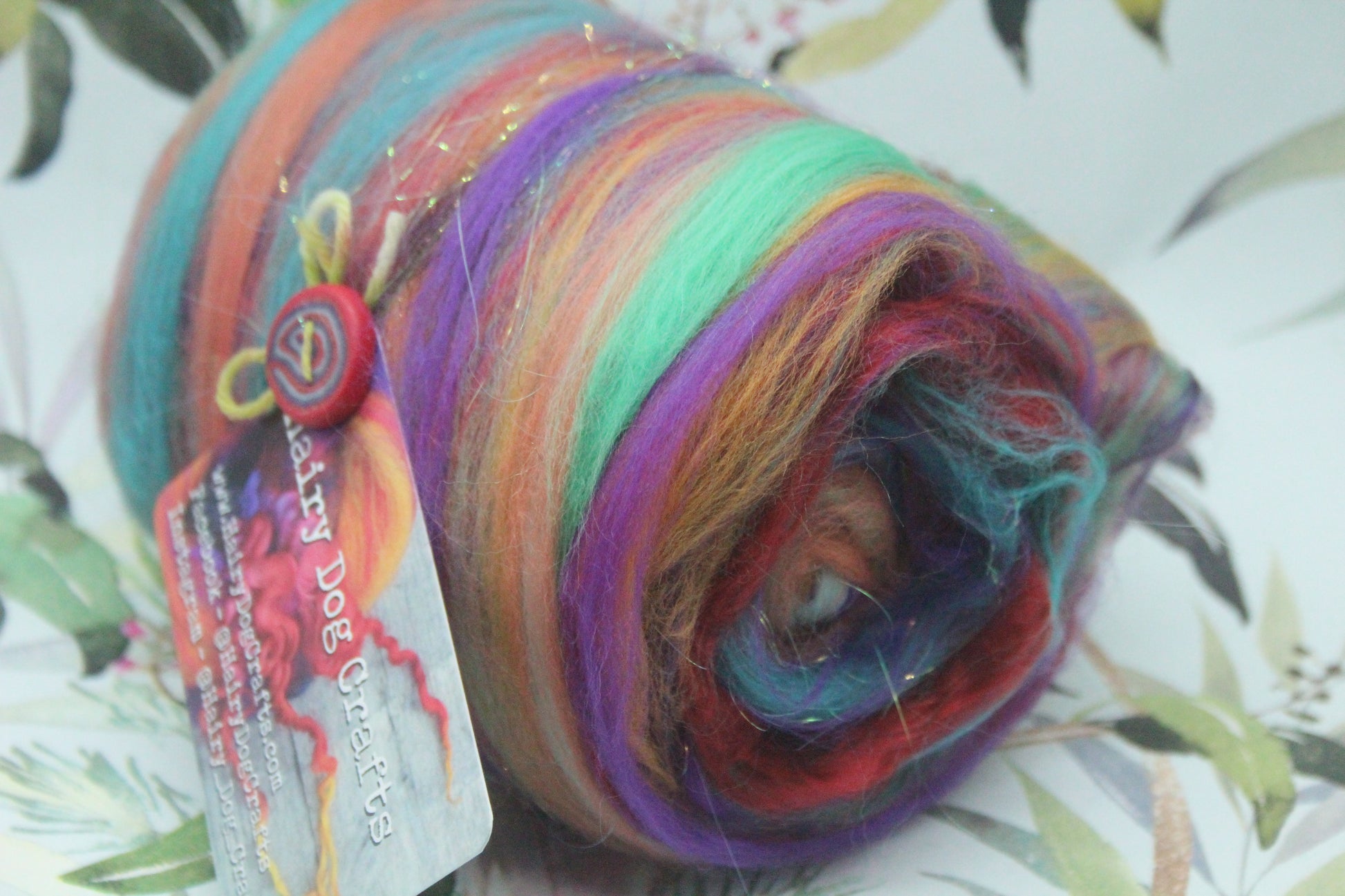 This is a batt that I have created by drum carding wool and speciality fibres. This would be perfect for so many projects - leave it whole and wet felt to create a beautiful background for embellishing, split and hand spin into a beautiful yarn, pull sections off and lay them down for wet felting into something fantastic like a bag, needle felt a fun 3D creature, weave into a wall hanging....