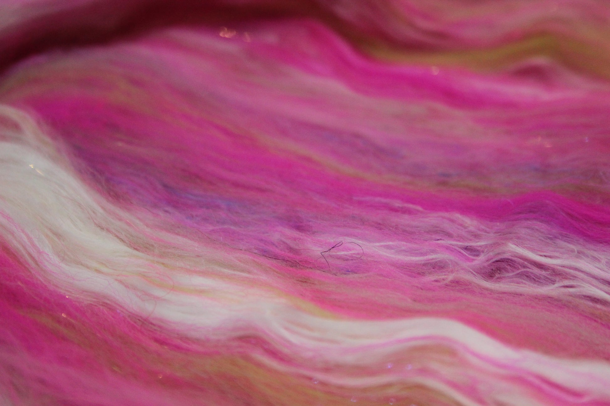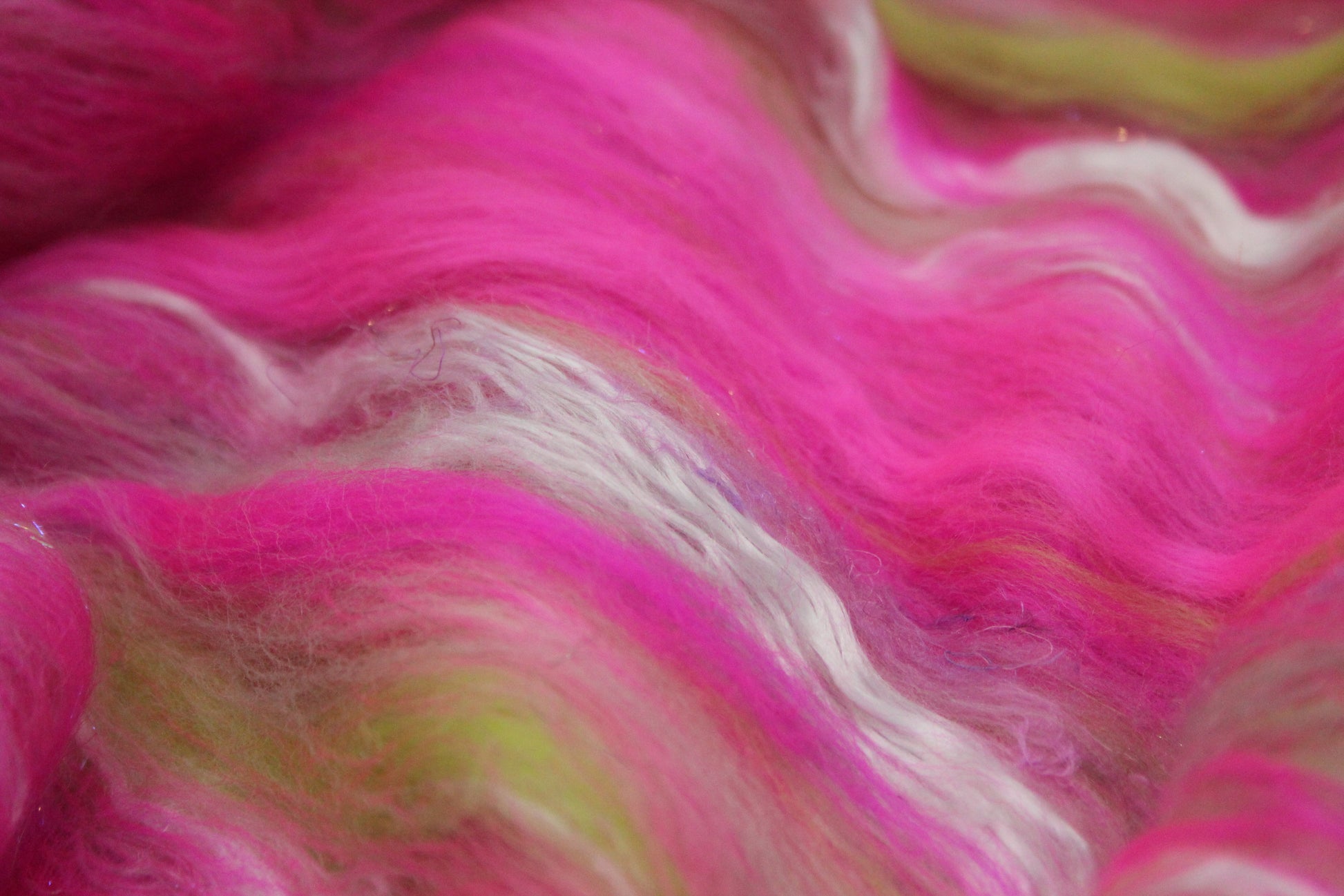 Merino Art Batt - Pink Green - 68 grams 2.3 oz - Wool for felting, spinning and weaving