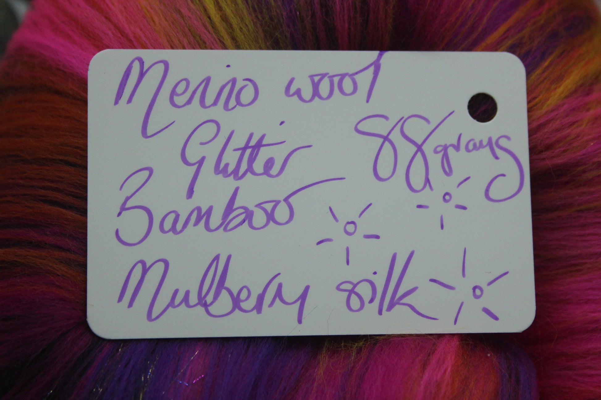This is a batt that I have created by drum carding wool and speciality fibres. This would be perfect for so many projects - leave it whole and wet felt to create a beautiful background for embellishing, split and hand spin into a beautiful yarn, pull sections off and lay them down for wet felting into something fantastic like a bag, needle felt a fun 3D creature, weave into a wall hanging....