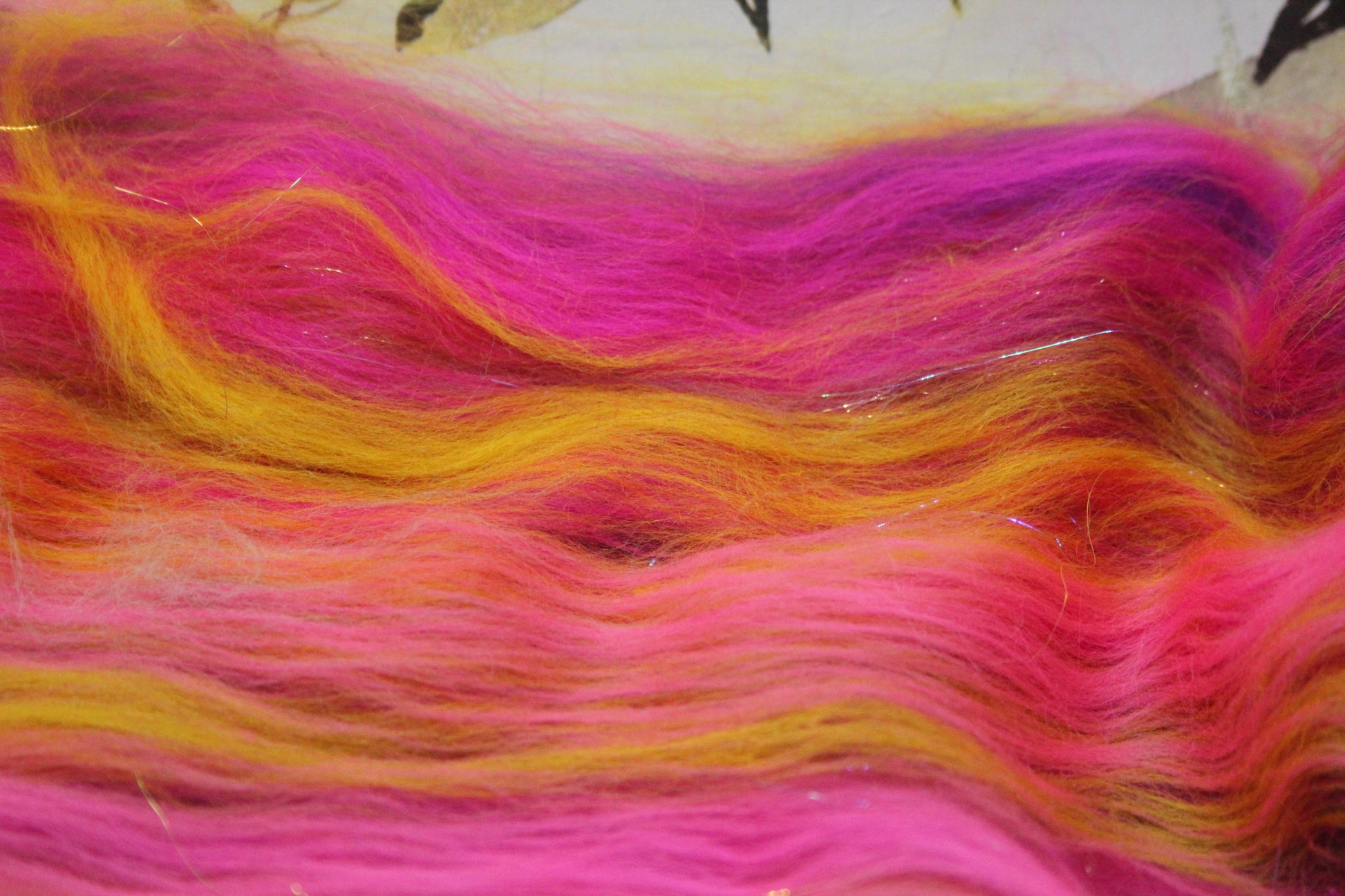 Merino Art Batt - Pink Yellow Purple Orange - 88 grams 3.1 oz - Wool for felting, spinning and weaving