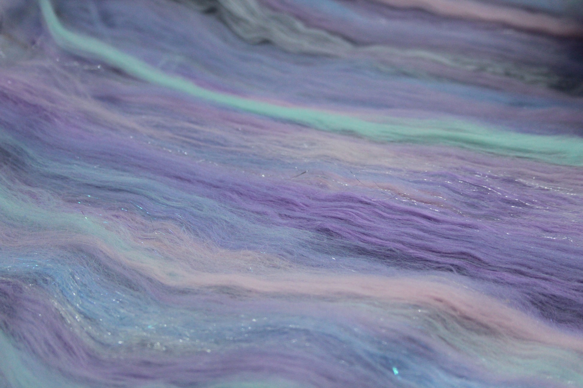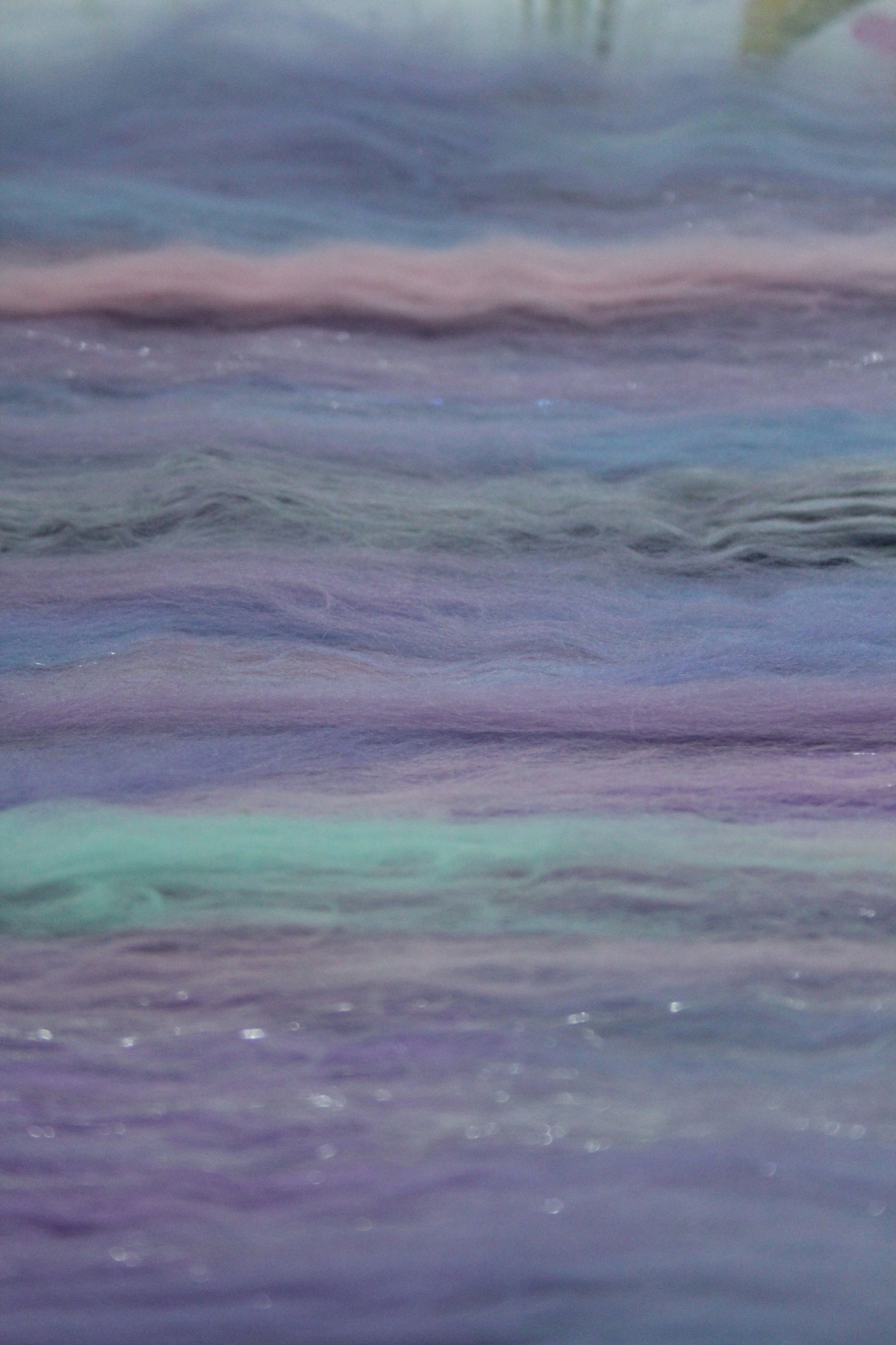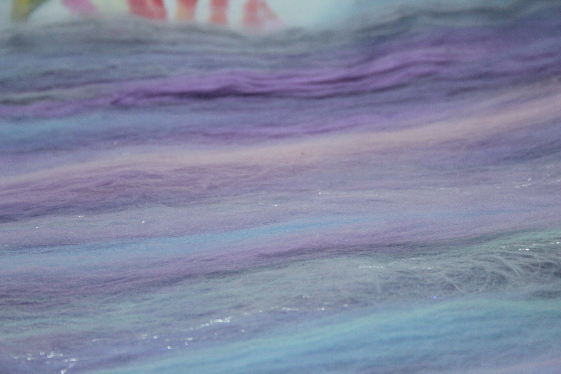 Merino Art Batt - Purple Blue Pink - 90 grams 3.1 oz - Wool for felting, spinning and weaving