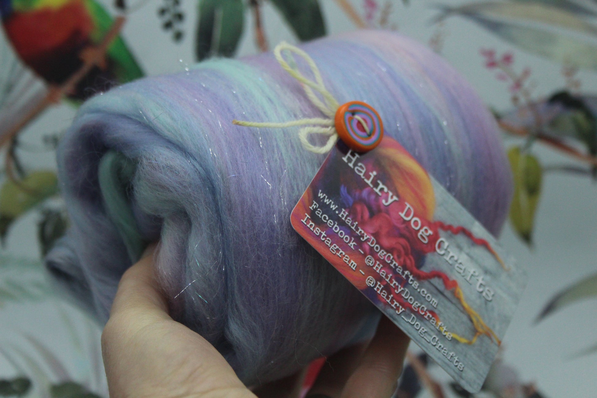 This is a batt that I have created by drum carding wool and speciality fibres. This would be perfect for so many projects - leave it whole and wet felt to create a beautiful background for embellishing, split and hand spin into a beautiful yarn, pull sections off and lay them down for wet felting into something fantastic like a bag, needle felt a fun 3D creature, weave into a wall hanging....