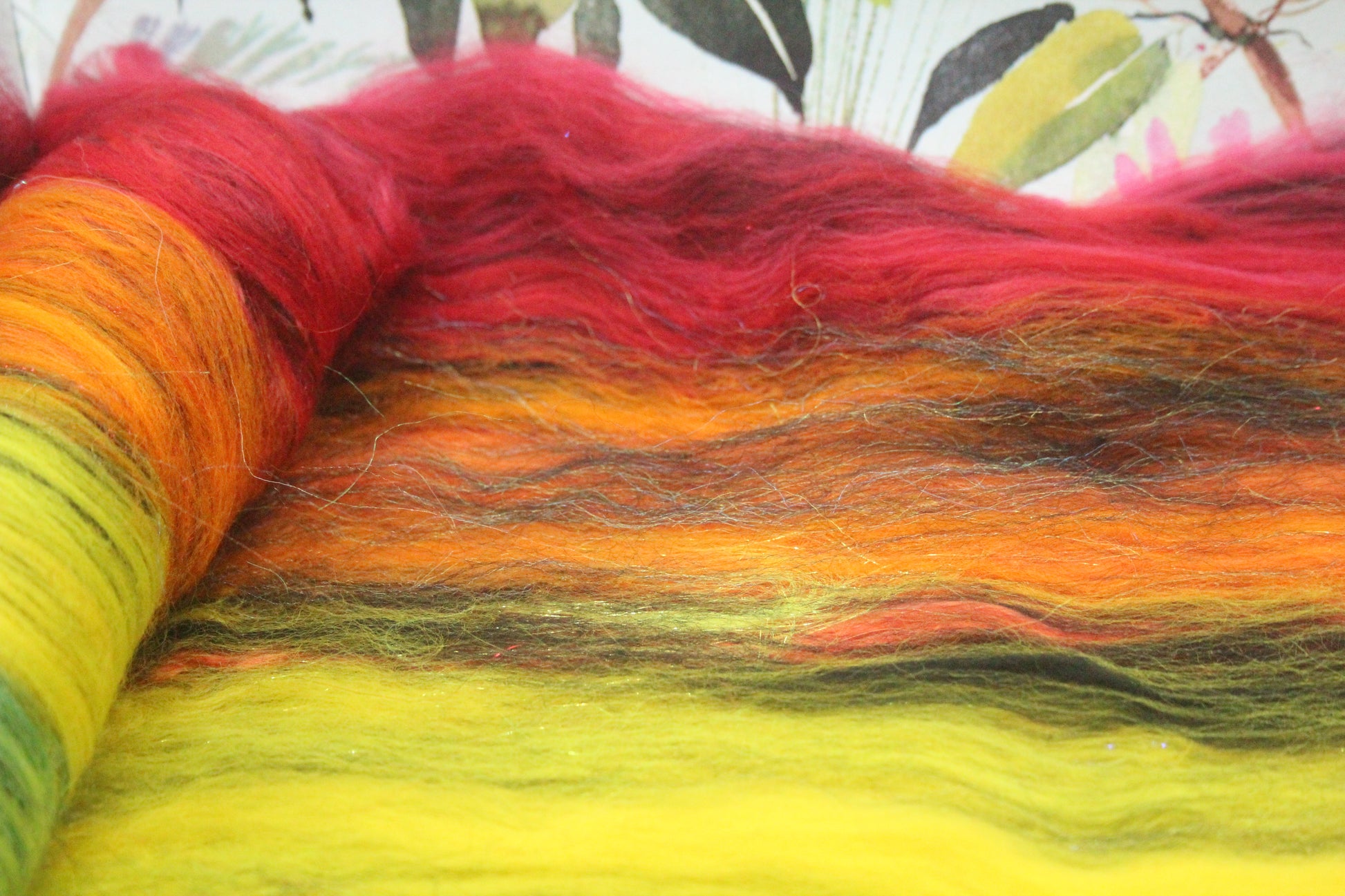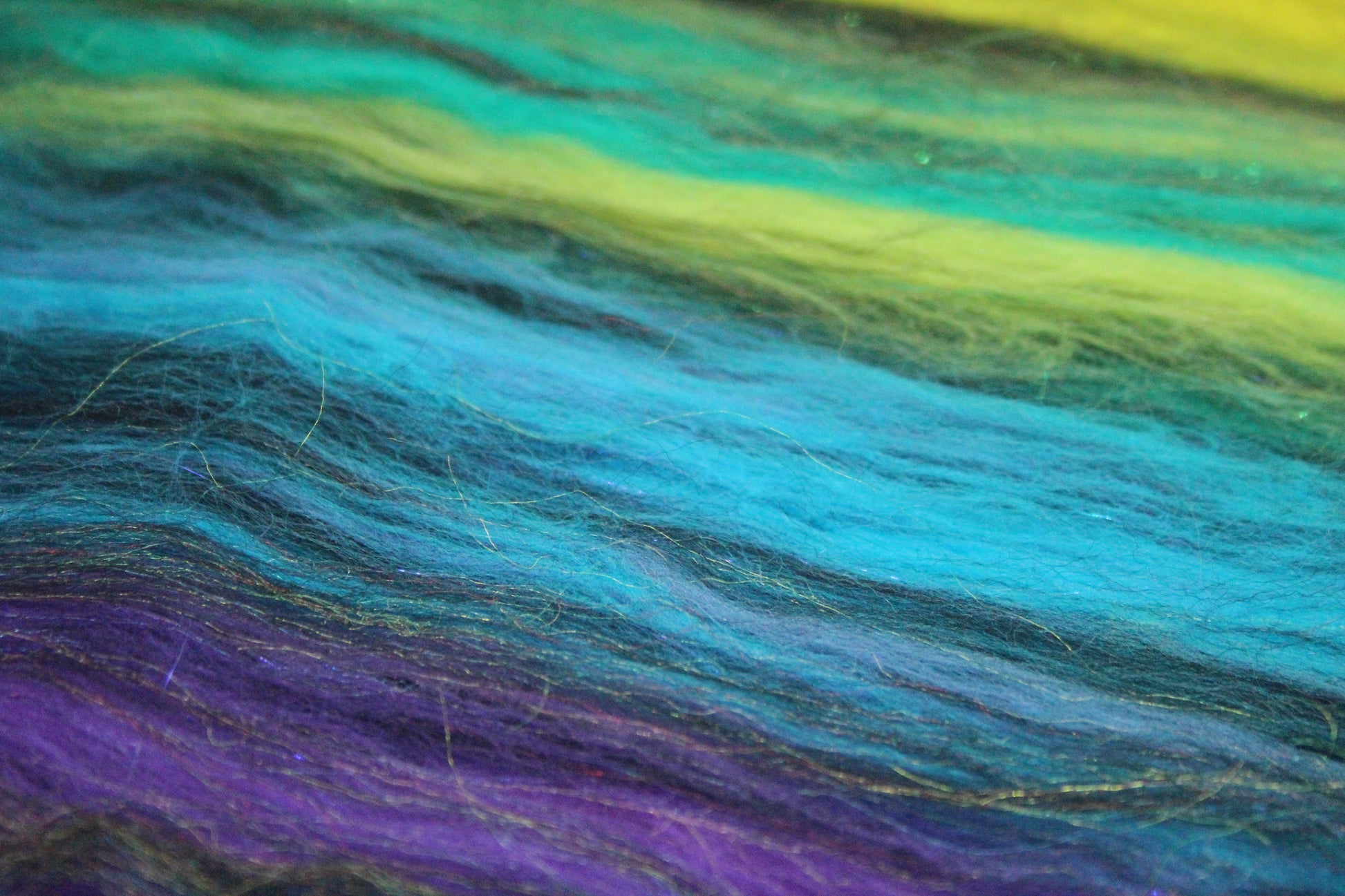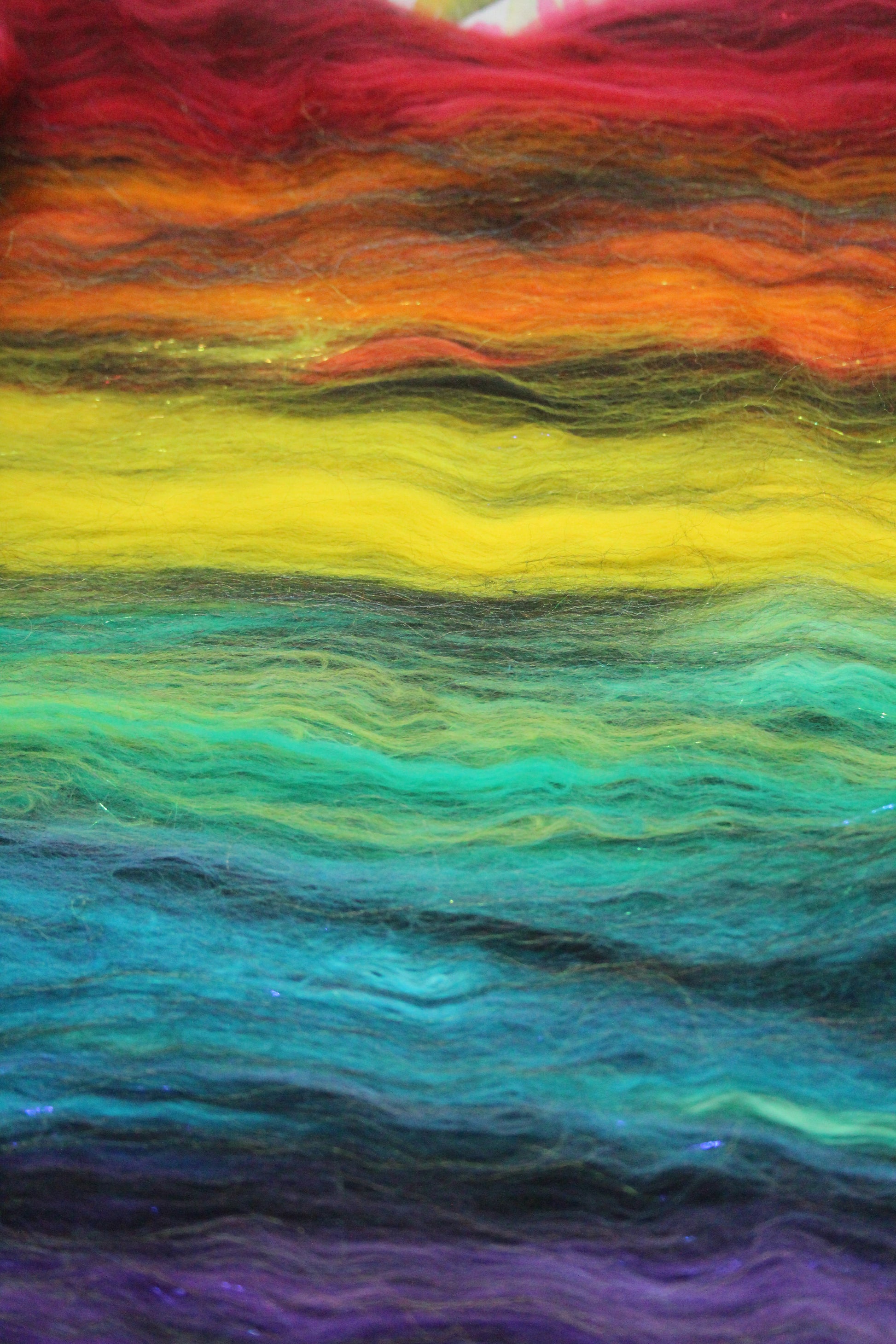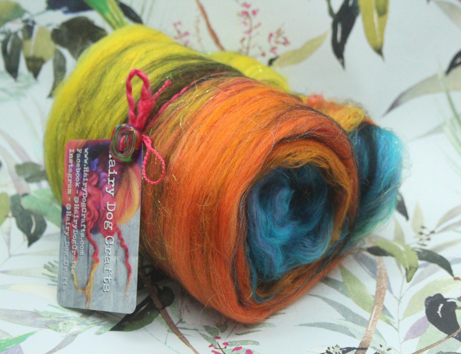 This is a batt that I have created by drum carding wool and speciality fibres. This would be perfect for so many projects - leave it whole and wet felt to create a beautiful background for embellishing, split and hand spin into a beautiful yarn, pull sections off and lay them down for wet felting into something fantastic like a bag, needle felt a fun 3D creature, weave into a wall hanging....