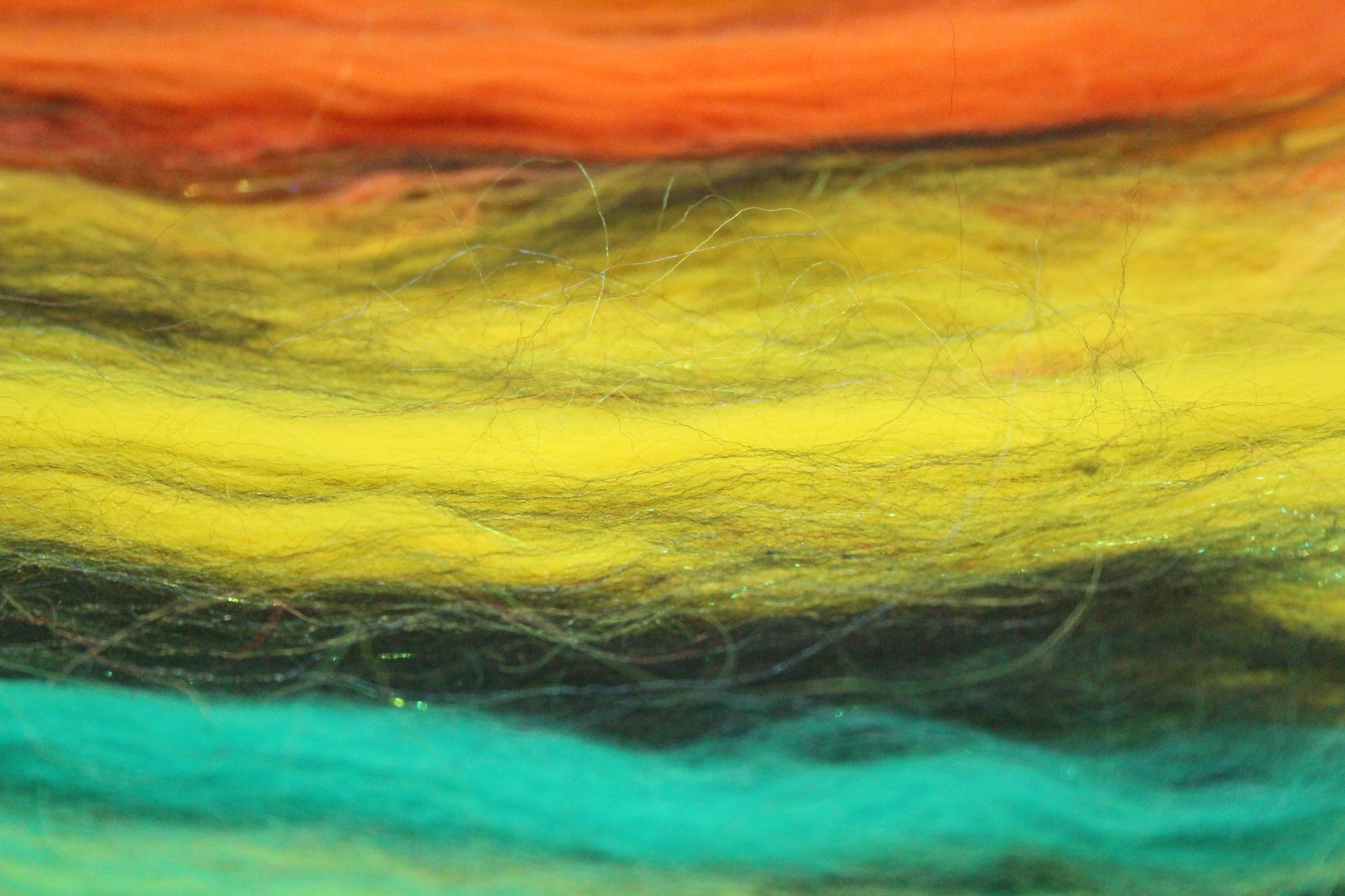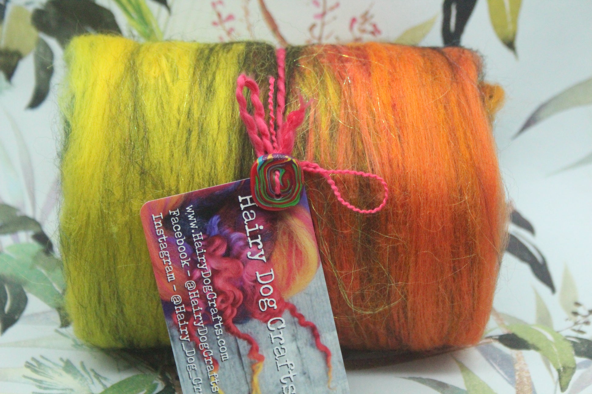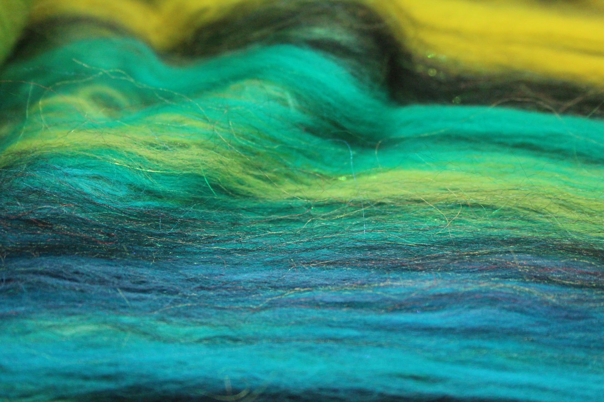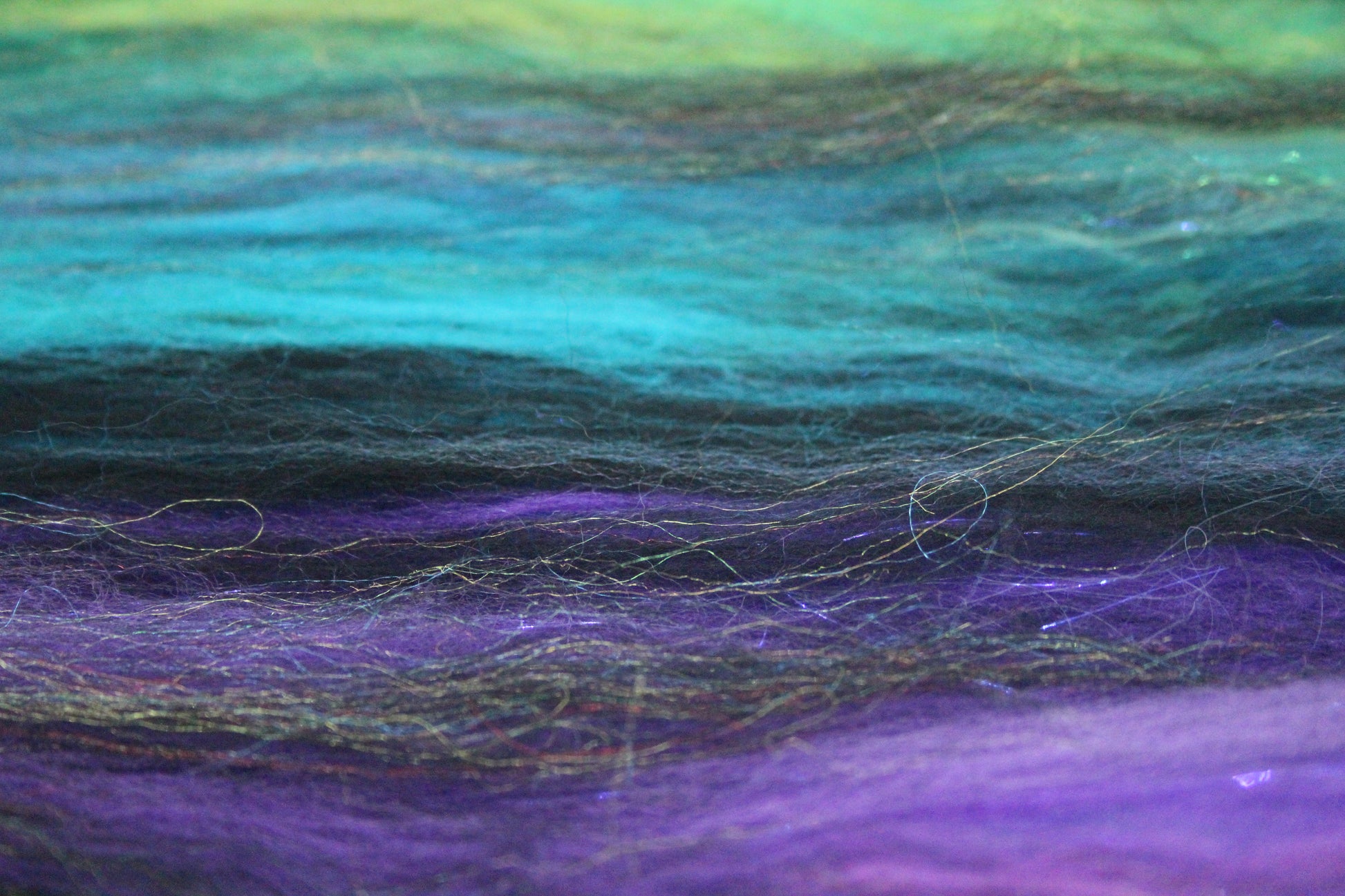 This is a batt that I have created by drum carding wool and speciality fibres. This would be perfect for so many projects - leave it whole and wet felt to create a beautiful background for embellishing, split and hand spin into a beautiful yarn, pull sections off and lay them down for wet felting into something fantastic like a bag, needle felt a fun 3D creature, weave into a wall hanging....