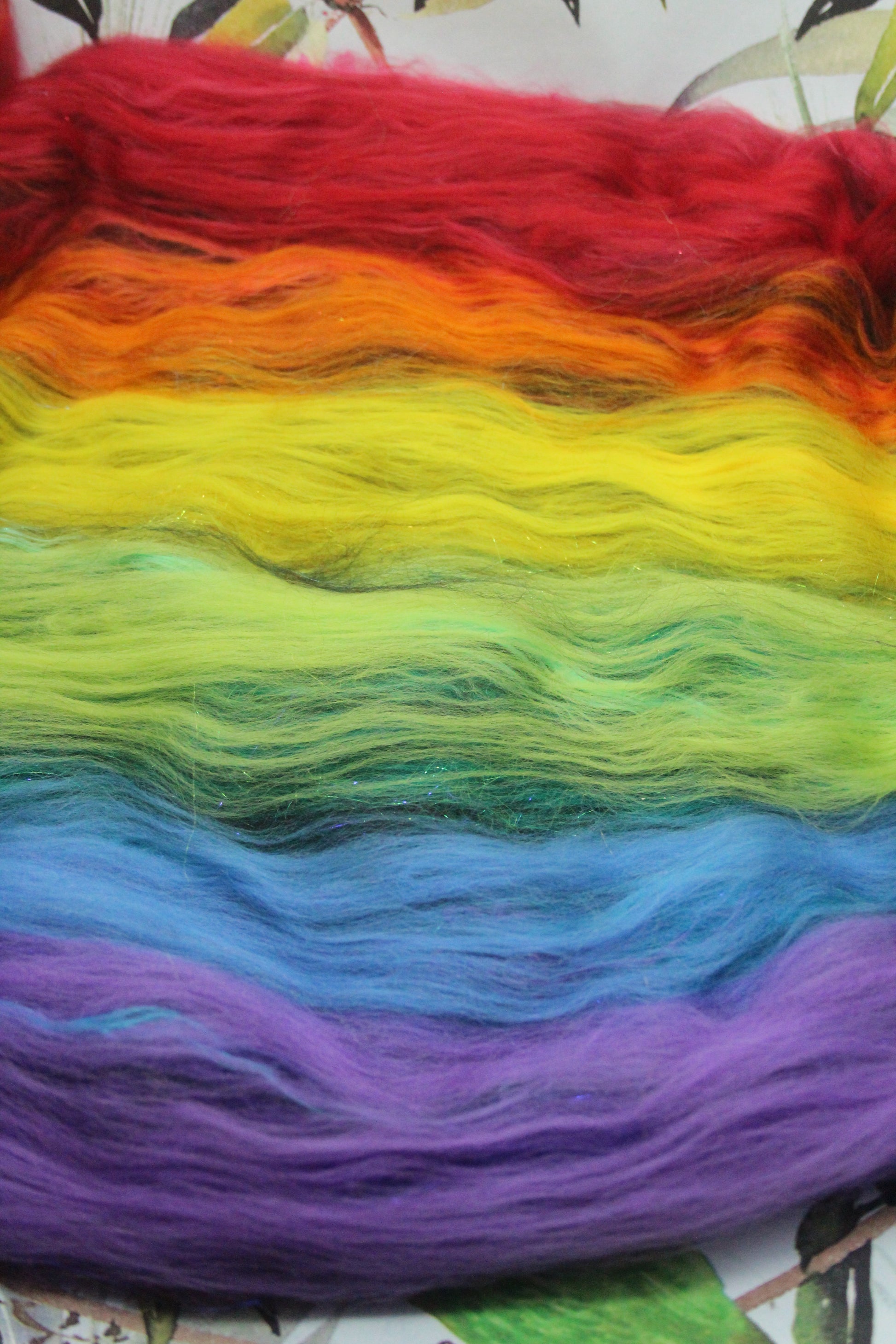 Merino Art Batt - Rainbow Black - Sideways Colour Change - 96 grams 3.3 oz - Wool for felting, spinning and weaving
