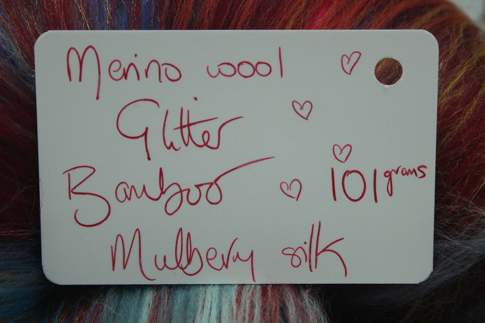 This is a batt that I have created by drum carding wool and speciality fibres. This would be perfect for so many projects - leave it whole and wet felt to create a beautiful background for embellishing, split and hand spin into a beautiful yarn, pull sections off and lay them down for wet felting into something fantastic like a bag, needle felt a fun 3D creature, weave into a wall hanging....