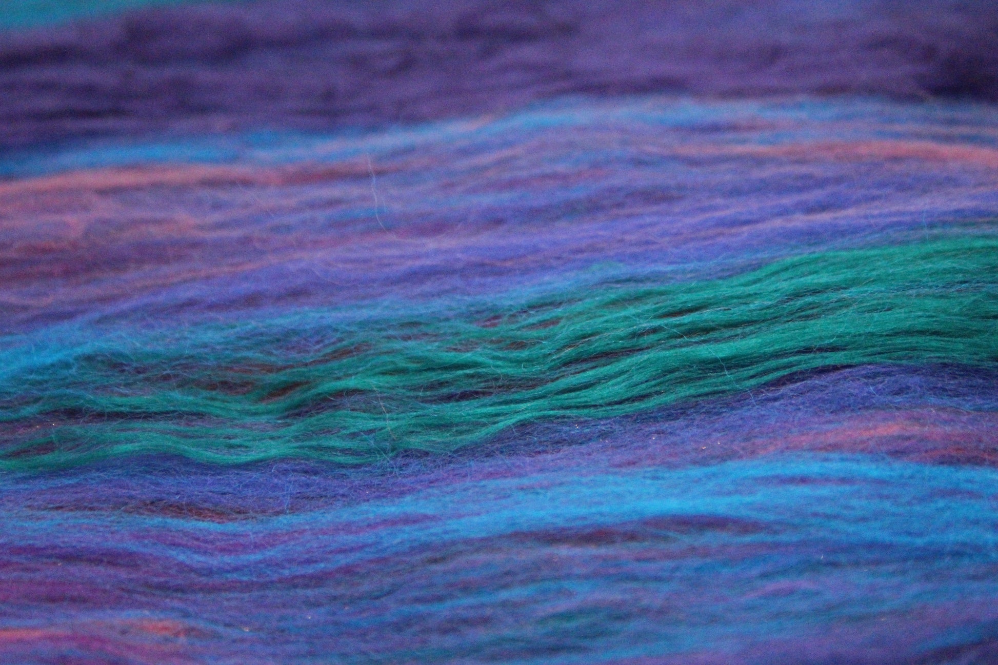 Merino Art Batt - Ultraviolet Brown Blue Pink - 59 grams 2 oz - Wool for felting, spinning and weaving