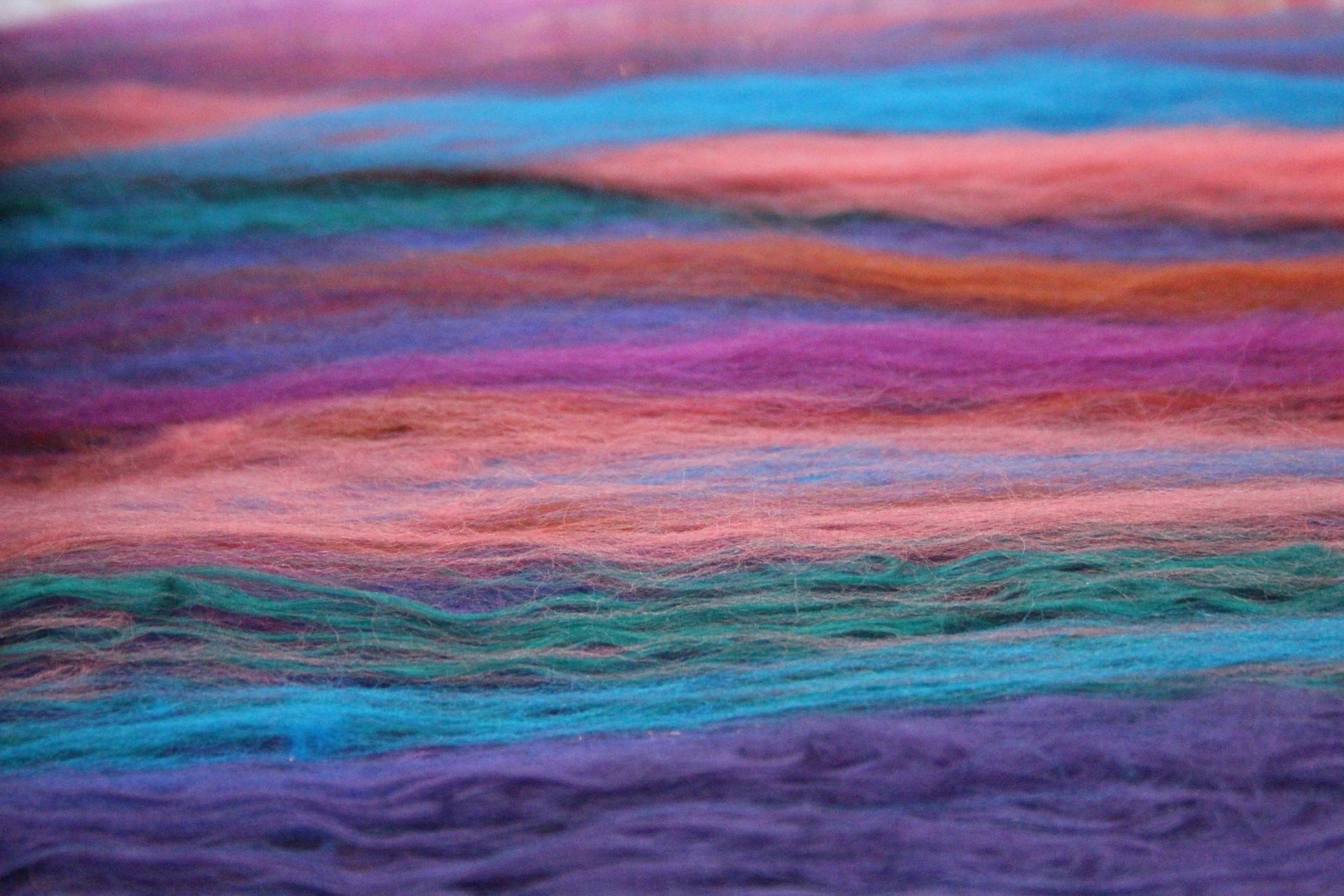 This is a batt that I have created by drum carding wool and speciality fibres. This would be perfect for so many projects - leave it whole and wet felt to create a beautiful background for embellishing, split and hand spin into a beautiful yarn, pull sections off and lay them down for wet felting into something fantastic like a bag, needle felt a fun 3D creature, weave into a wall hanging....