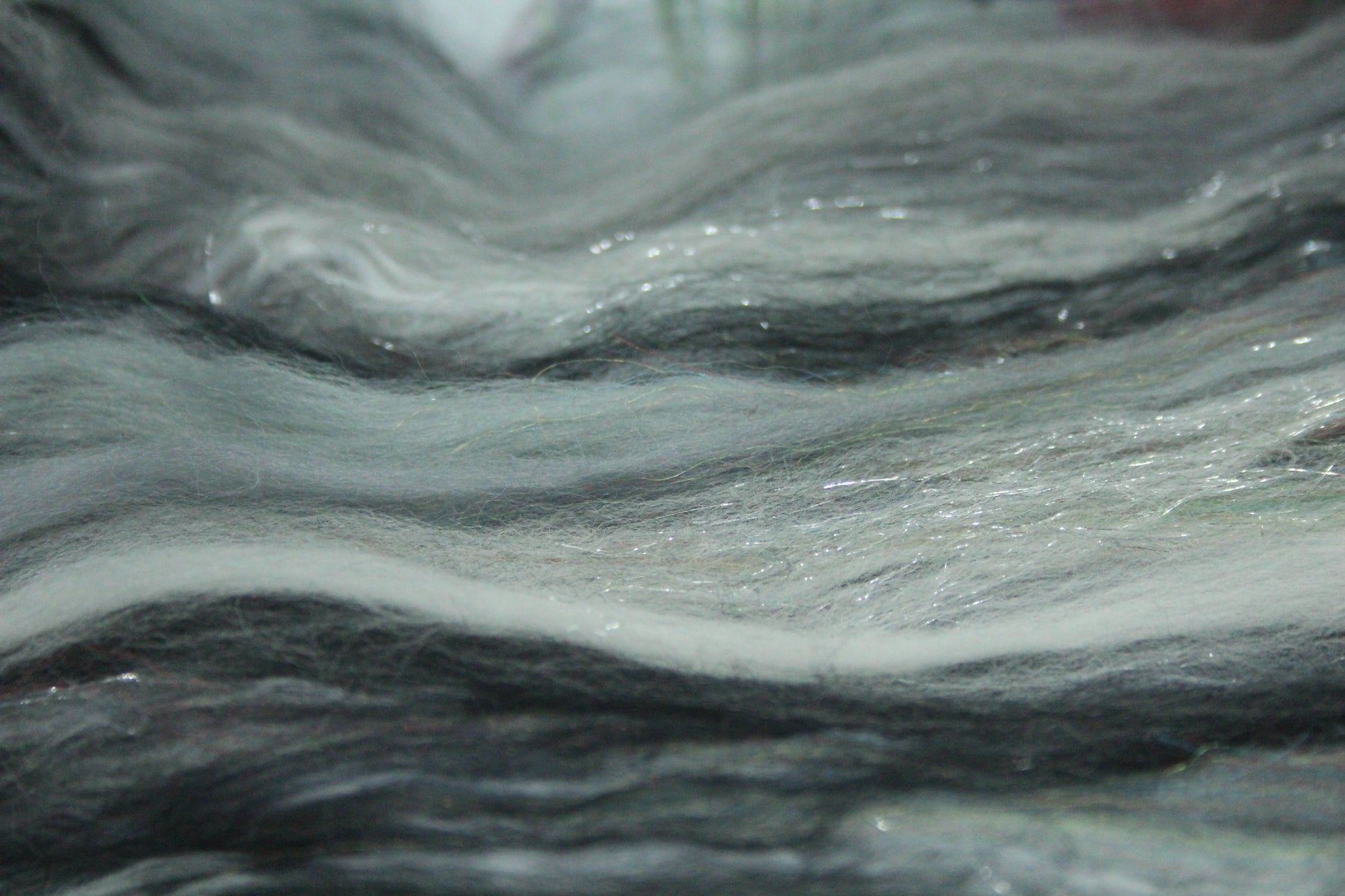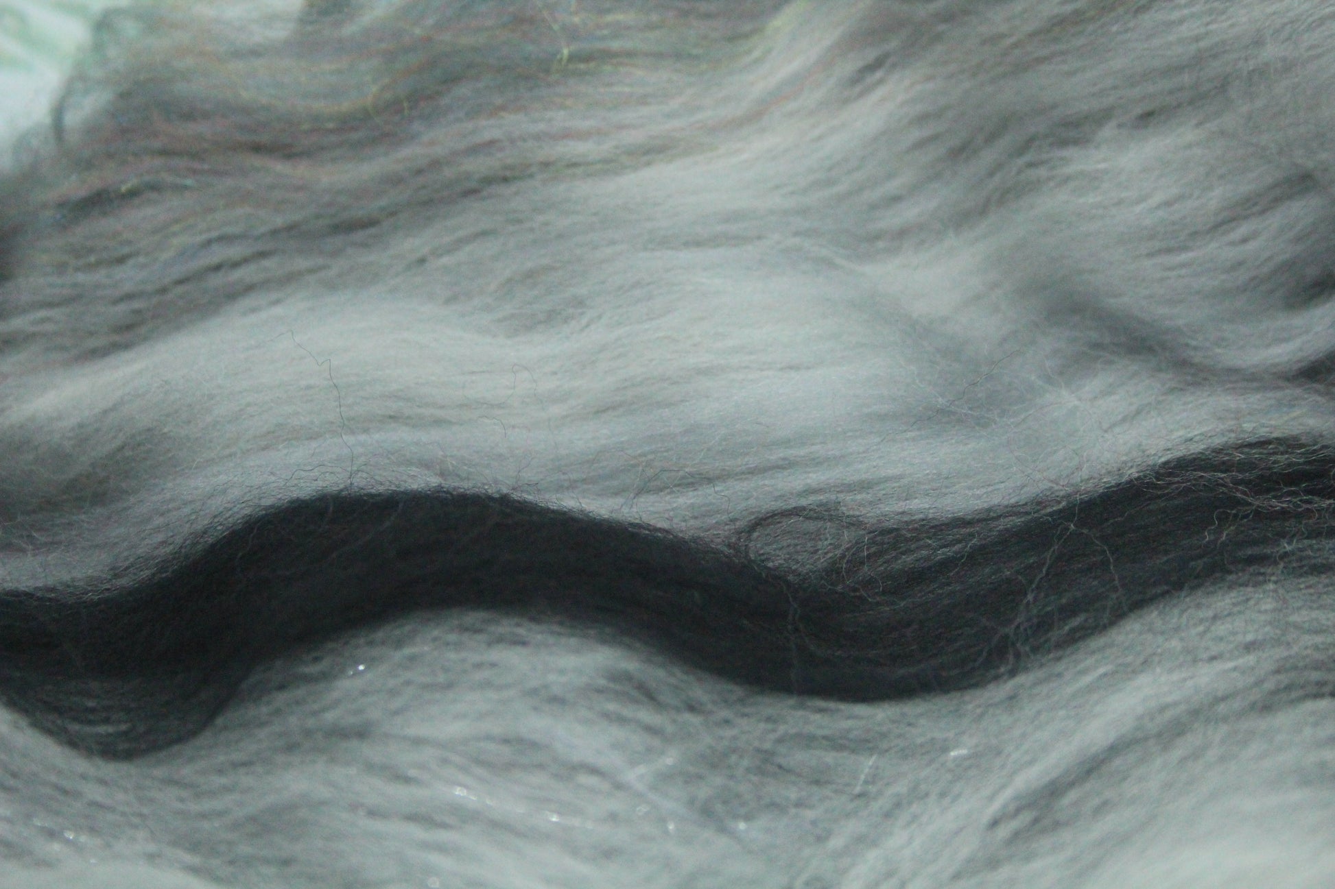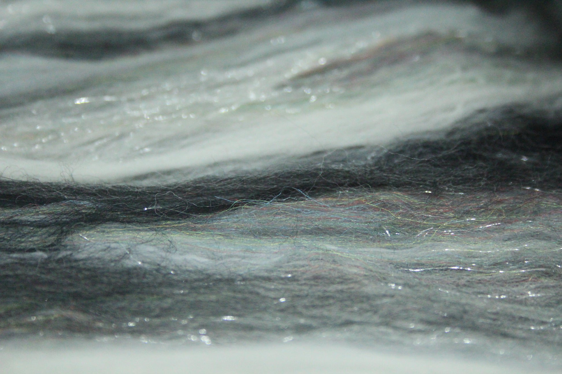 Merino Art Batt - White Grey Black - 110 grams 3.8 oz - Wool for felting, spinning and weaving
