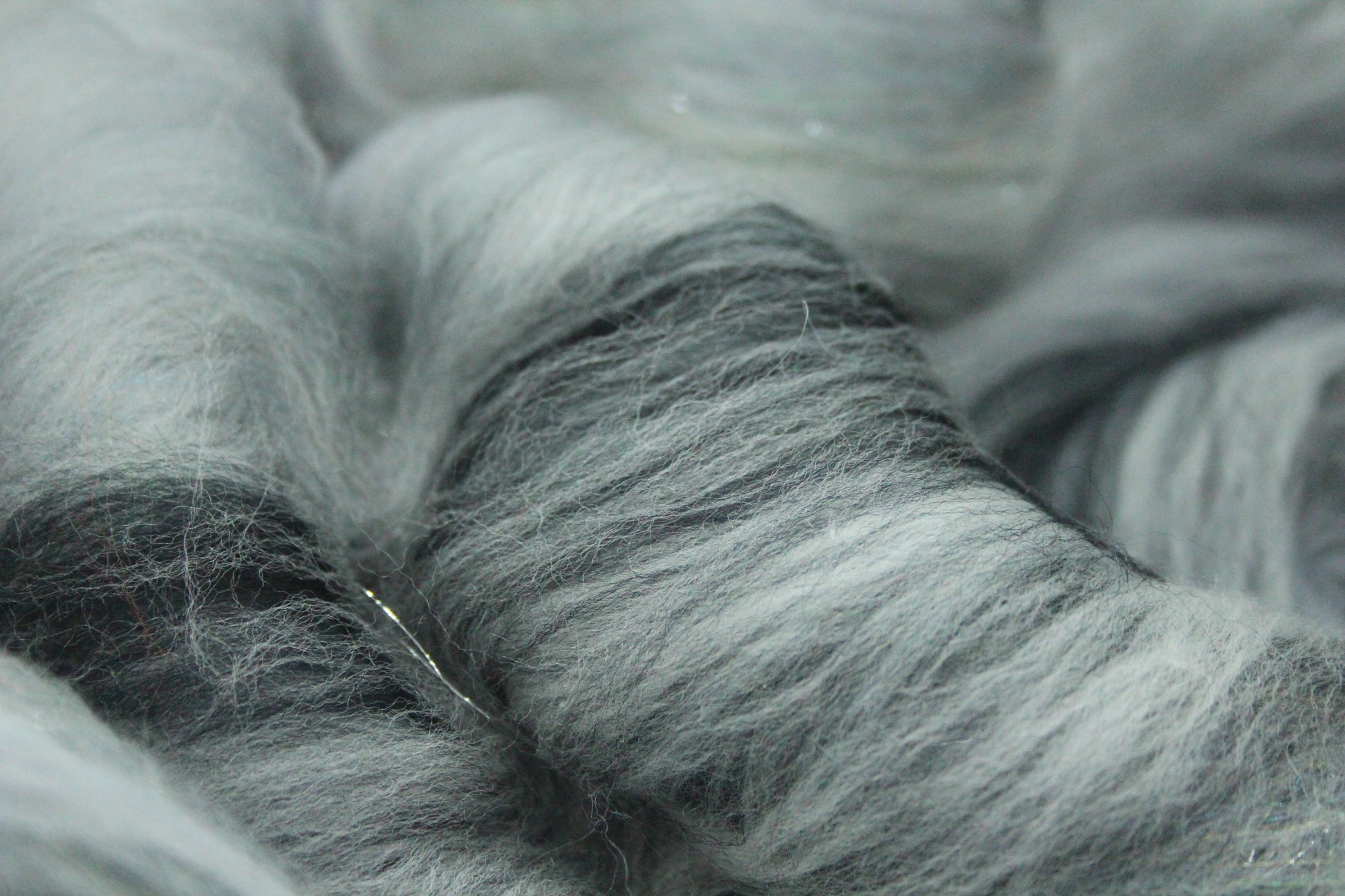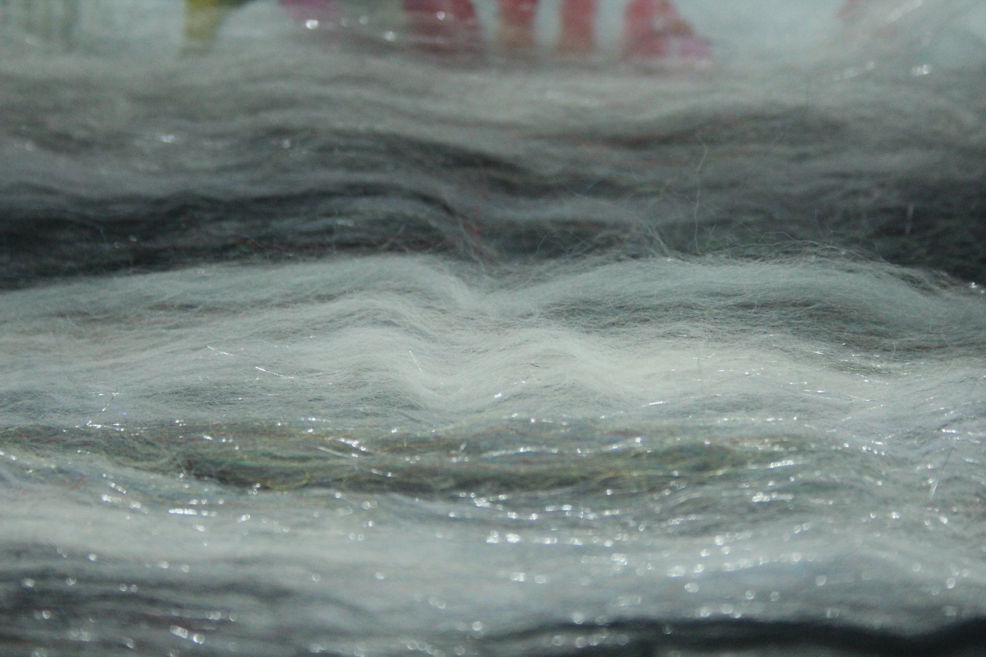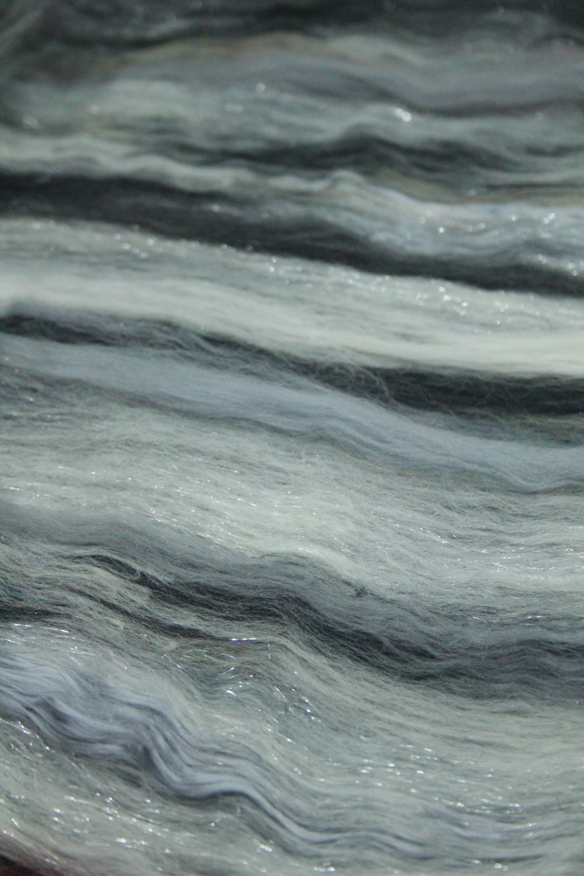 Merino Art Batt - White Grey Black - 110 grams 3.8 oz - Wool for felting, spinning and weaving