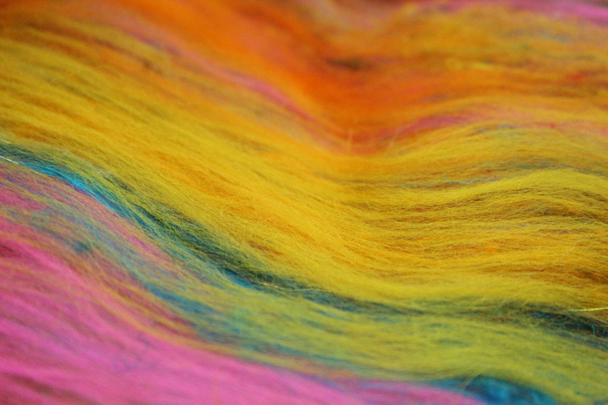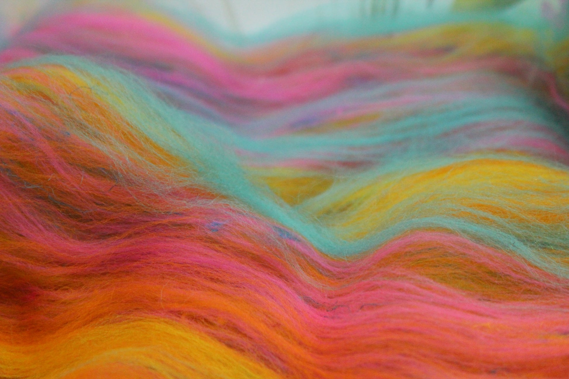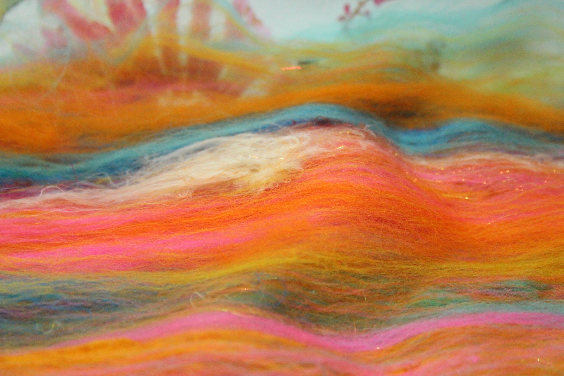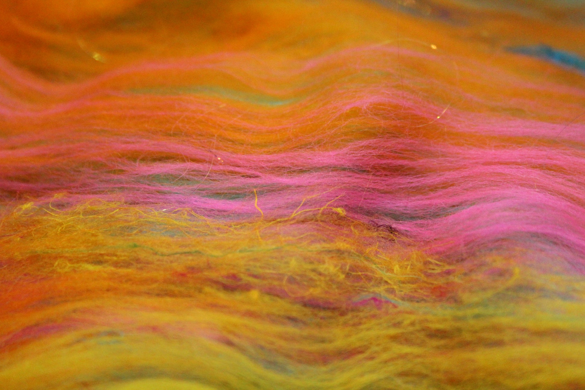 Merino Art Batt - Yellow Pink Orange Blue - 52 grams 1.8 oz - Wool for felting, spinning and weaving