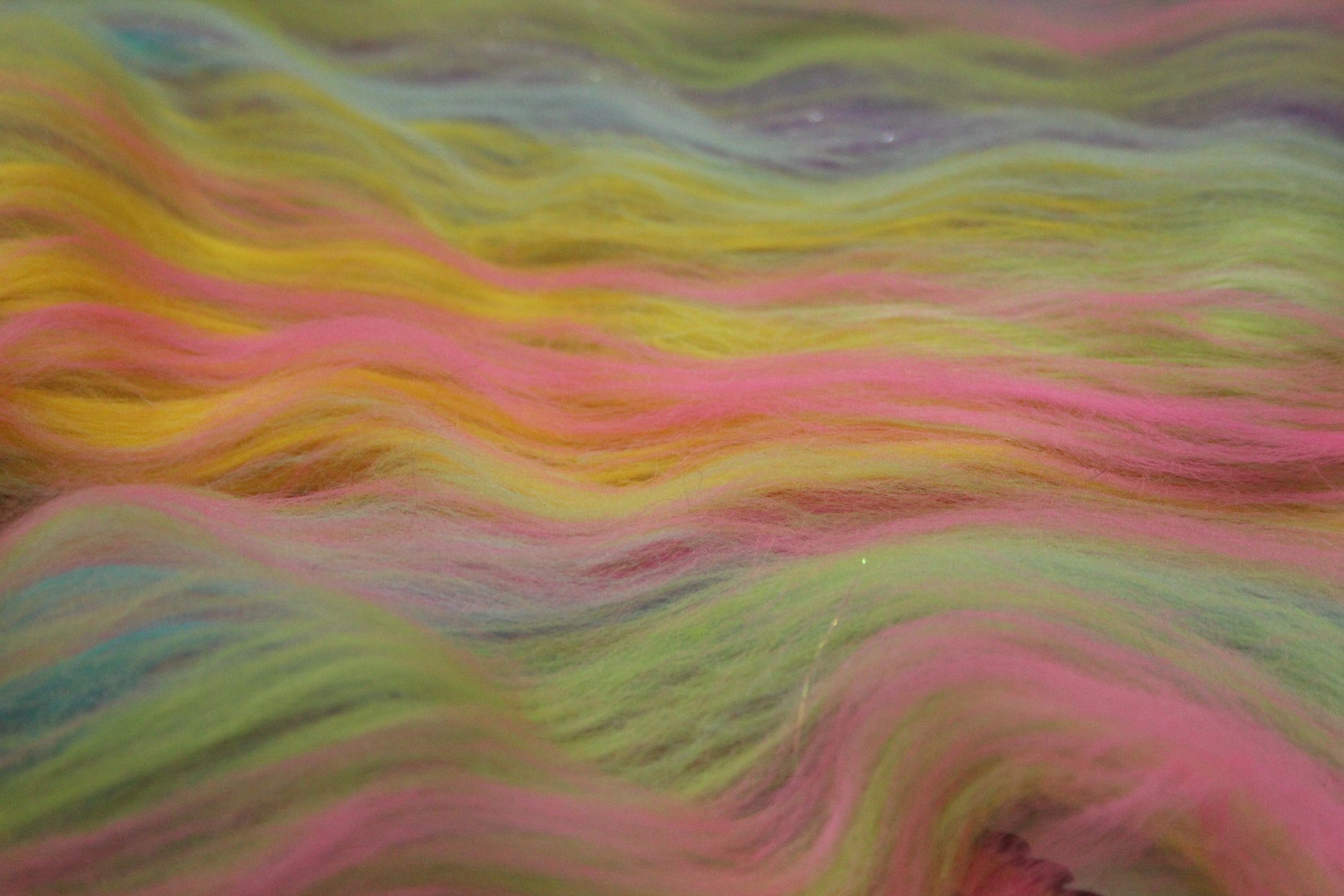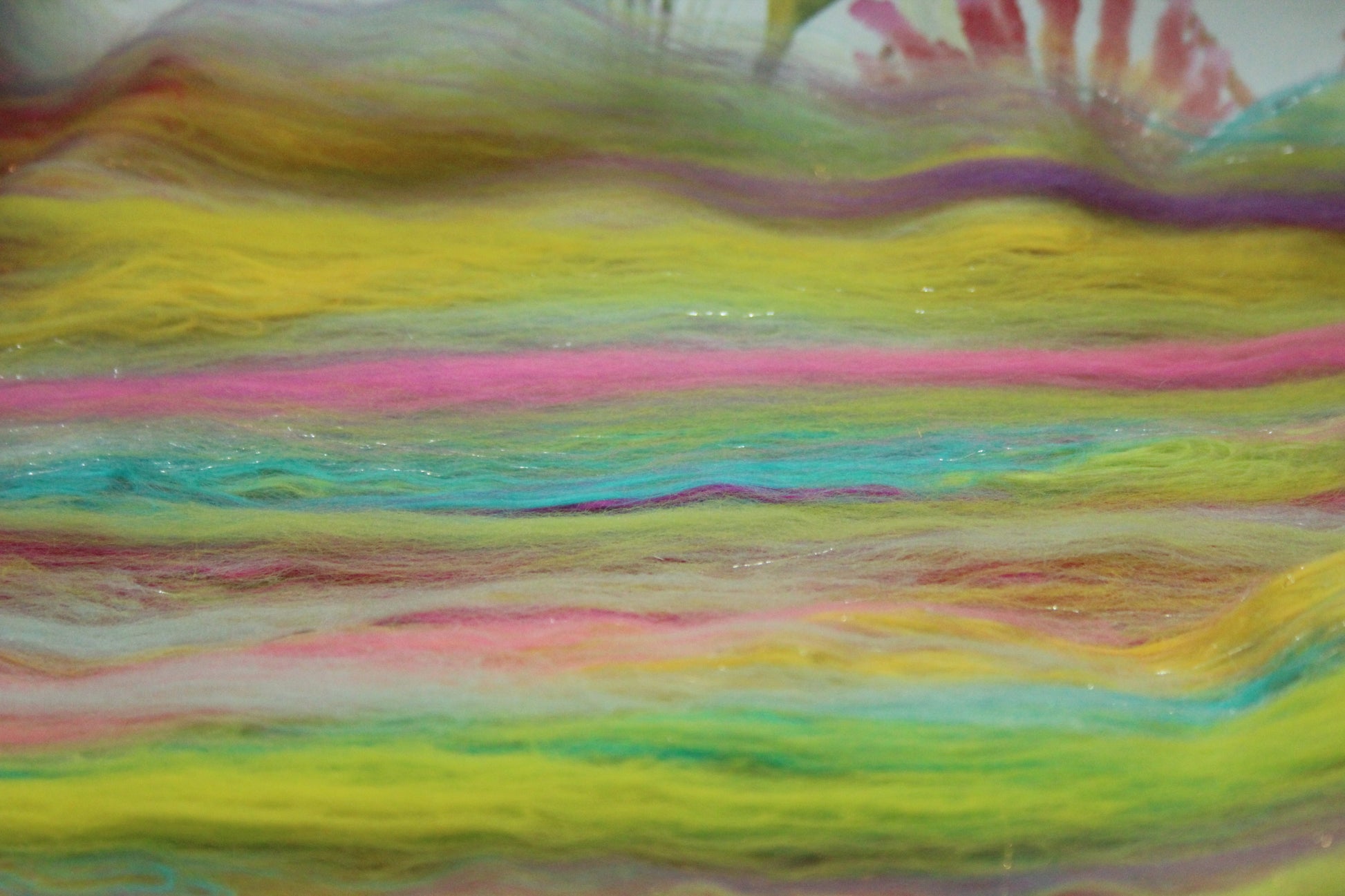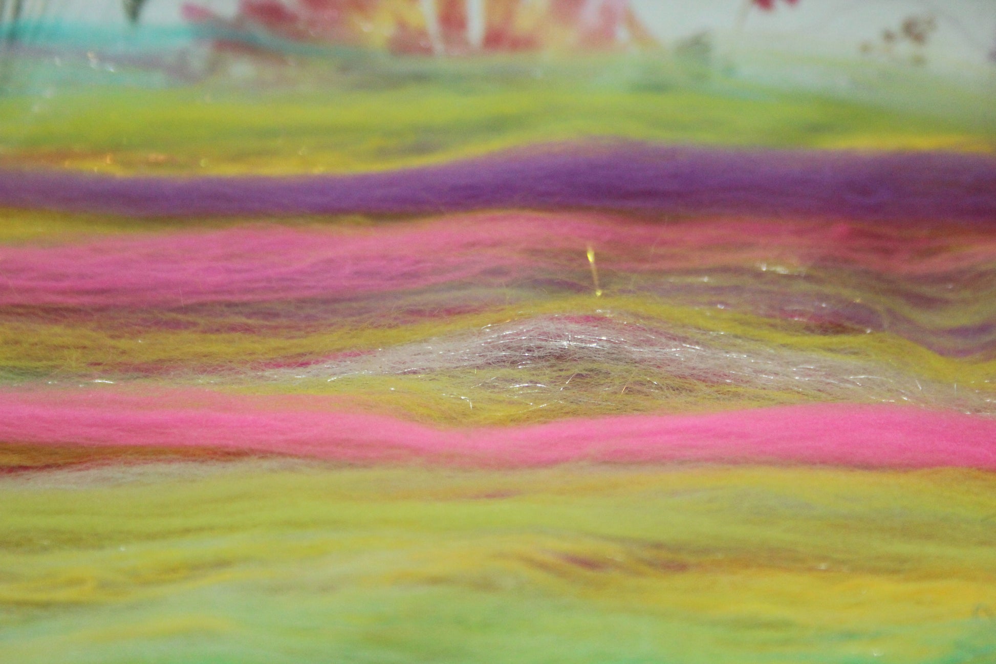 Merino Art Batt - Green Yellow Pink Orange Blue Purple - 56 grams 1.9 oz - Wool for felting, spinning and weaving