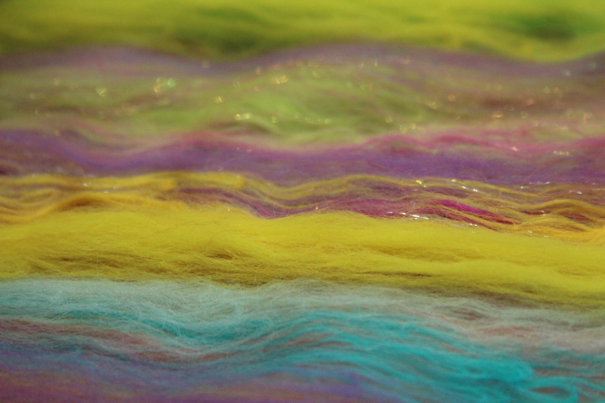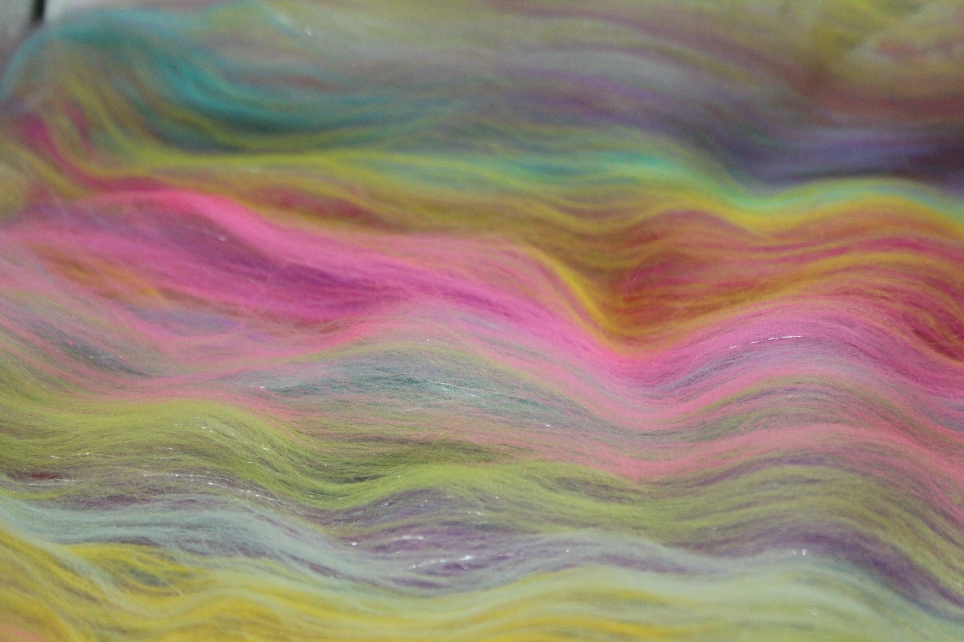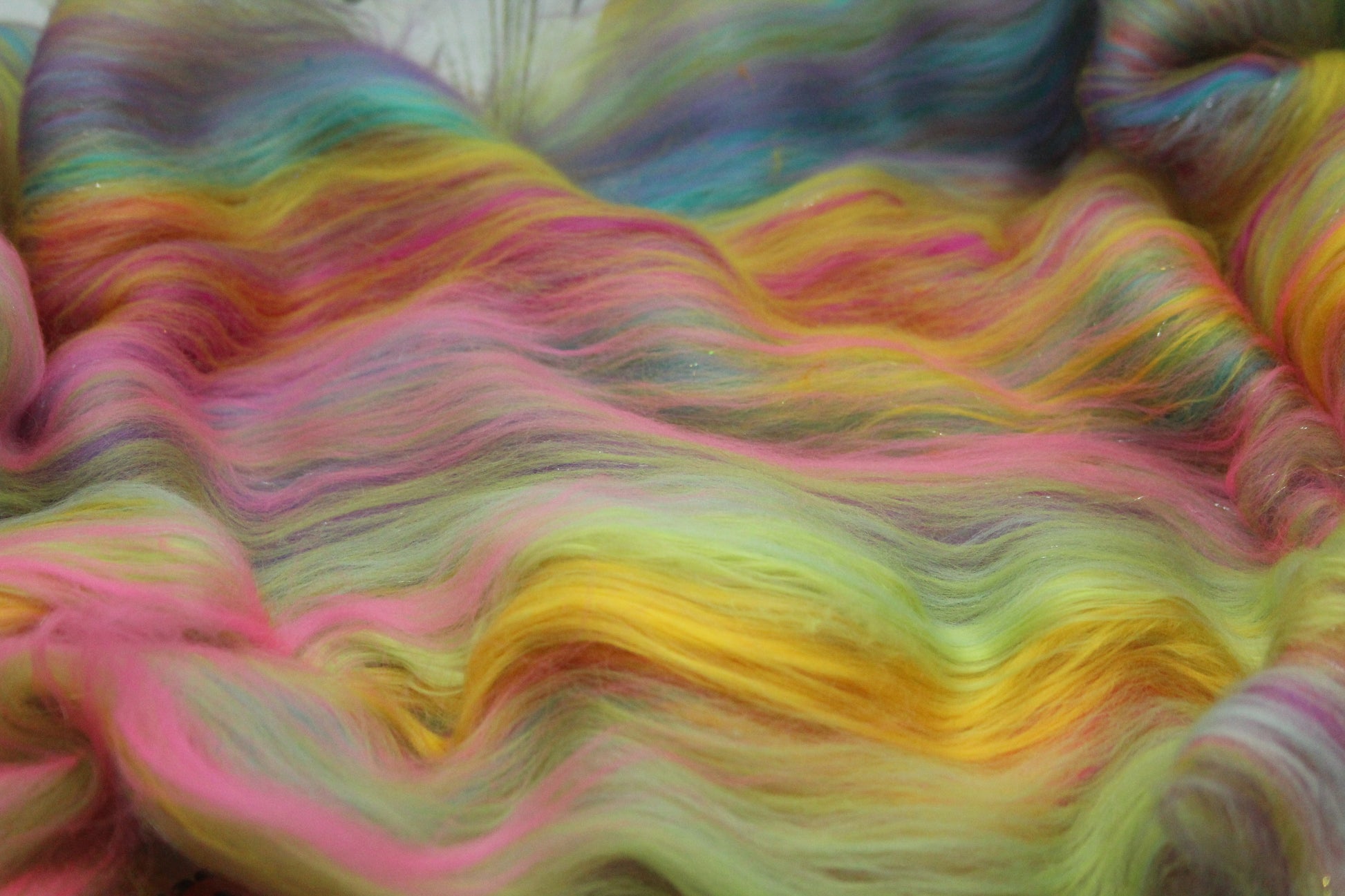 Merino Art Batt - Green Yellow Pink Orange Blue Purple - 56 grams 1.9 oz - Wool for felting, spinning and weaving