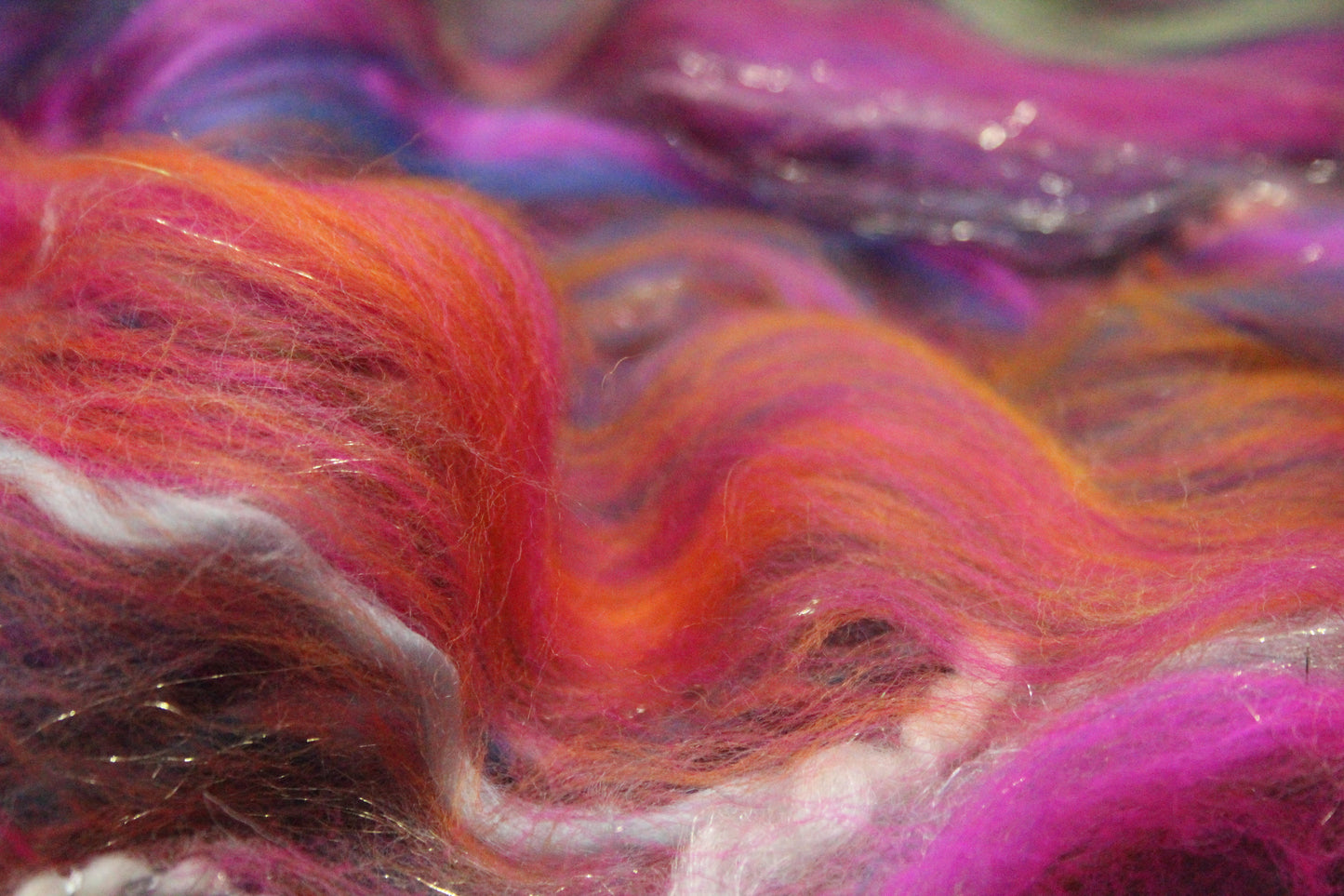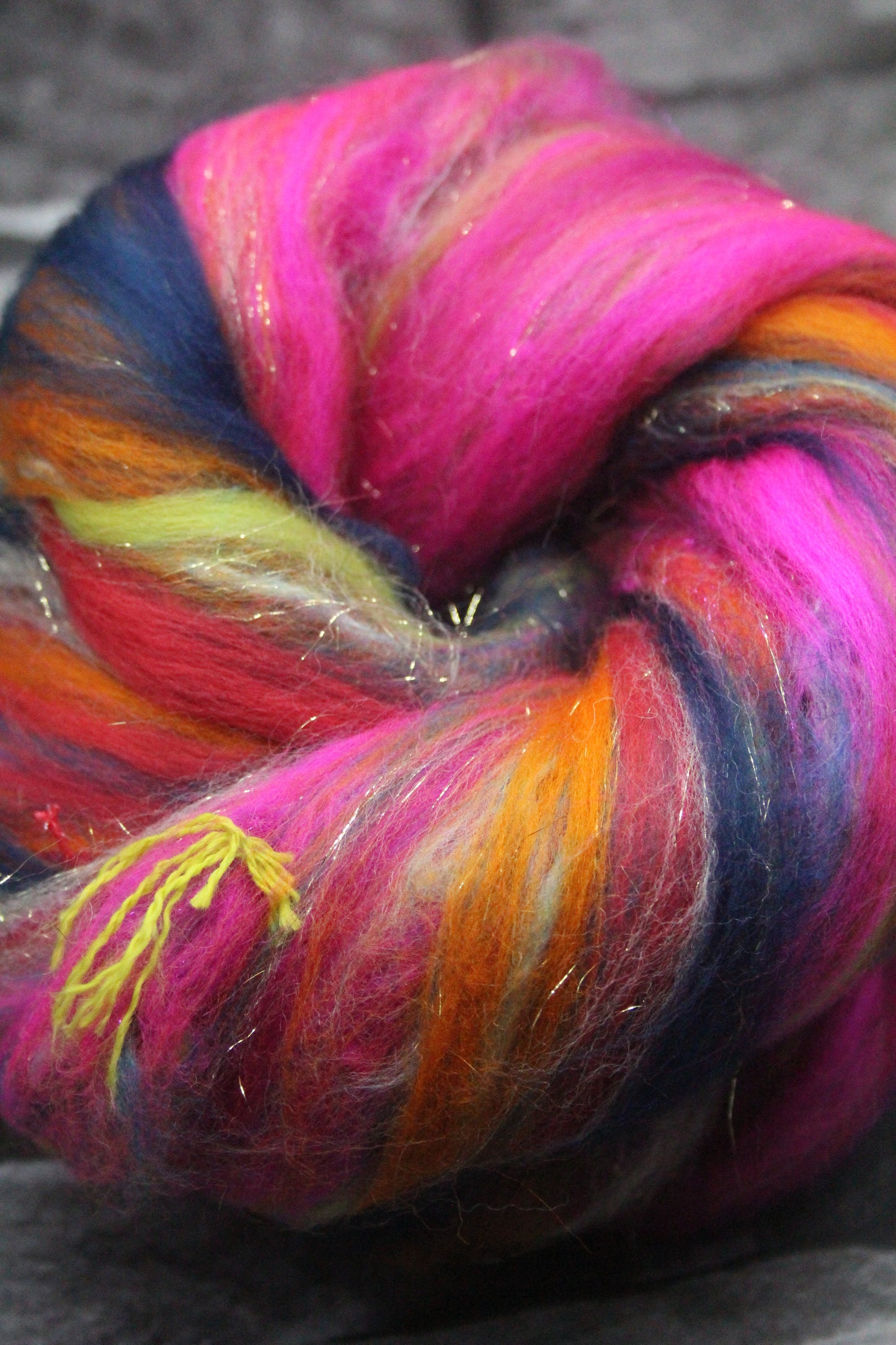 This is roving that I have created by drum carding wool and speciality fibres. This would be perfect for so many projects - needle felt it, spin it into a beautiful yarn, pull sections off and lay them down for wet felting into something fantastic like a bag, weave into a wall hanging....