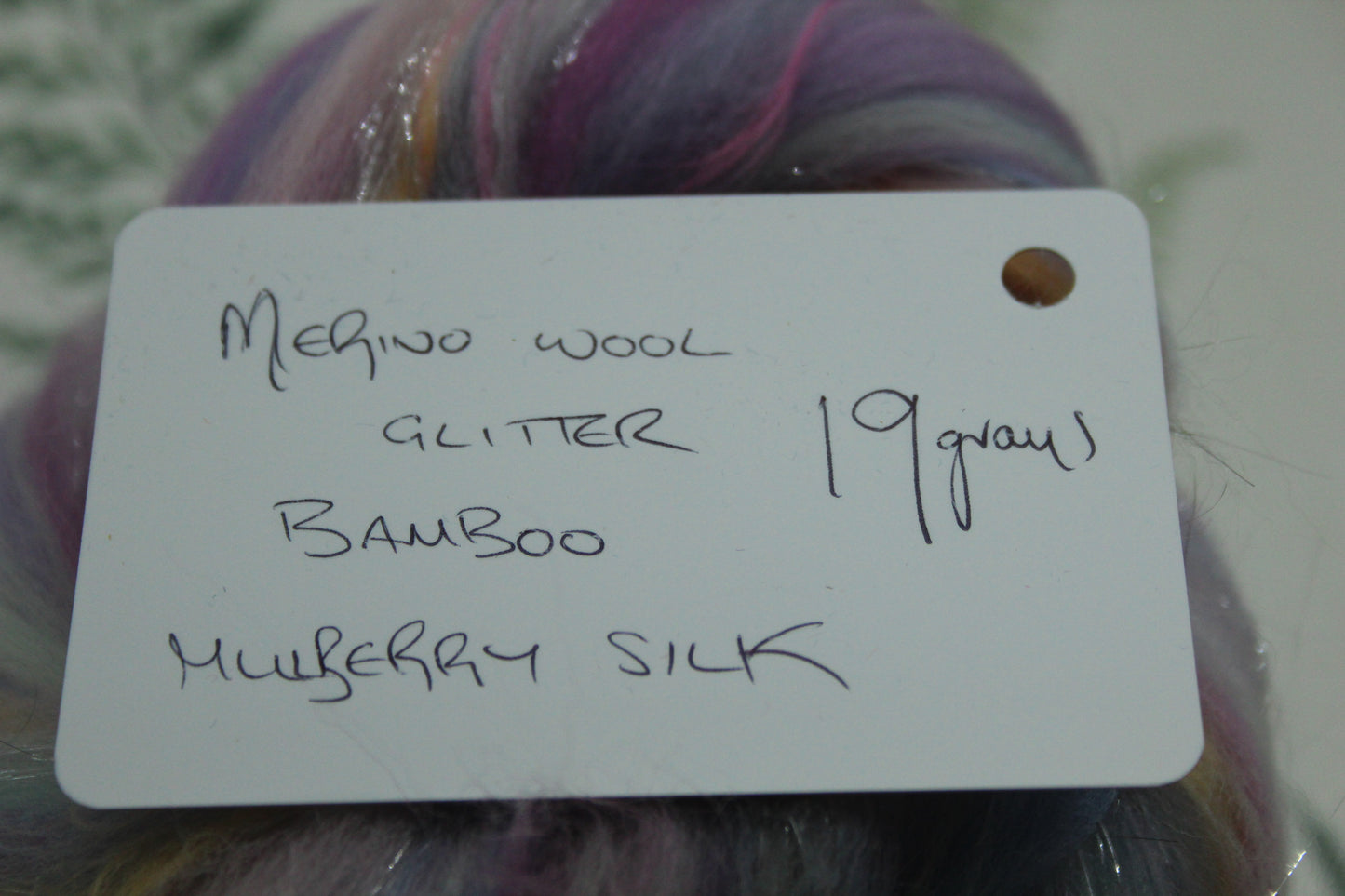This small batt contains 19 grams / 0.6 oz of fibre including: